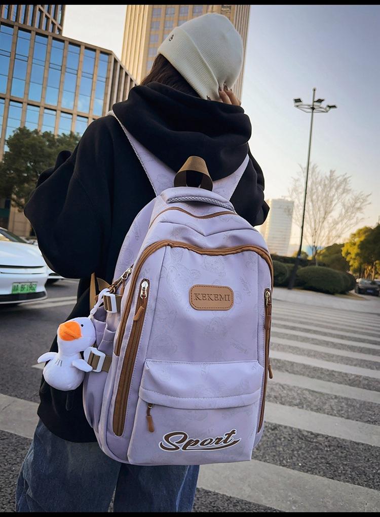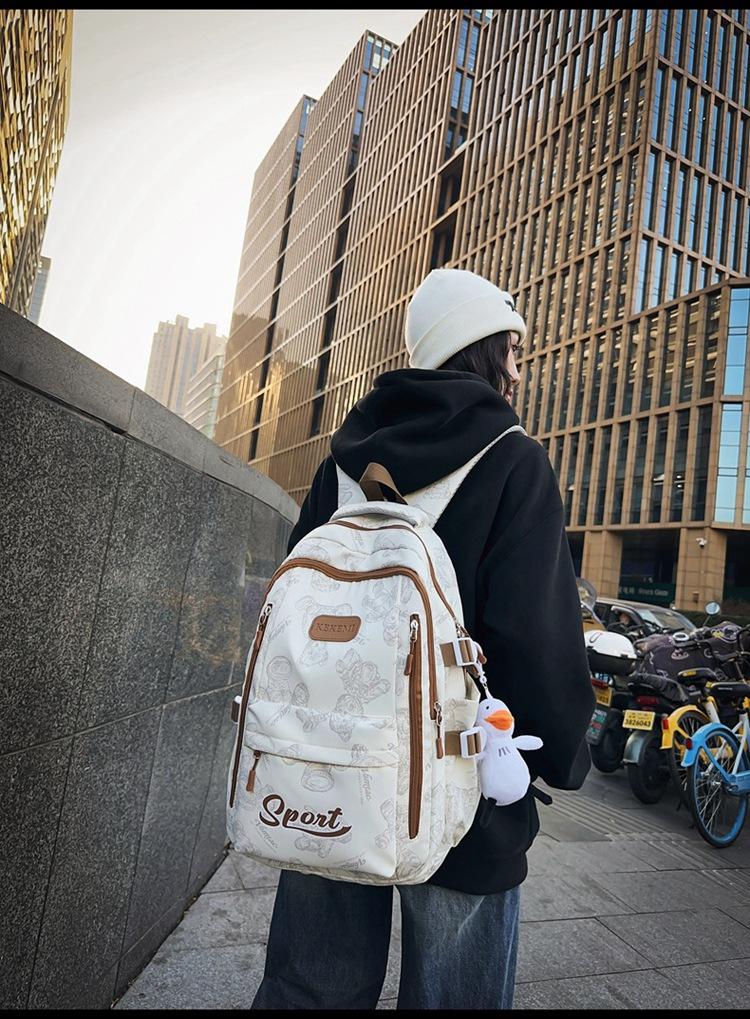 Mochila escolar femenina de gran capacidad, nueva y atractiva mochila para estudiantes de secundaria, de gran capacidad, con estampado de moda de estilo universitario.