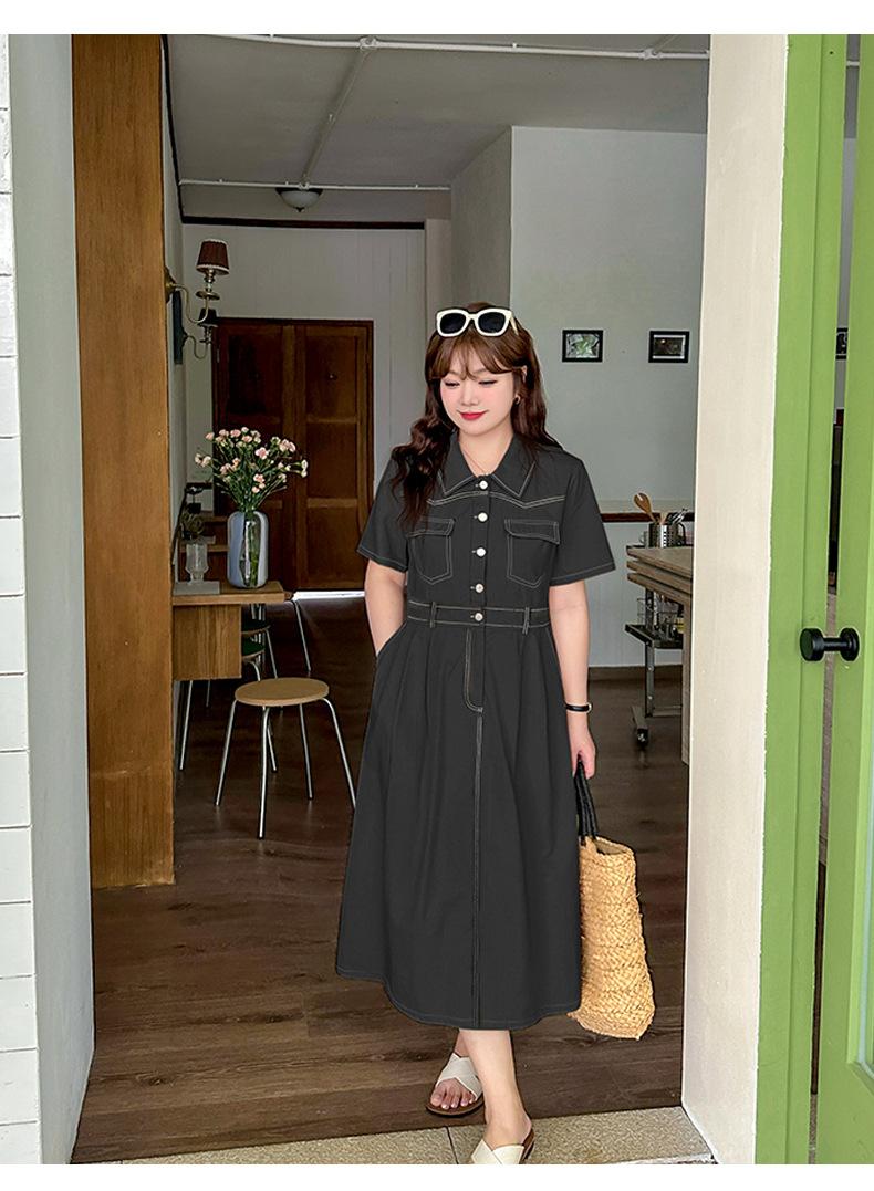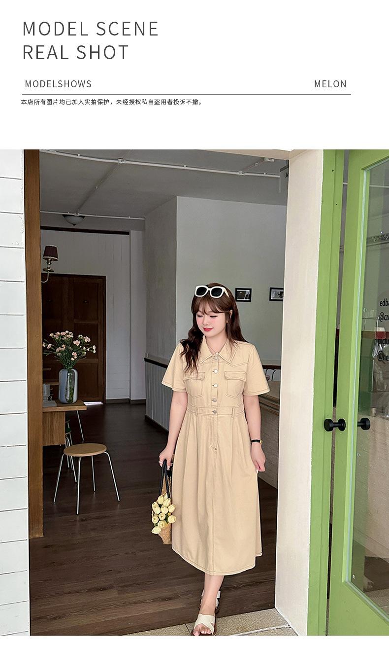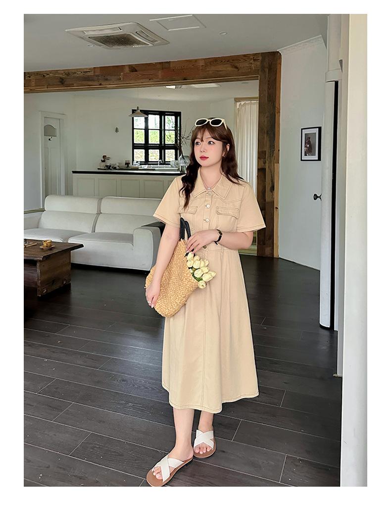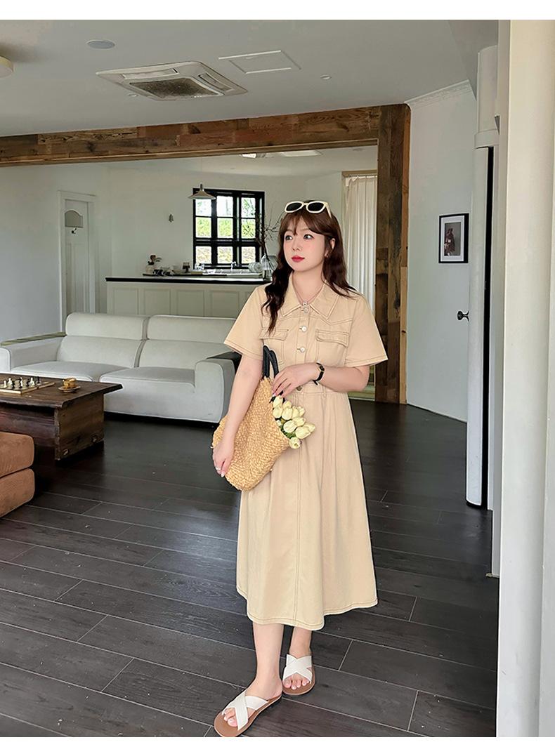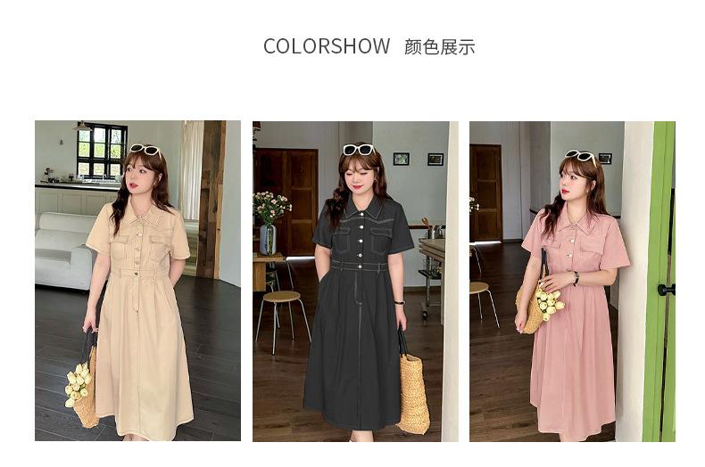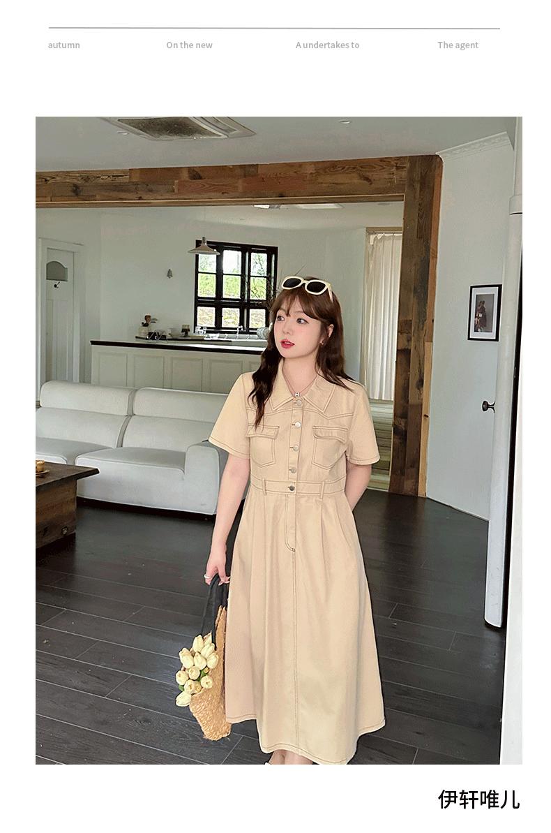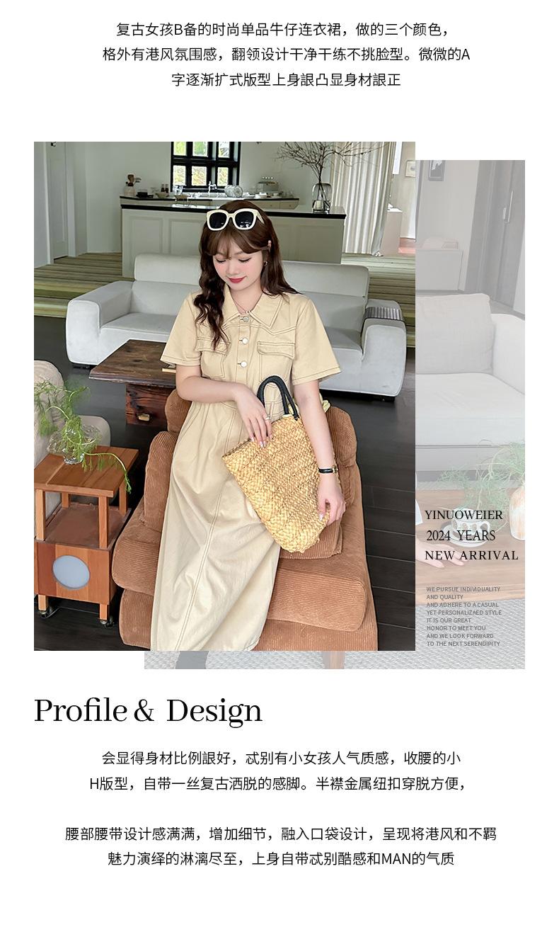 Inno Talla Grande Vestido Elegante Retro con Solapa para Mujer Verano Nuevo Falda Midi con Cintura 210289