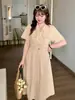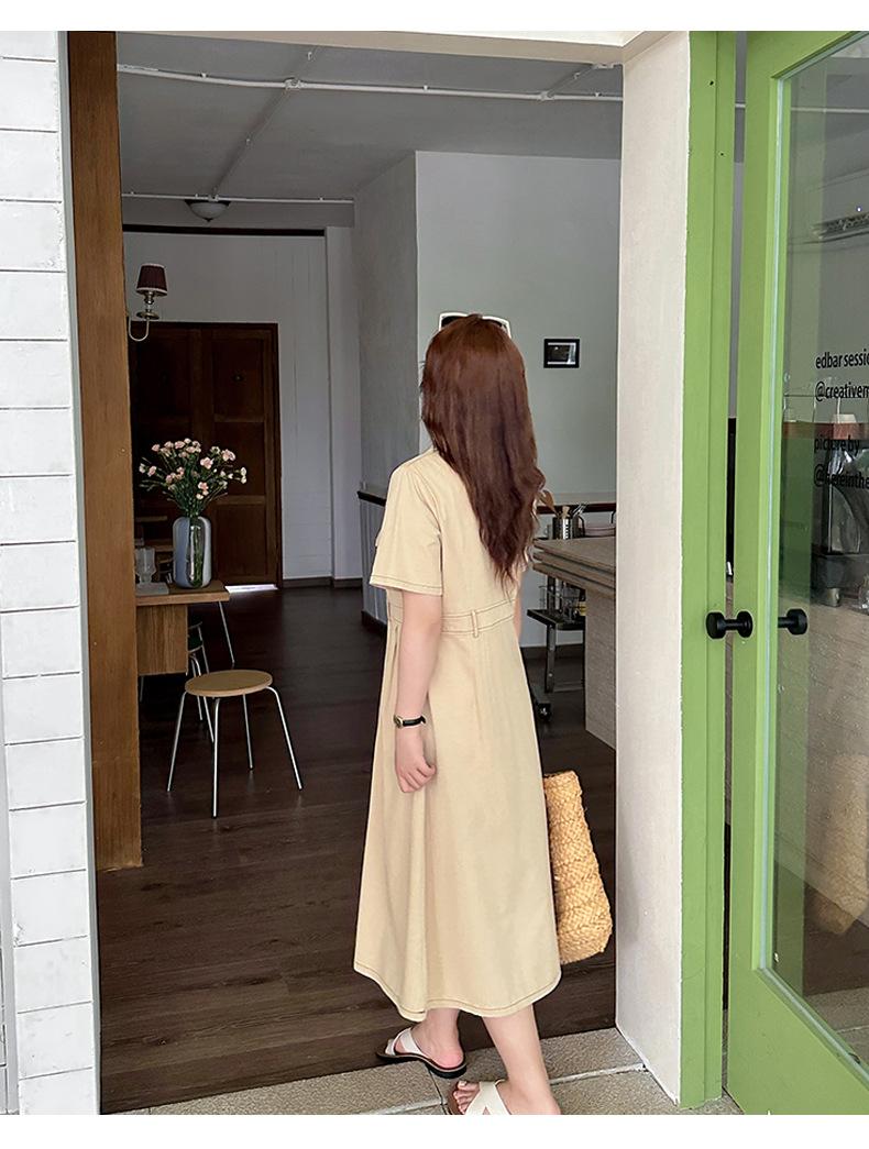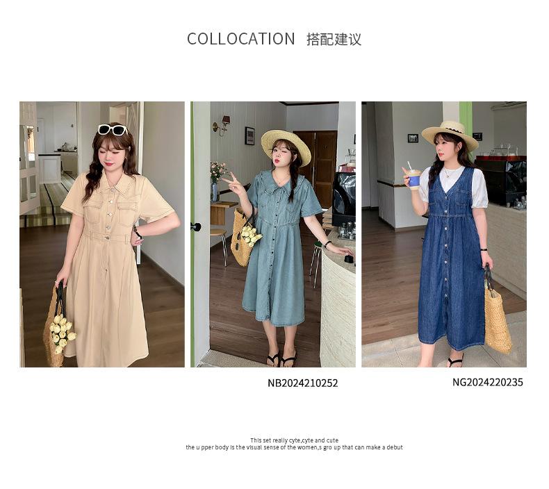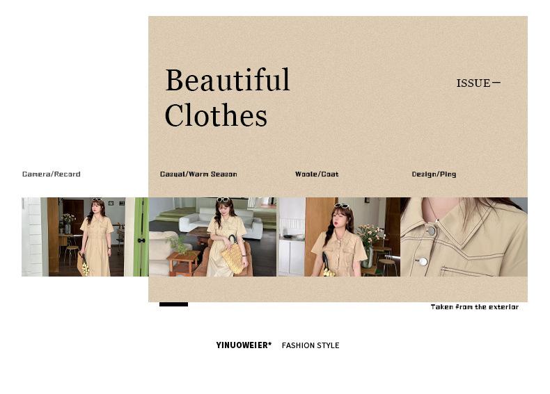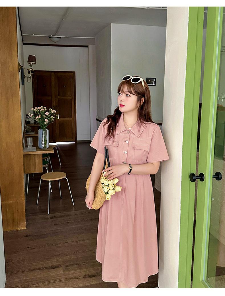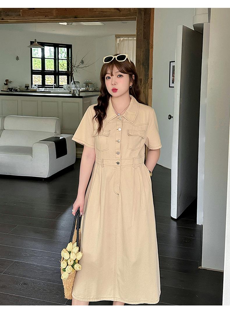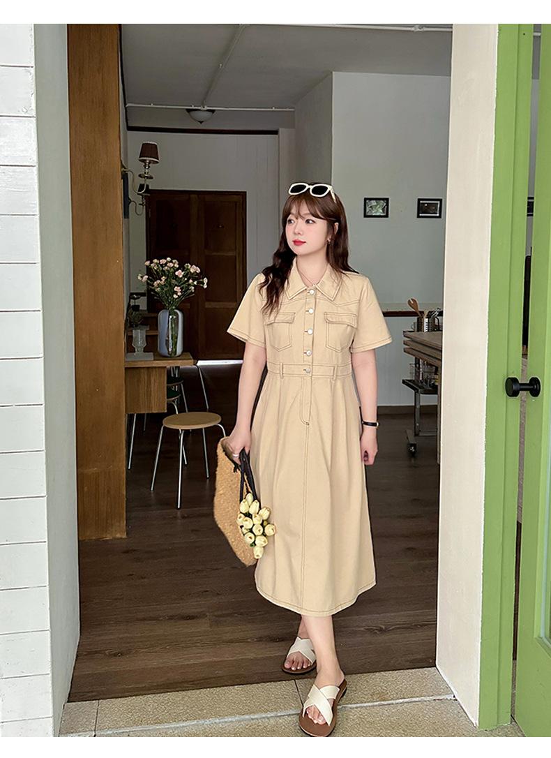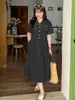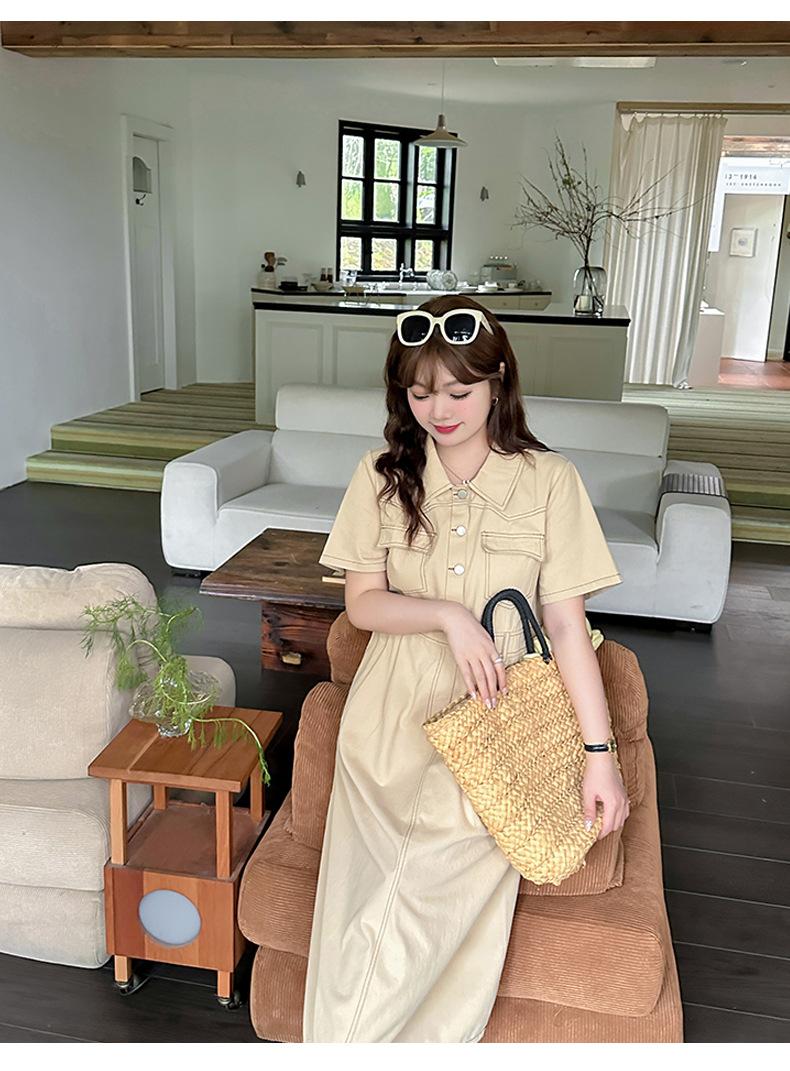 Inno Talla Grande Vestido Elegante Retro con Solapa para Mujer Verano Nuevo Falda Midi con Cintura 210289
