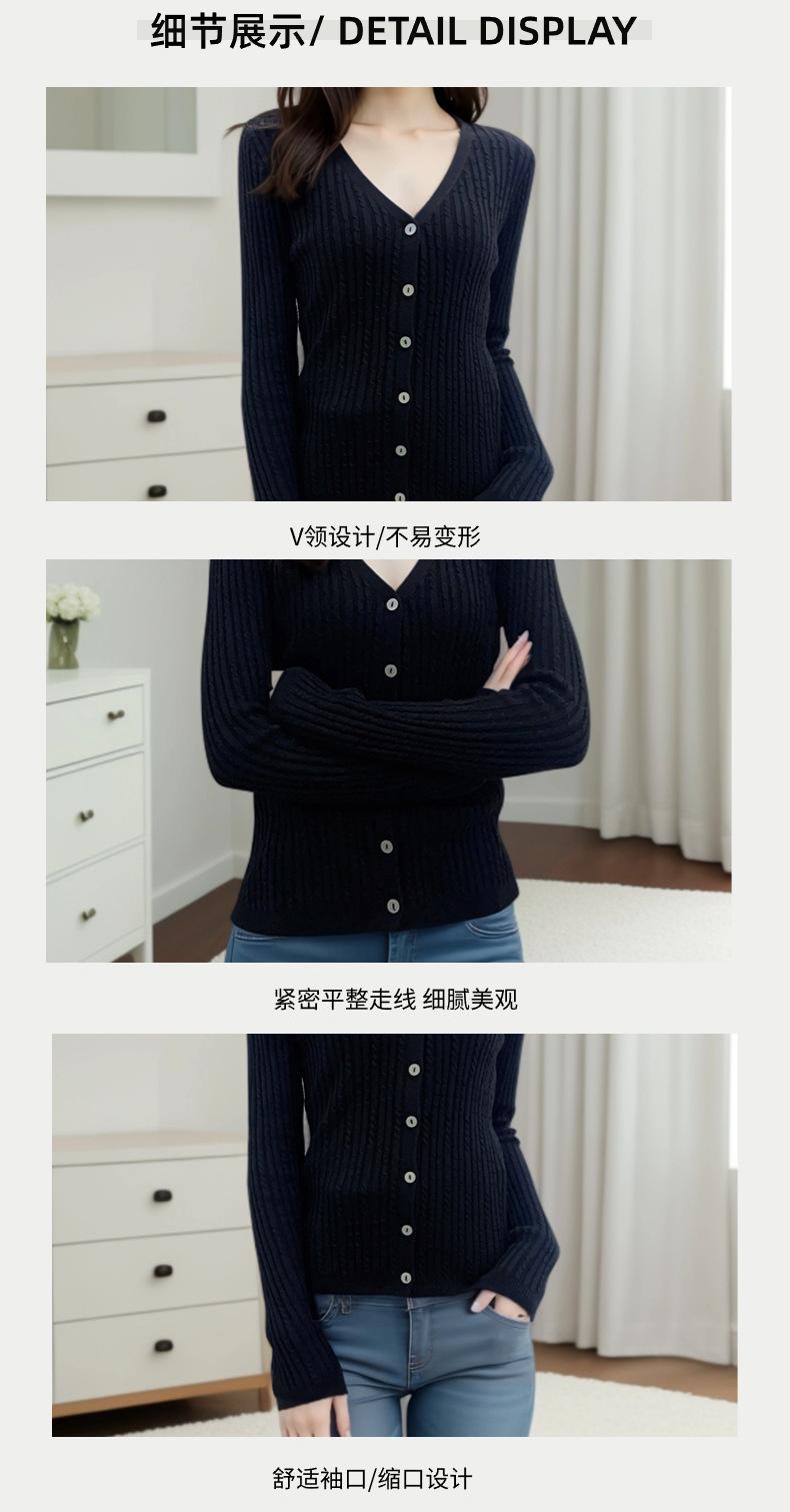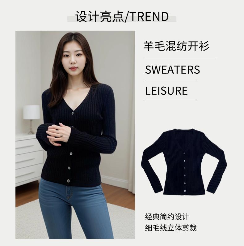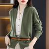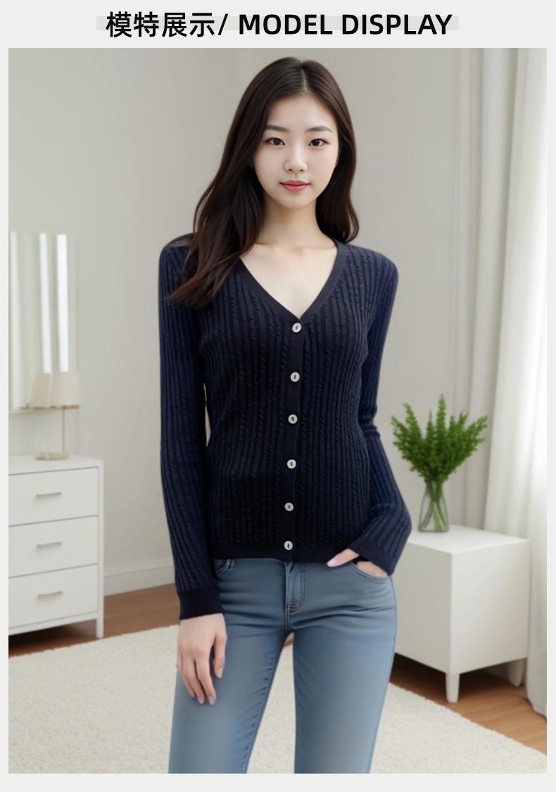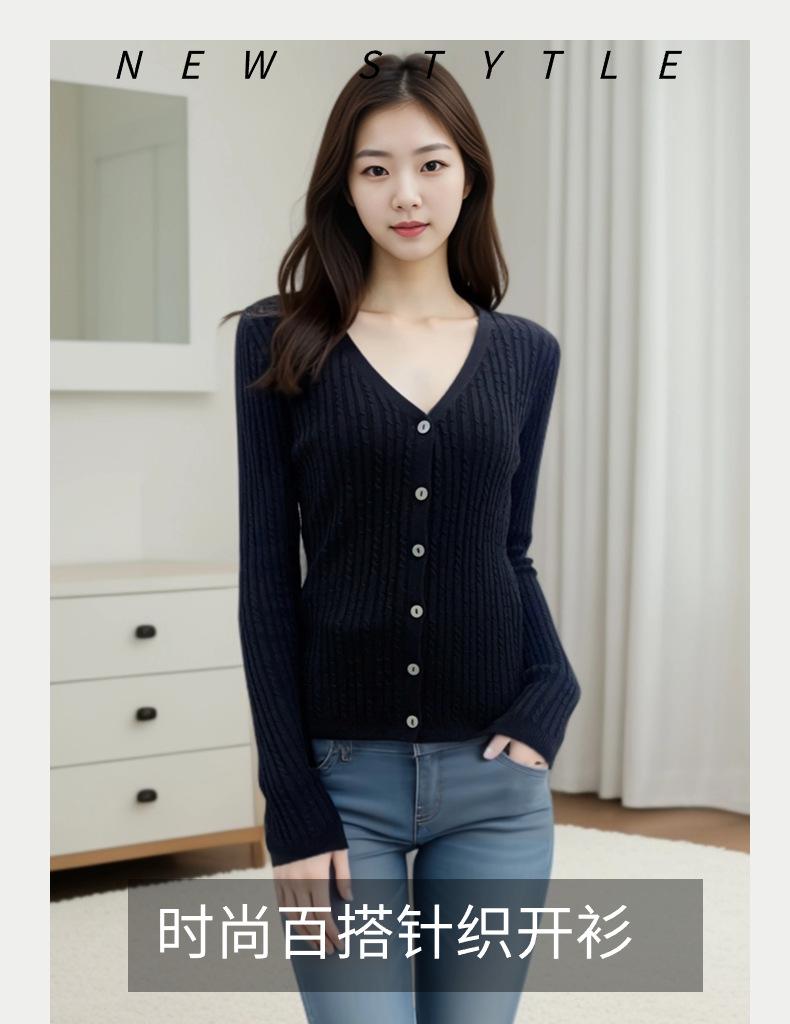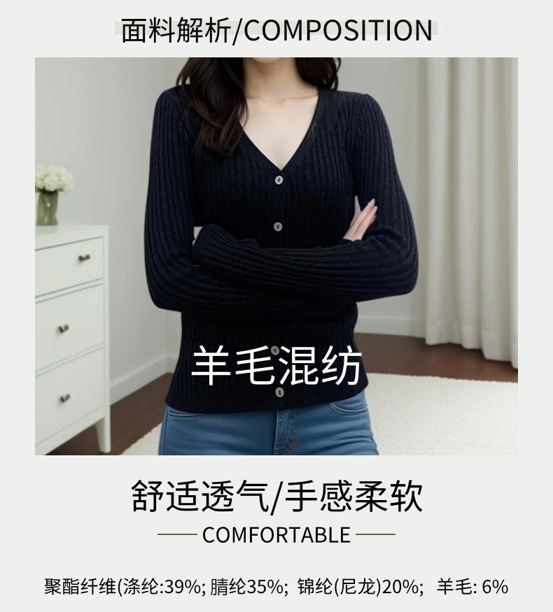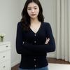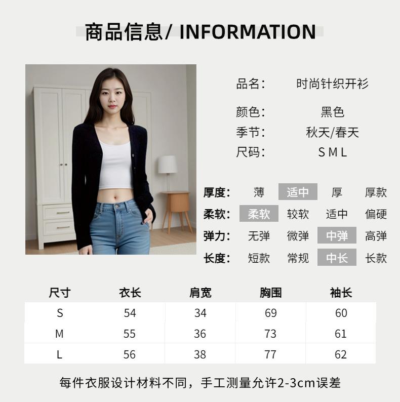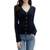 Primavera y Otoño 2025 Nuevo Suéter de Punto Negro Cárdigan Abrigo Cuello en V Top Casual de Manga Larga para Mujer Venta Grande de Moda