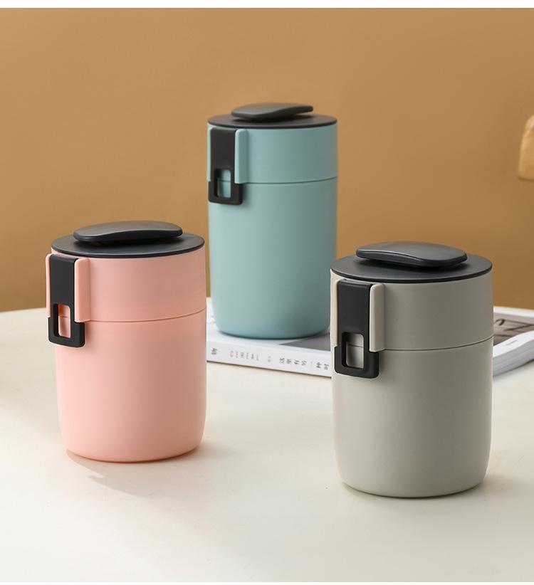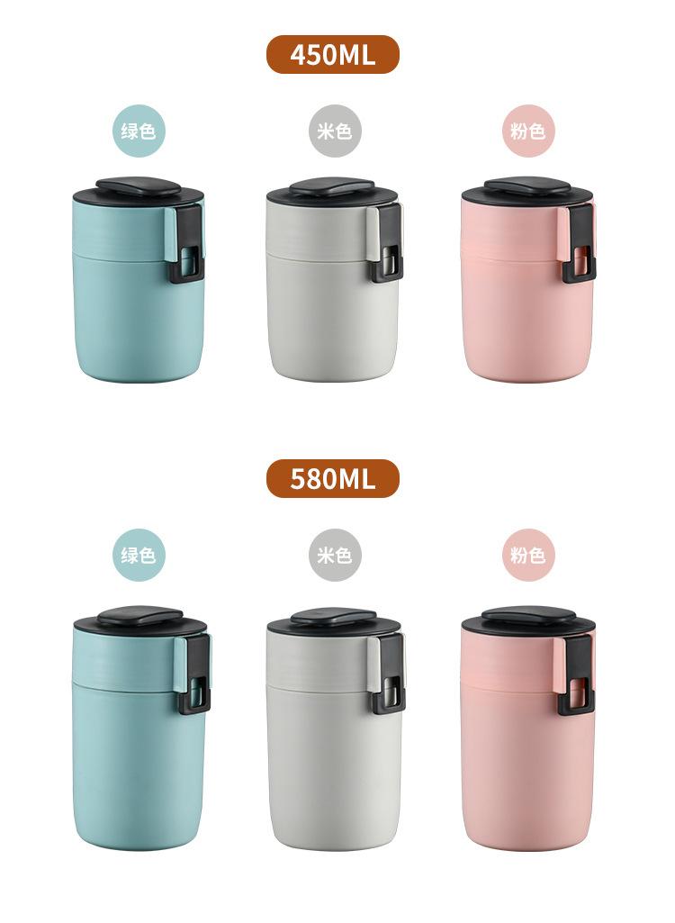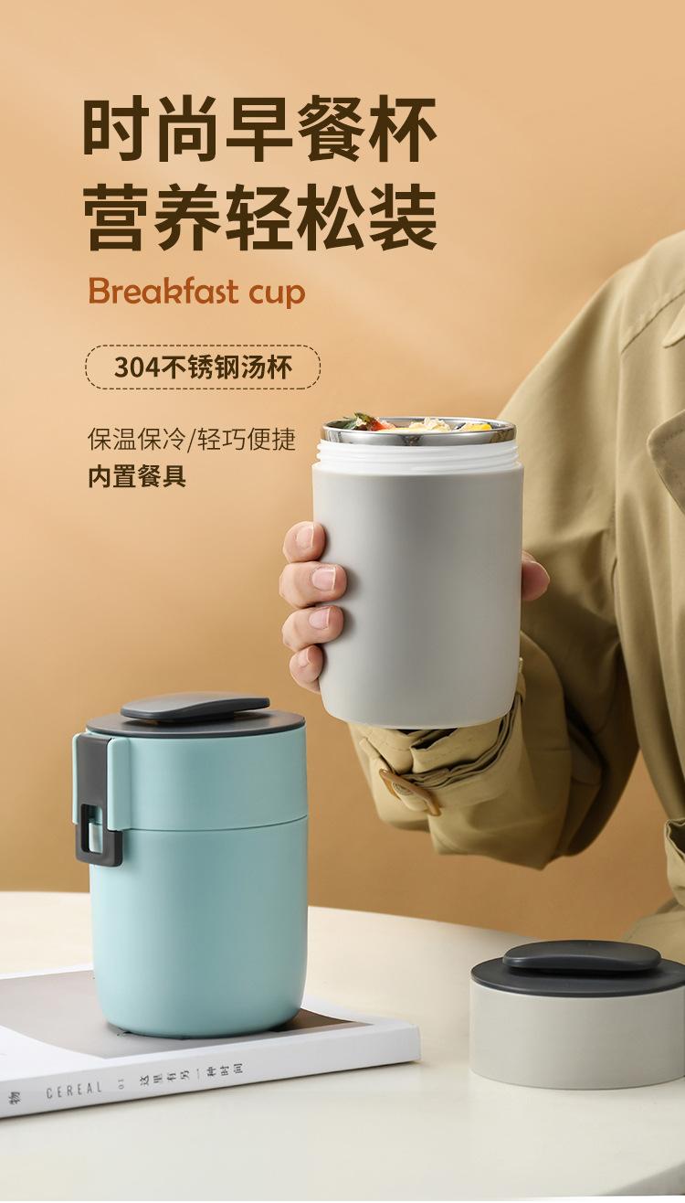 Lonchera térmica de acero inoxidable, olla al vacío de doble capa, cubo de arroz con compartimento para sopa de verduras de gran capacidad, lonchera portátil para estudiantes