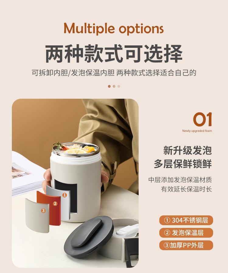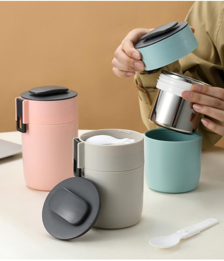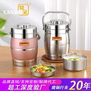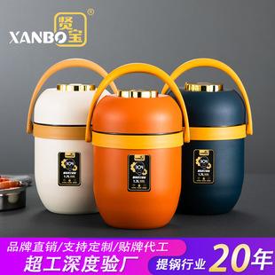 Olla de acero inoxidable 304 con elevación al vacío, cubo aislante sellado para estofado, lonchera portátil multicapa para estudiantes con aislamiento