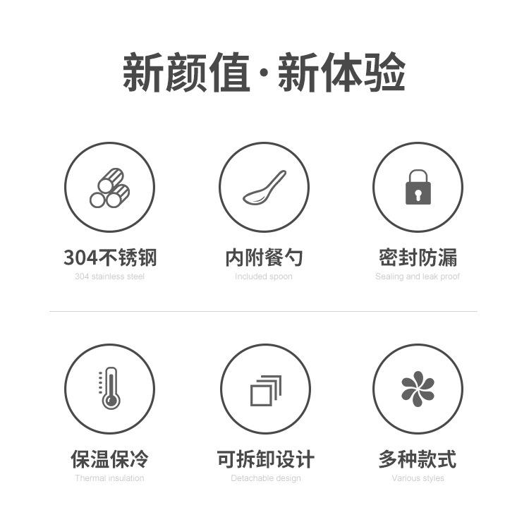 Lonchera con aislamiento al vacío, cubo de arroz de acero inoxidable austenítico 304, olla sellada en capas portátil, vajilla para adultos, regalo