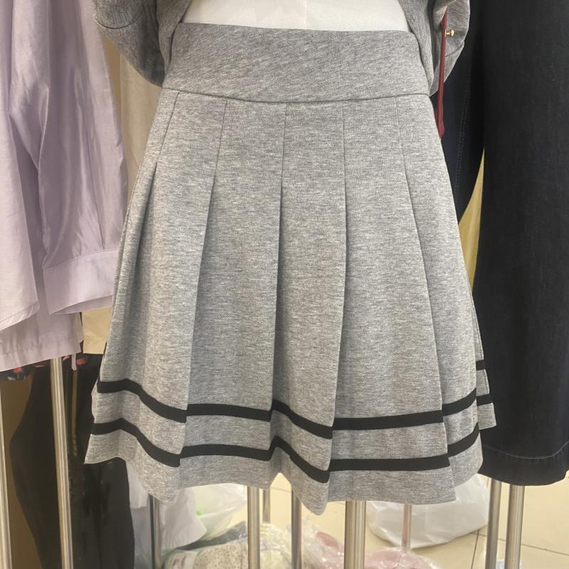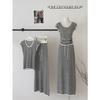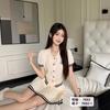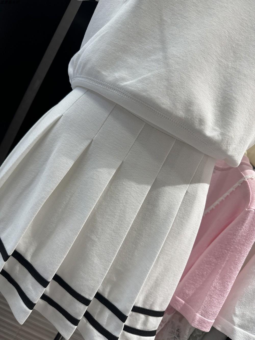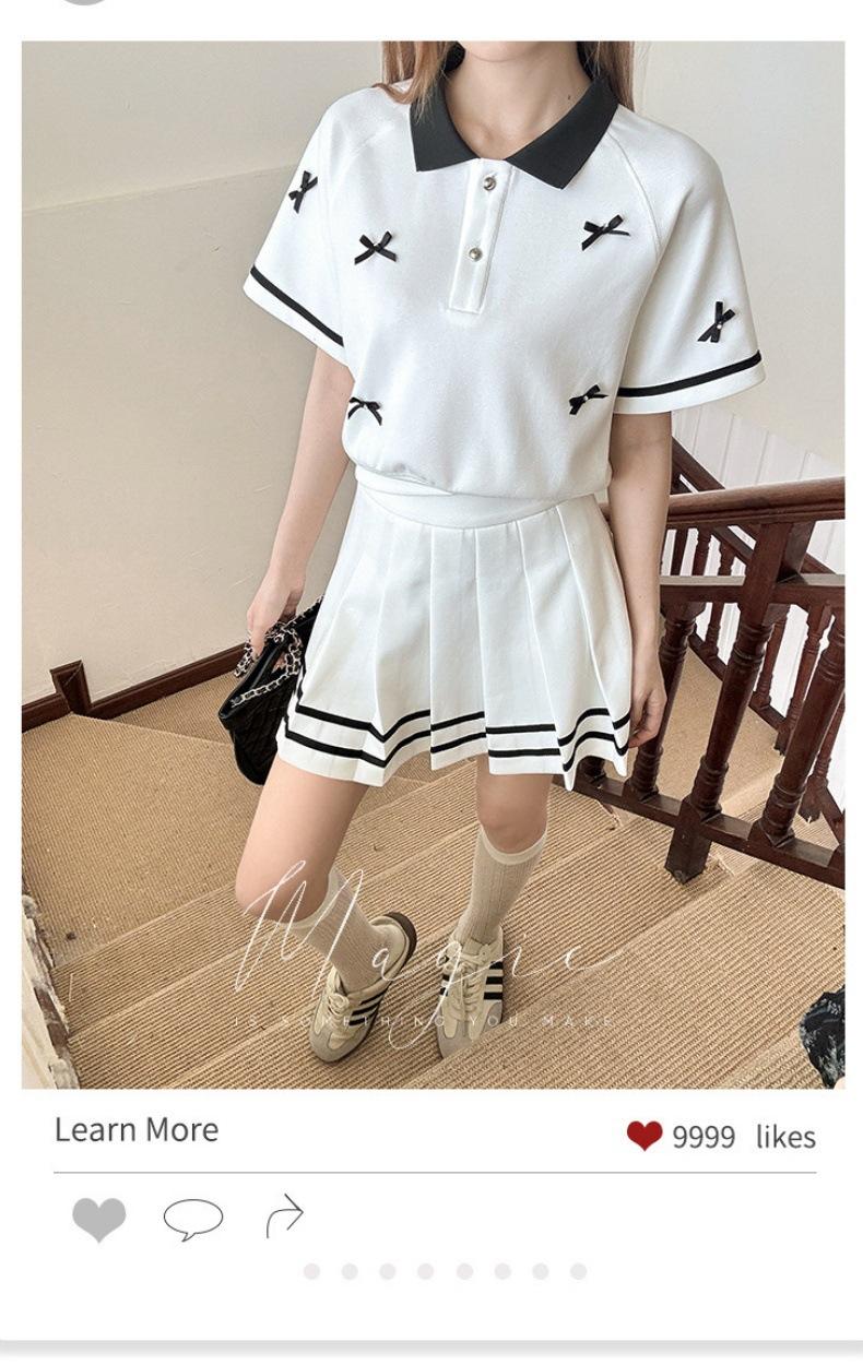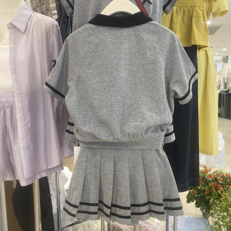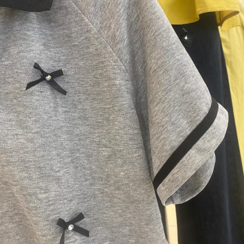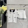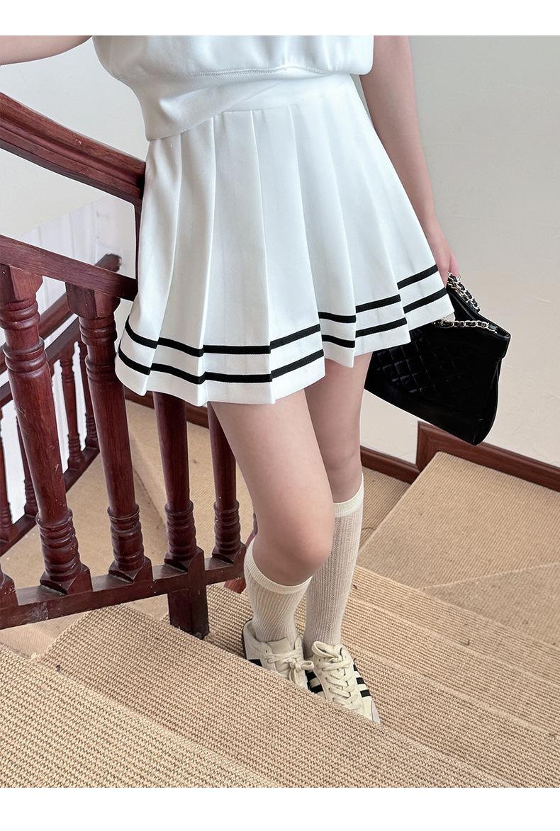 Conjunto de dos piezas de traje de punto para mujer, camiseta de manga corta con lazo tridimensional en contraste de color, falda plisada de cintura alta y pantalones cortos de verano