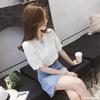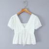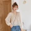 Camisa de encaje con escote en V calado de estilo suave para mujer Otoño 2024 Nueva blusa de gasa con mangas abullonadas finas tejidas a crochet
