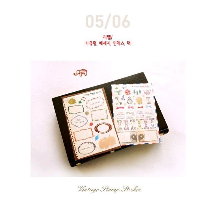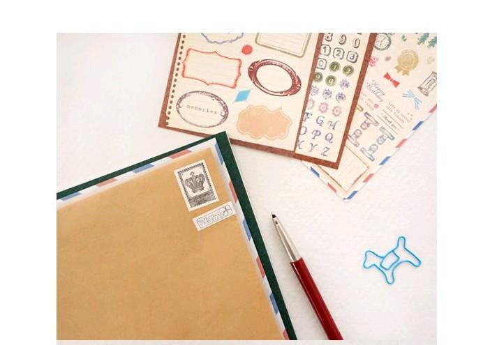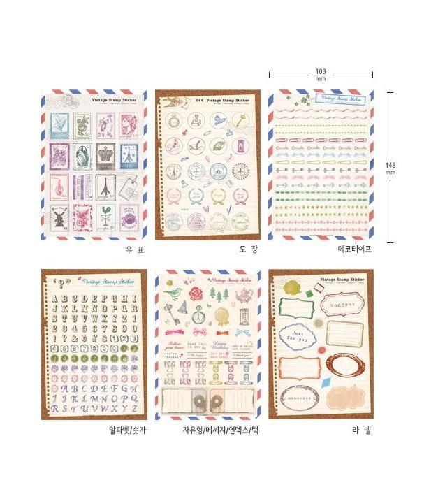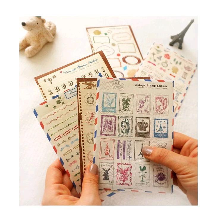Papelería coreana Calcomanía de sello vintage Sellos de papel retro, matasellos, etiquetas y calcomanías 6 piezas