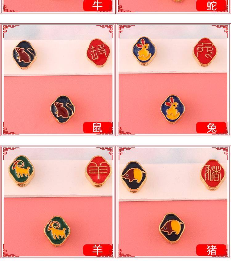 Oro Aluvial Doble Cara Signos del Zodíaco Doce Oro de Faraón Antiguo Azul Quemado Doble Cara Nube Cuentas Planas Cuentas Separadas Accesorios de Joyería DIY Hechos a Mano