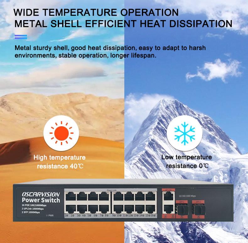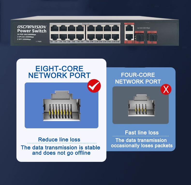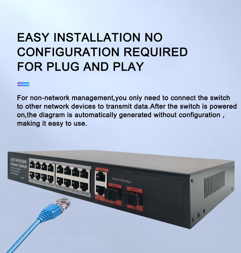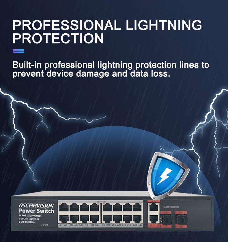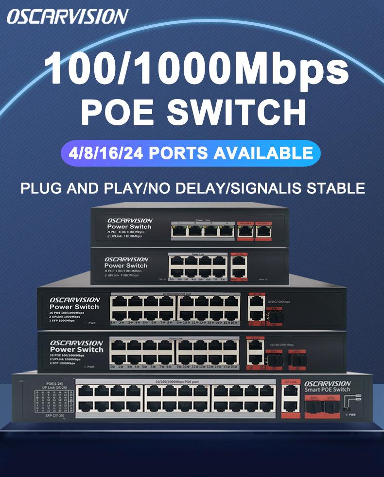 Switch PoE de 4 Puertos 8 Puertos 16 Puertos Gigabit Equipo de Transmisión de Datos para Cámara de Vigilancia de Red en Exteriores con Protección contra Rayos