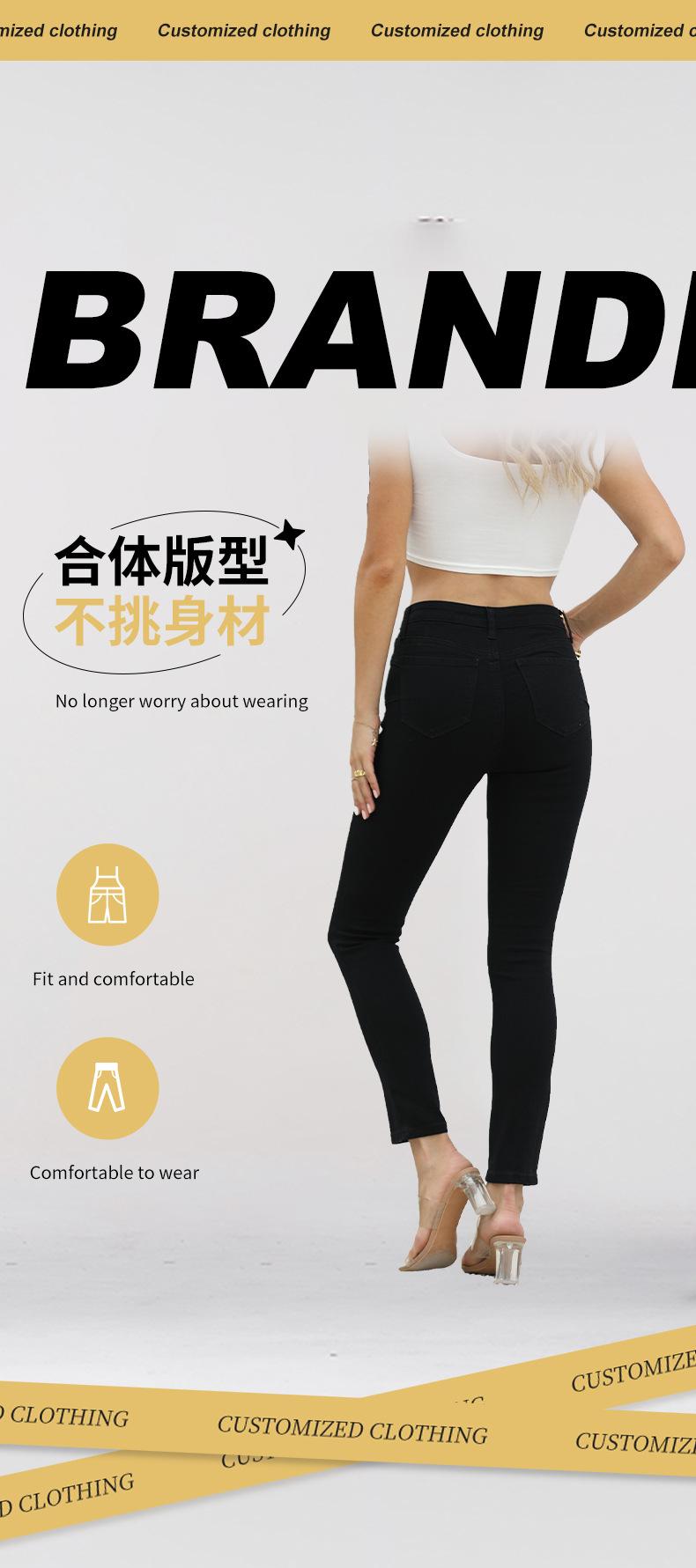Venta al por mayor de fábrica jeans de estilo europeo y americano para mujer pantalones pitillo ajustados negros versátiles para el día a día jeans pitillo europeos y americanos para mujer