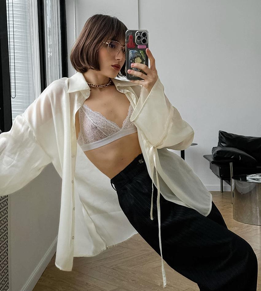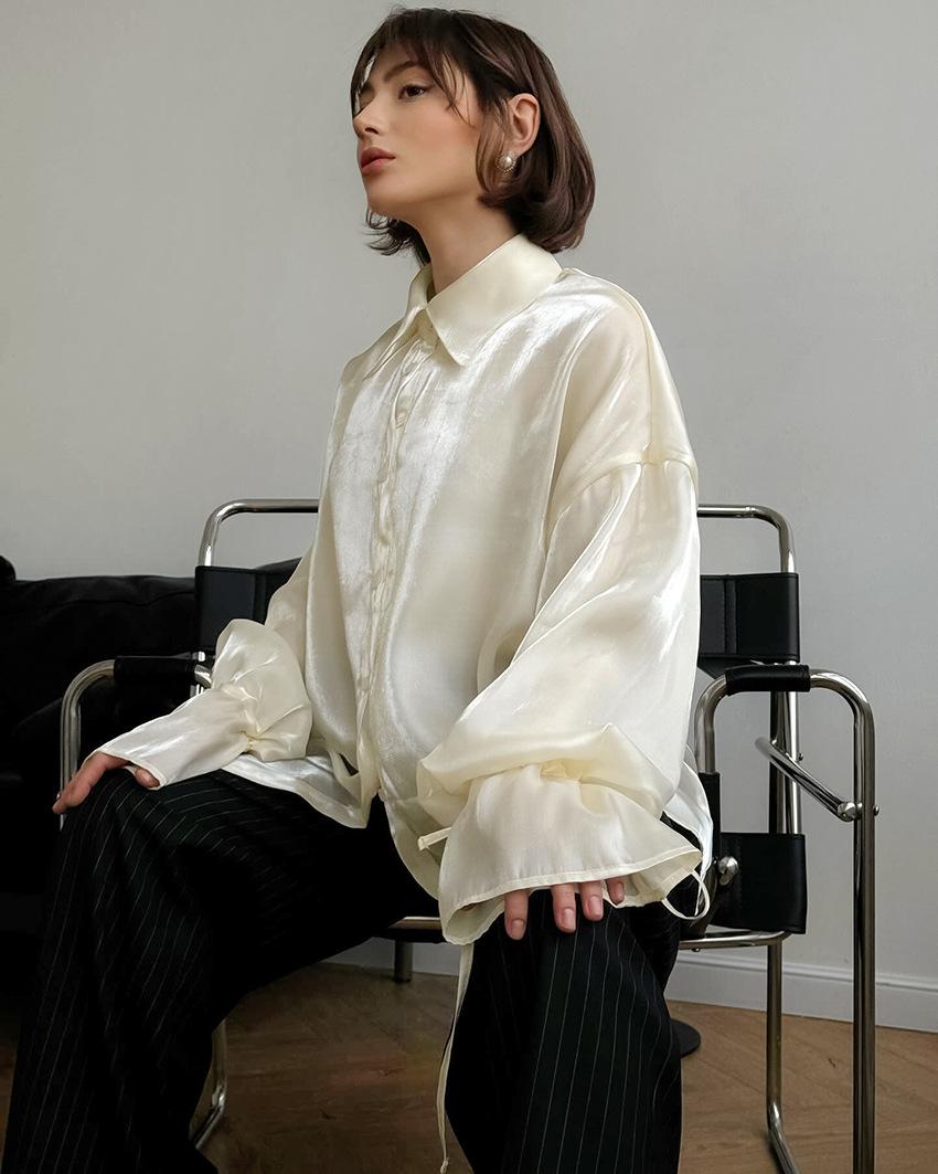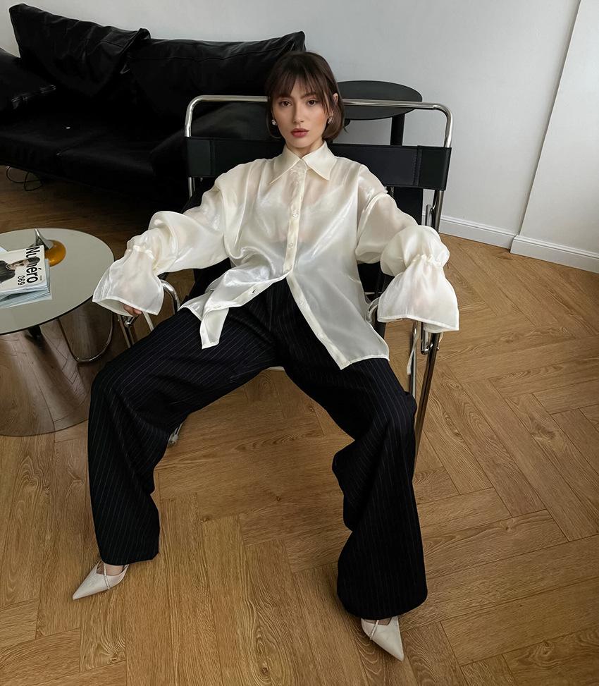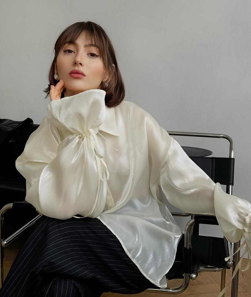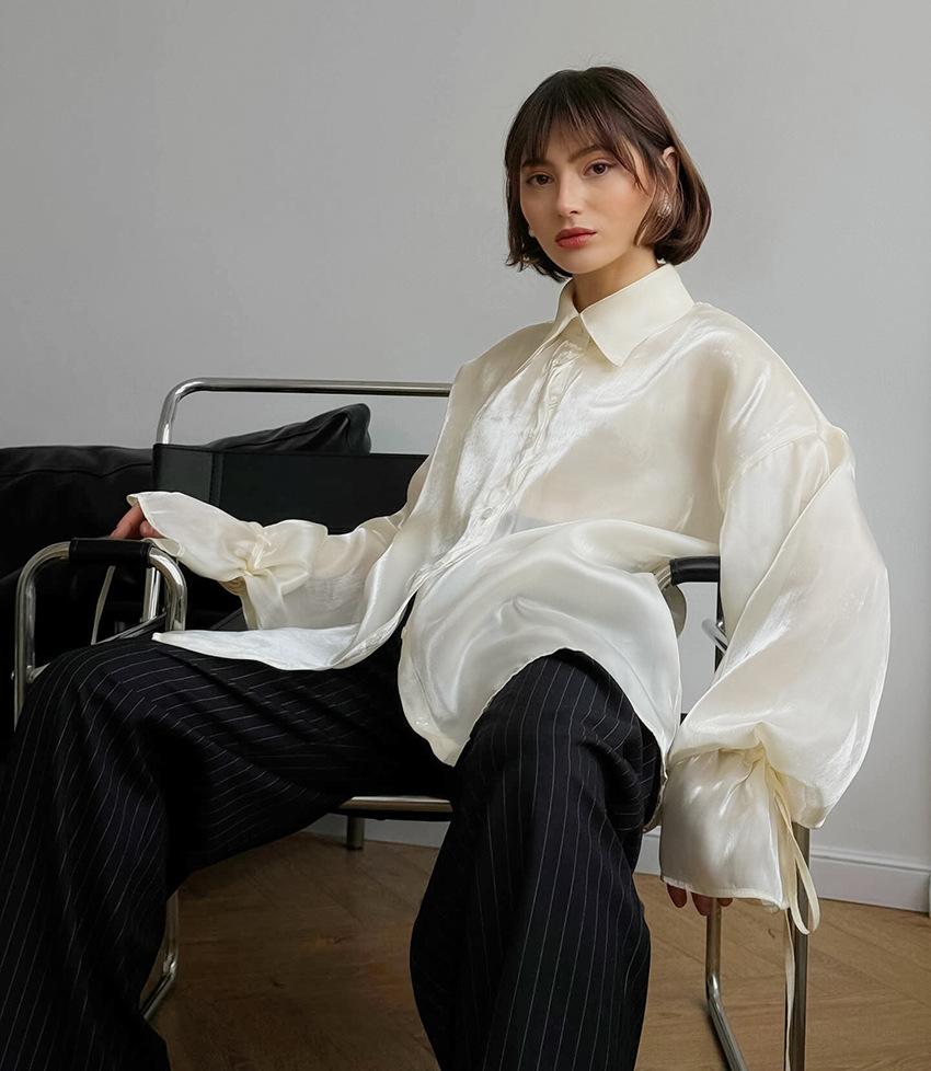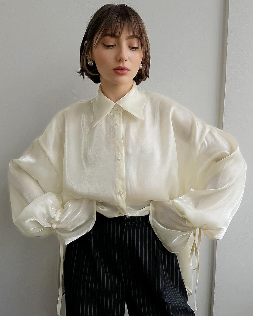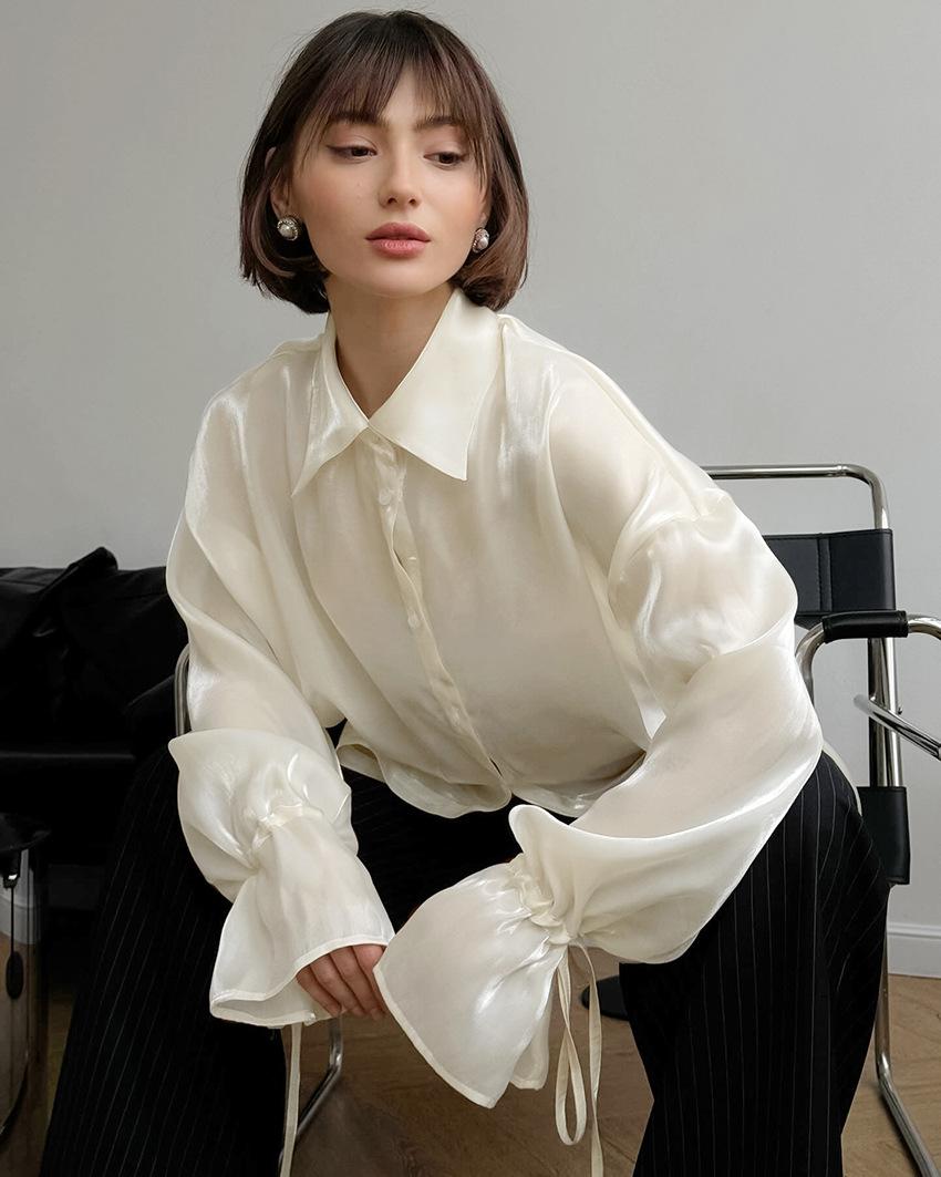 Camisa de manga larga de verano 2024, nueva, de alta calidad, con un temperamento nicho, para mujer, holgada, informal, combinable, para desplazamientos transfronterizos por Europa y América.