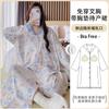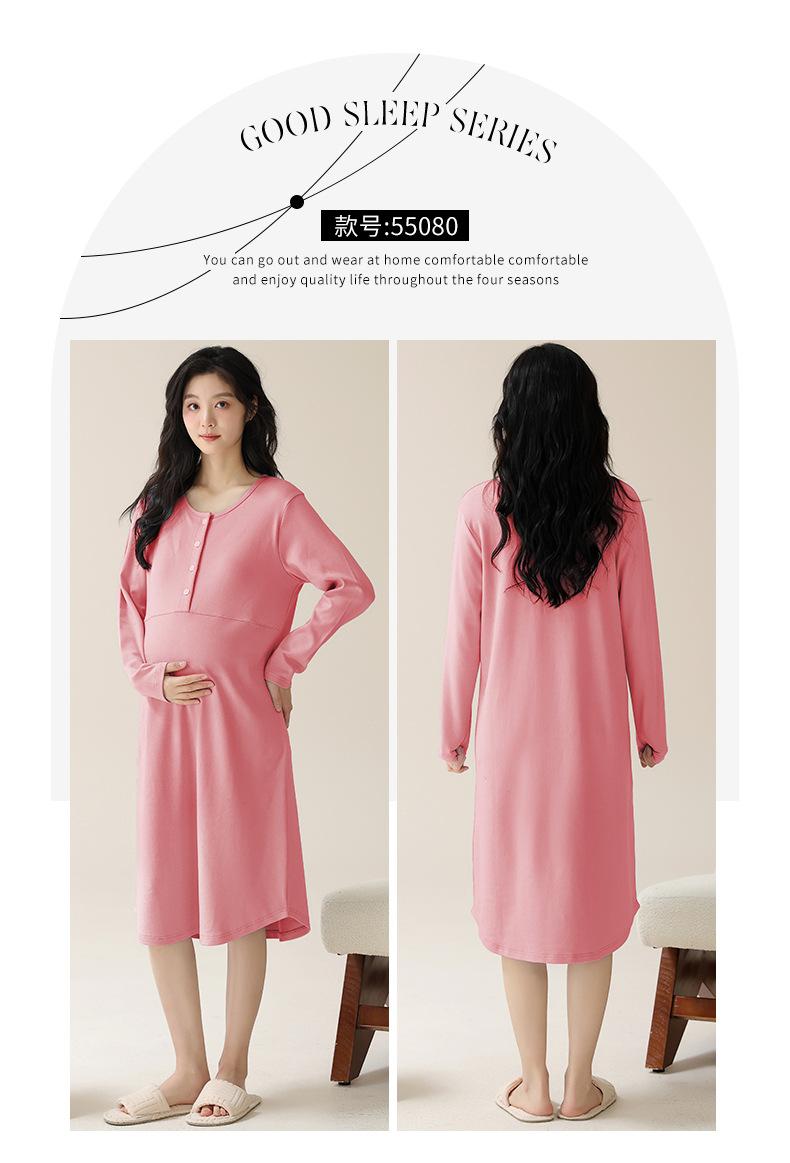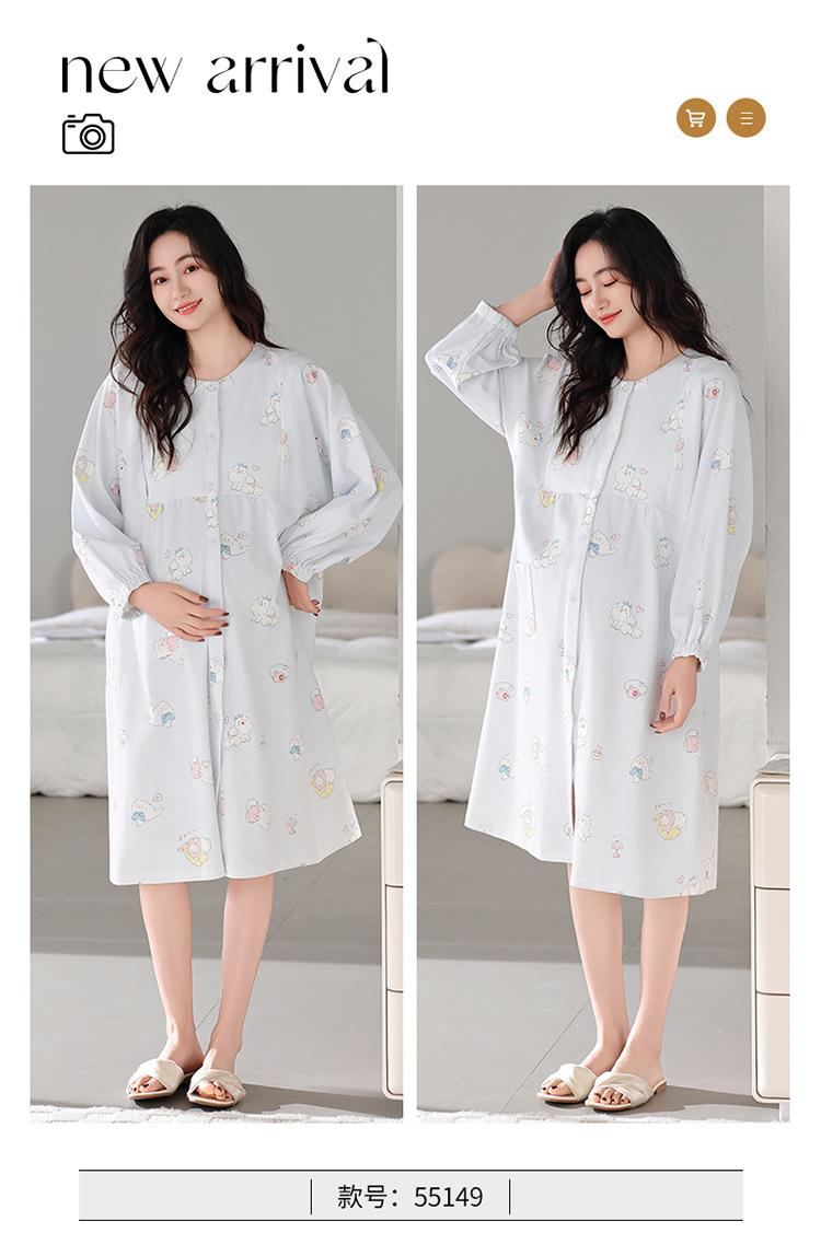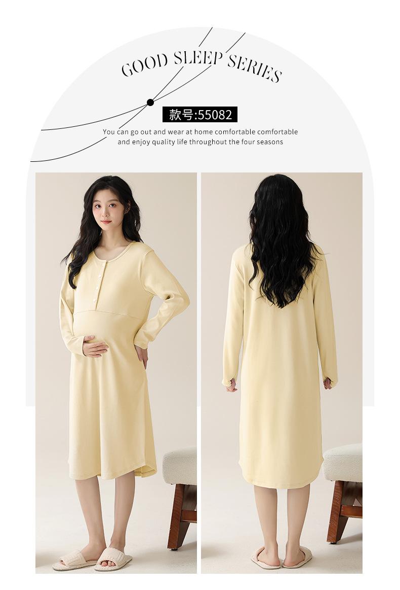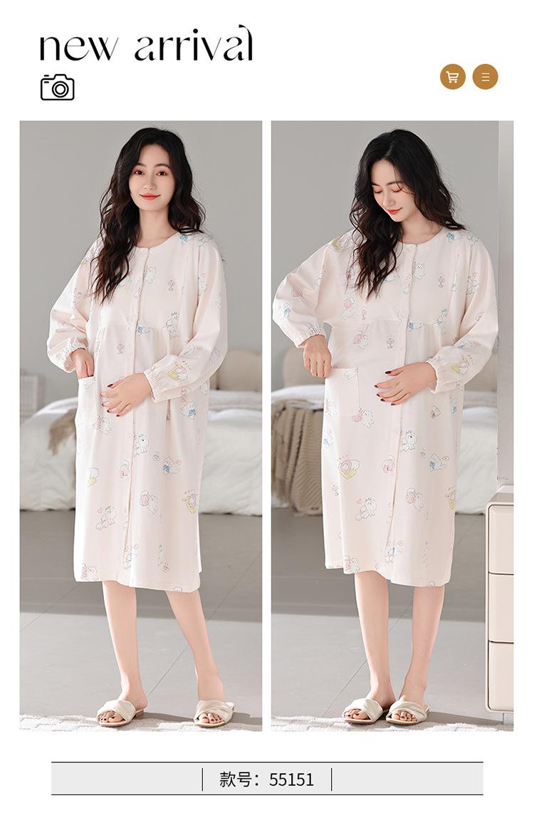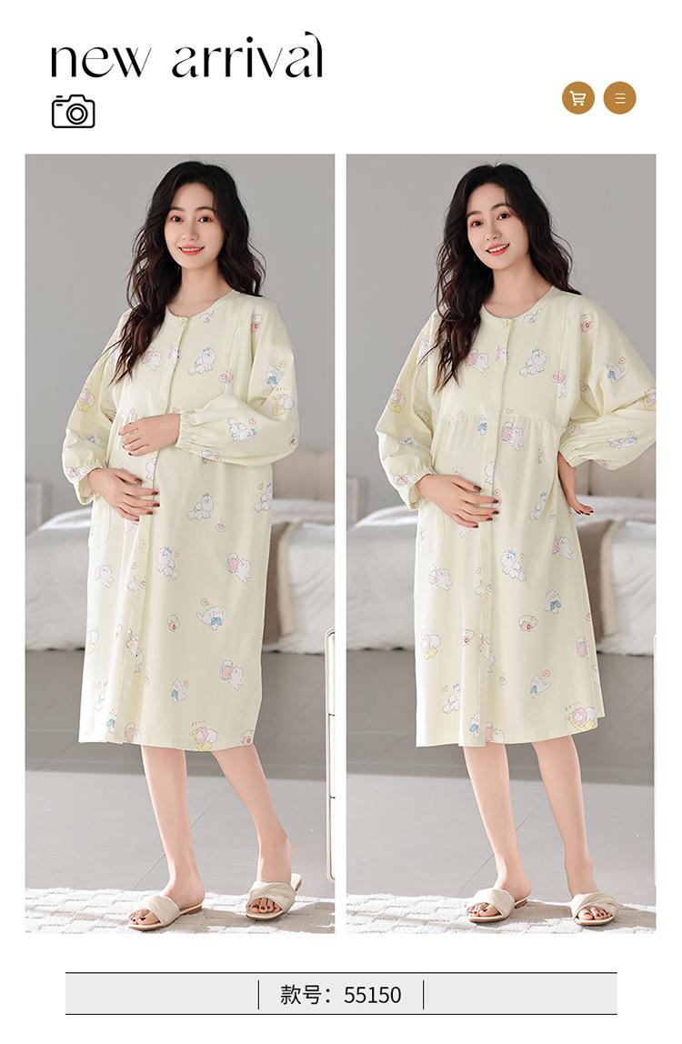 Camisón de algodón puro con almohadilla para el pecho, sujetador sin aros, para embarazadas, pijama de lactancia posparto de longitud media, vestido Yuezi de manga larga para estar en casa.