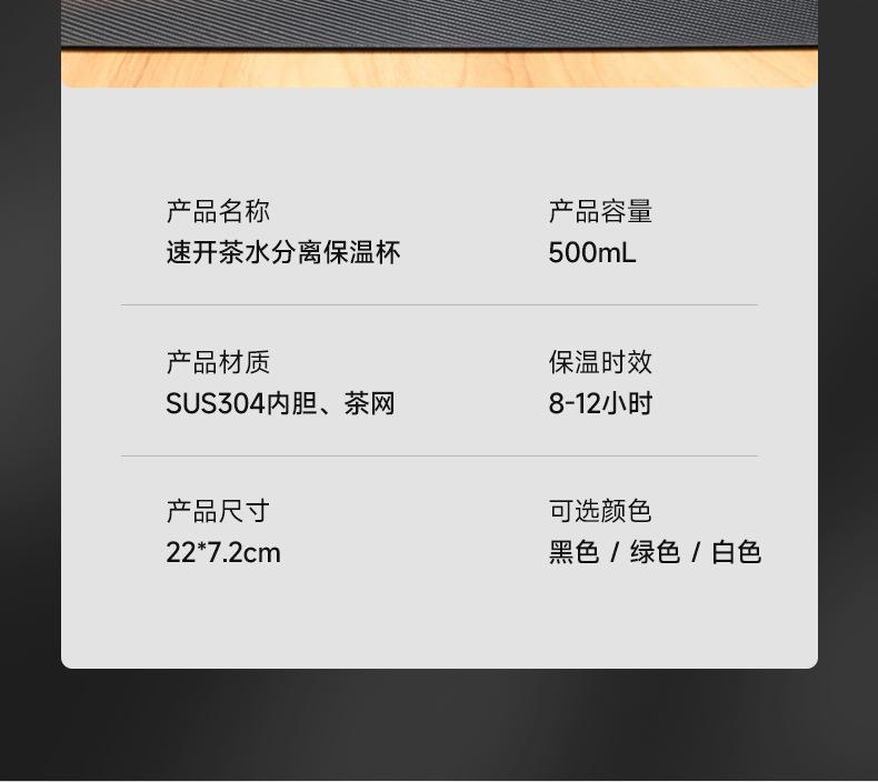 Vaso Termo de Oficina para Negocios Nuevo Acero Inoxidable 304 Vaso para Agua de Apertura Rápida Gran Capacidad Separación de Té y Agua Vaso de Regalo