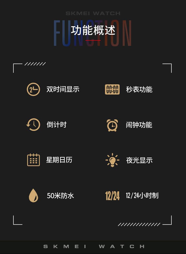 Reloj electrónico SKMEI SKMEI luminoso, resistente al agua, deportivo, ligero, cuadrado, clásico, para estudiantes.