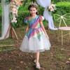 Nuevo Vestido Infantil Transfronterizo Vestido de Malla Abullonado Vestido para Tocar el Piano para Niñas Vestido de Princesa Infantil Estampado