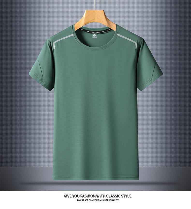 Ropa de manga corta de seda de hielo de secado rápido para hombre, camiseta de verano transpirable que absorbe el sudor para correr, deportes al aire libre, fitness, talla juvenil plus