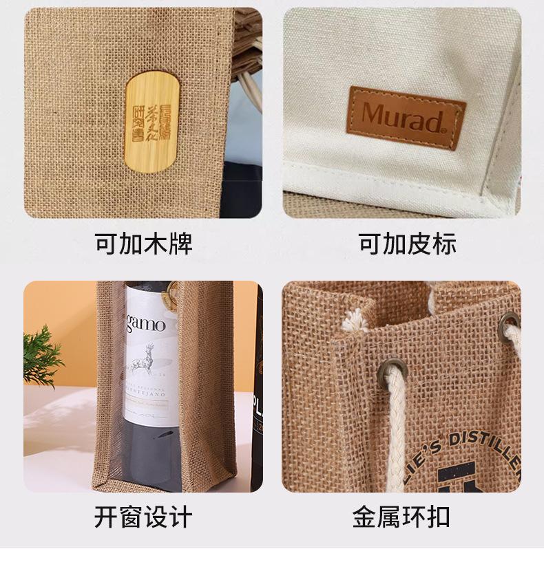 Bolsa de Regalo para Vino Caja de Regalo Bolso de Mano de Lino Embalaje Individual y Doble para Licor Bolsa para Vino Tinto Personalización