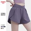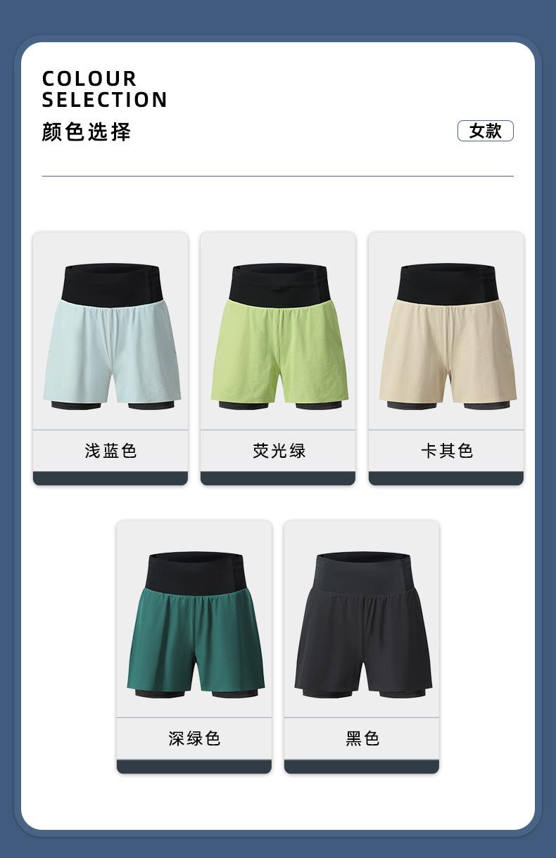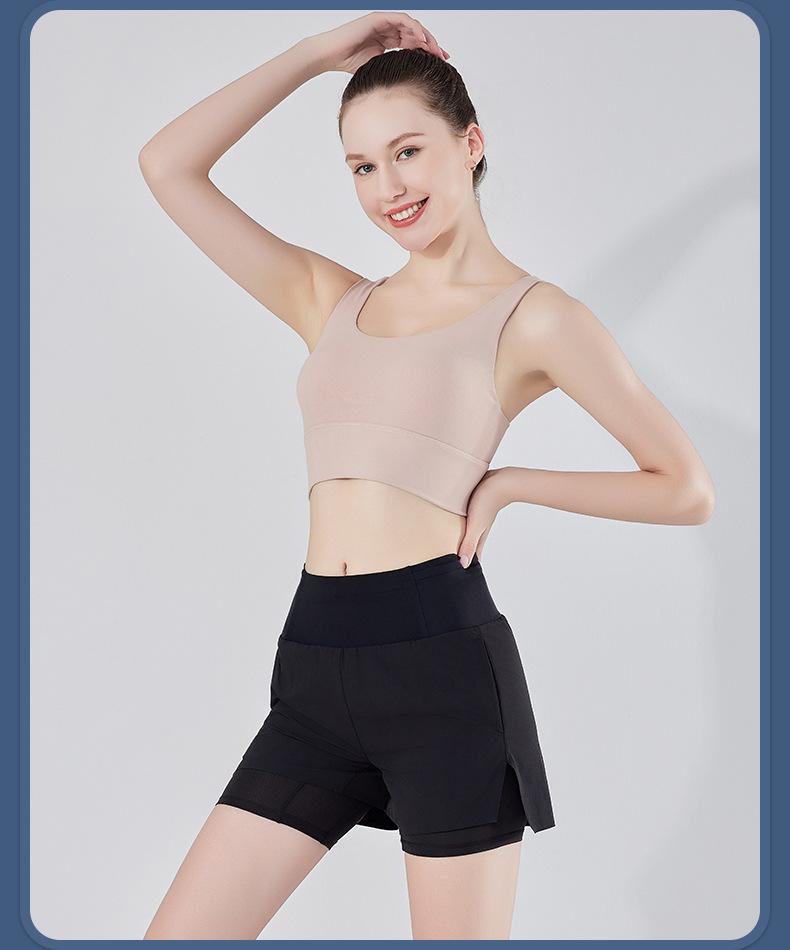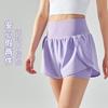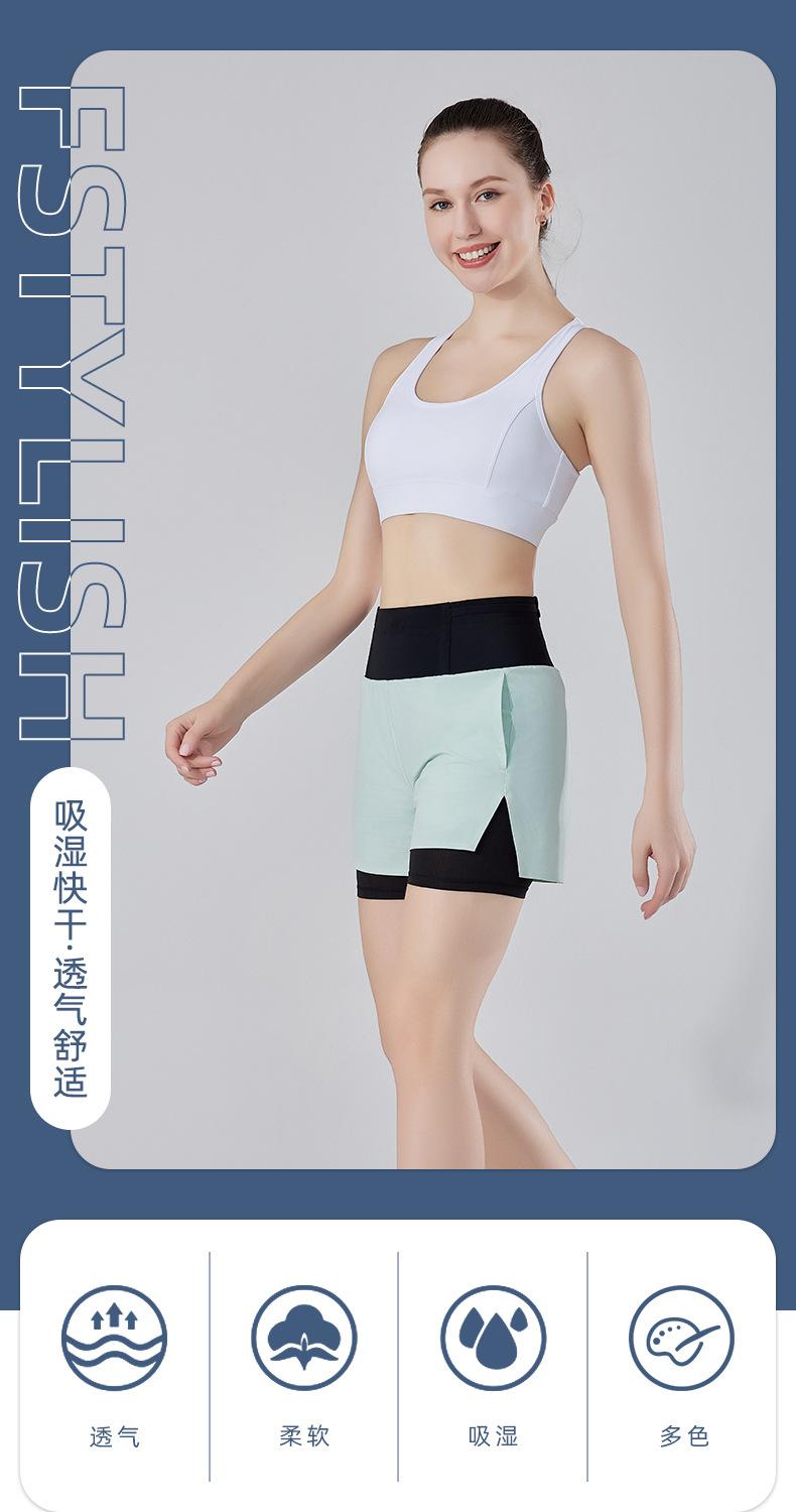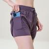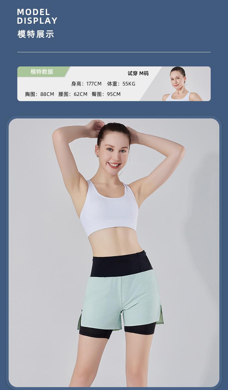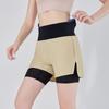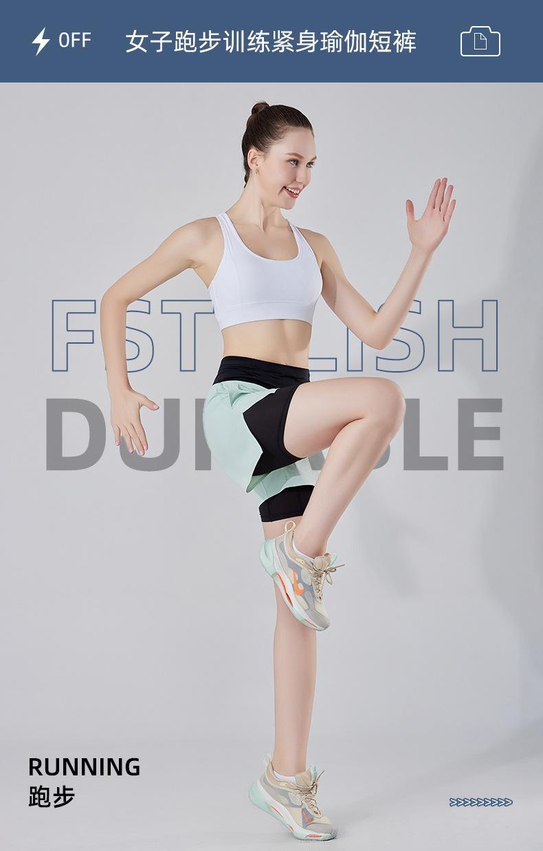 Pantalones cortos de yoga falsos de dos piezas, tres piezas, para correr, para mujer, con bolsillo en la parte trasera y forro anti-carrera, para maratón
