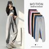 Pantalones casuales grises para mujer, primavera y otoño de 2025, nuevos pantalones deportivos holgados y adelgazantes de pierna ancha, pantalones deportivos de punto tipo harén pequeños.