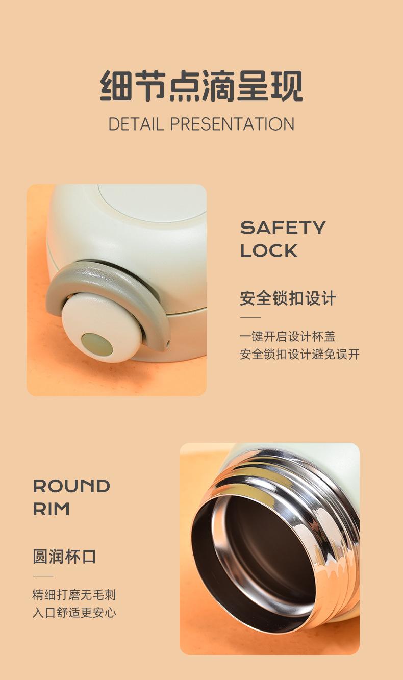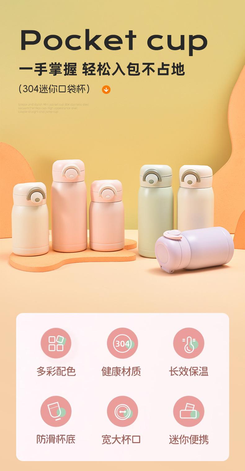 Mini termo de moda de alto valor, taza de bolsillo al vacío de acero inoxidable 304, taza portátil a presión con cerradura