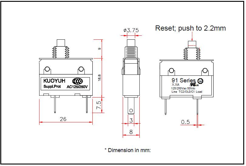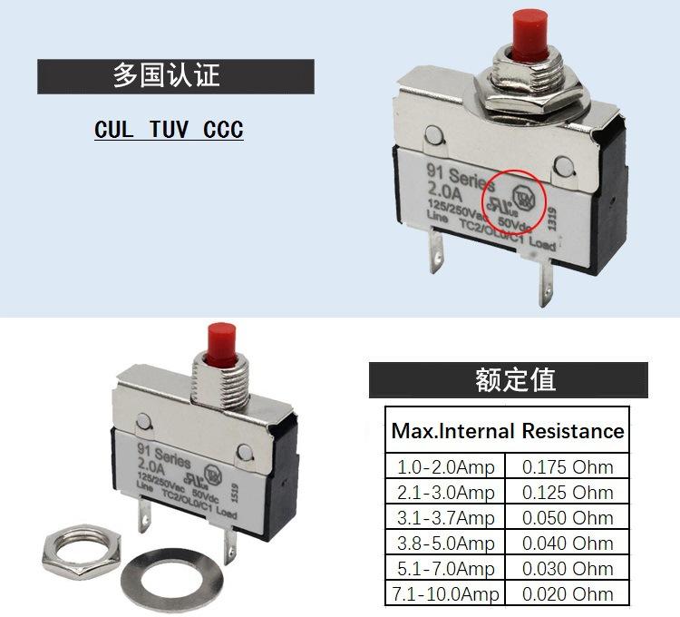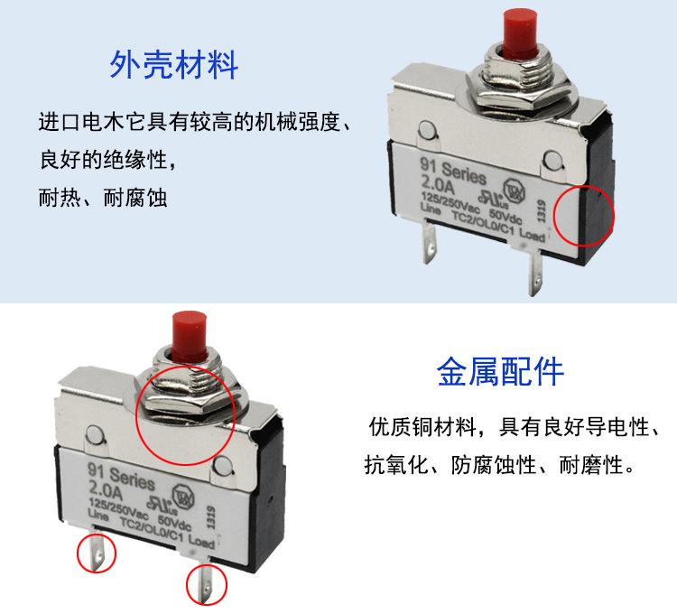 Protector de sobrecarga de corriente serie 91 91-2A pequeño interruptor de circuito con perno producto de protección de reinicio manual