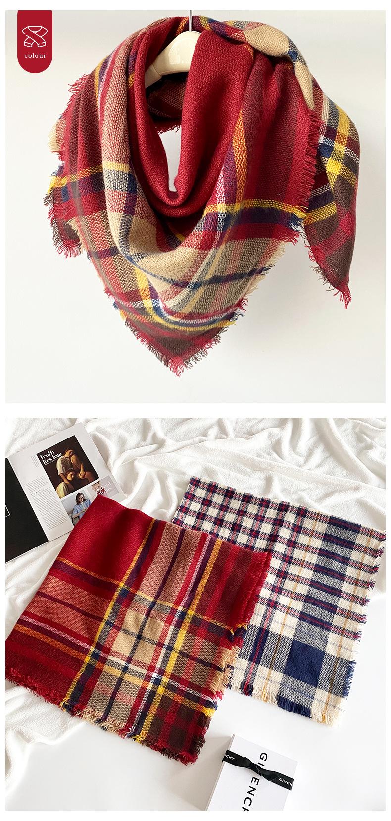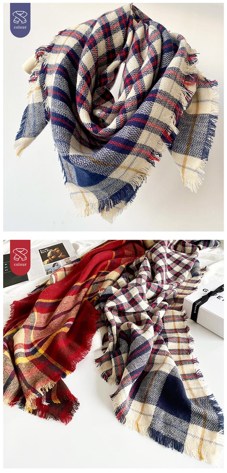 Bufanda de cachemir a cuadros estilo británico para mujer, diseño invernal, gruesa y cálida, chal cuadrado de 90 cm, venta al por mayor