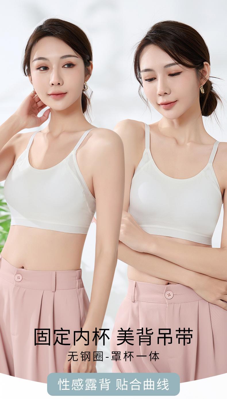 Mono deportivo de algodón puro para mujer, tipo sling, push-up, sin aro de acero, copa fija con almohadilla para el pecho, ropa interior tipo tubo que envuelve el pecho