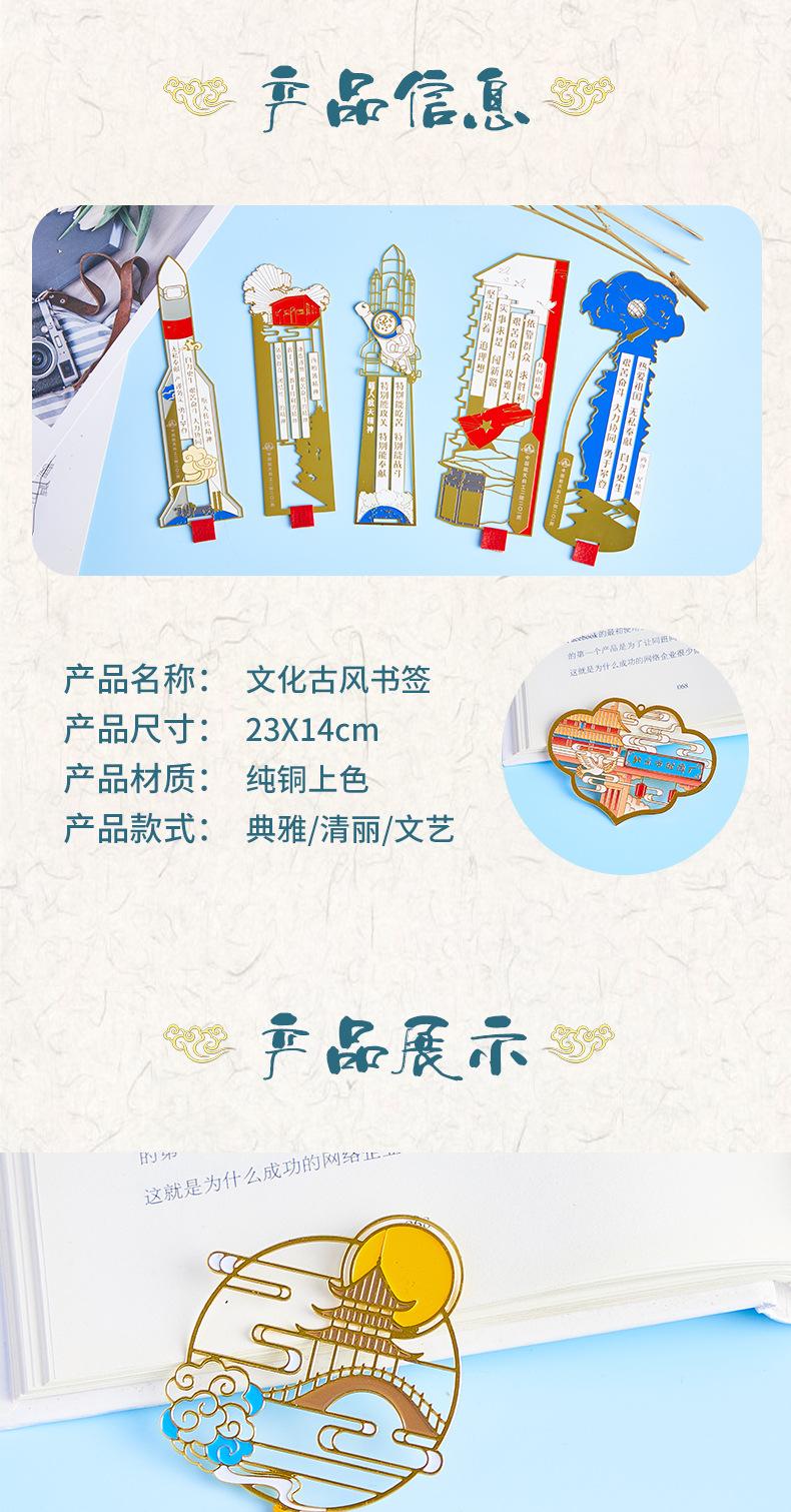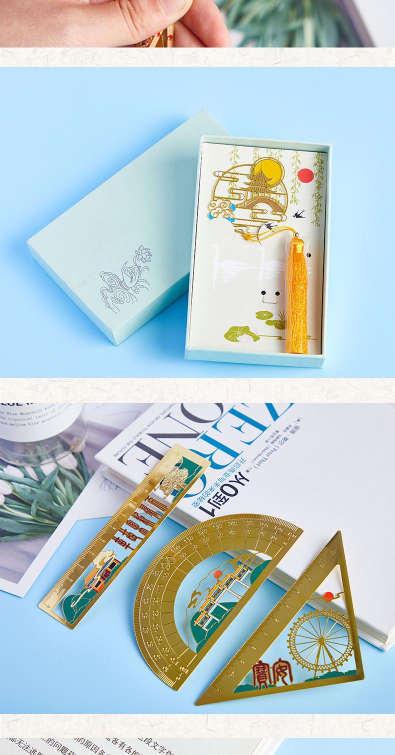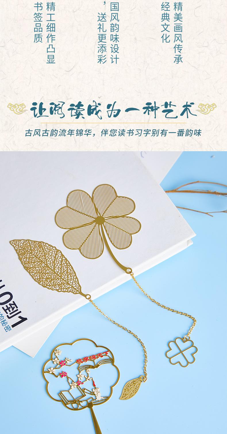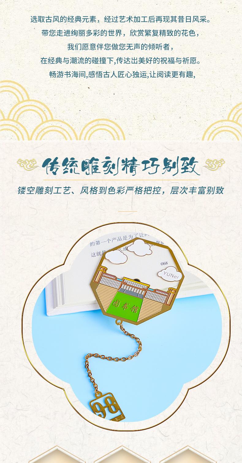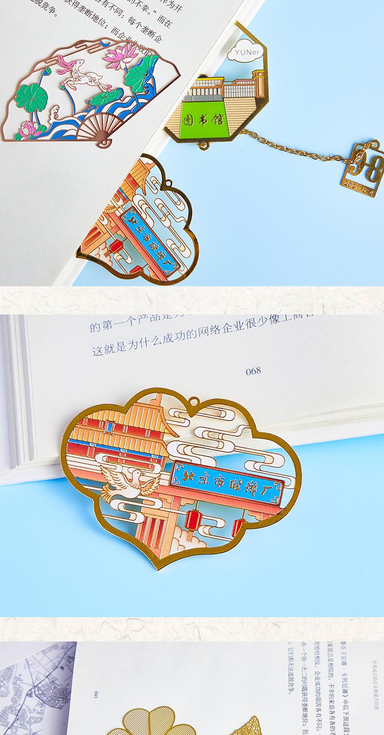 Marcador de metal de fábrica, marcador hueco de latón personalizado, diseño de dibujo personalizado creativo de lugar escénico chino