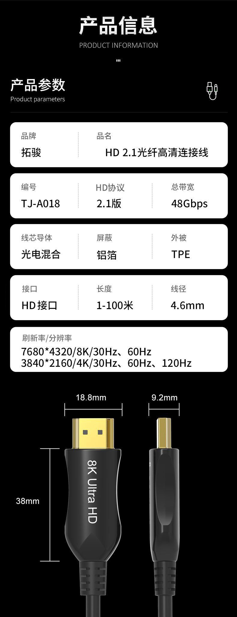 Hdmi 8k optical fiber cable-zinc alloy model, HDMI 8K Fiber Cable-Best Selling