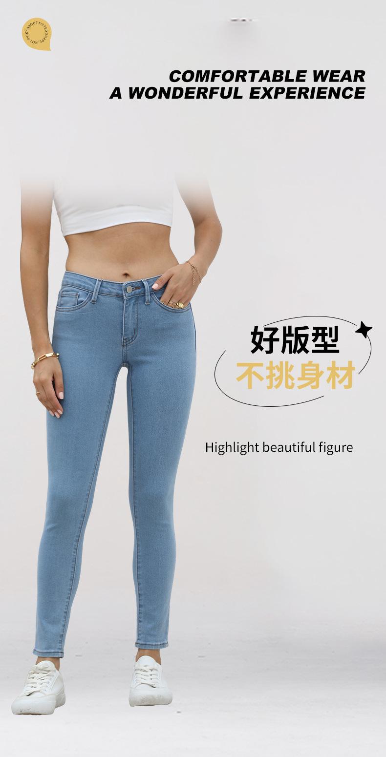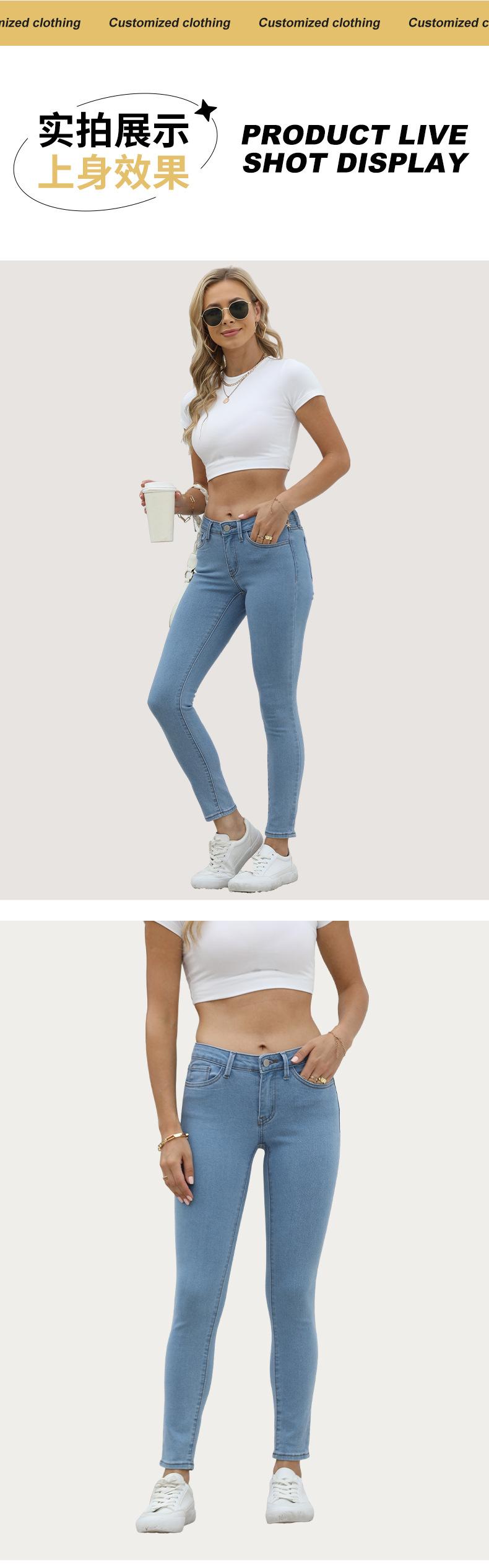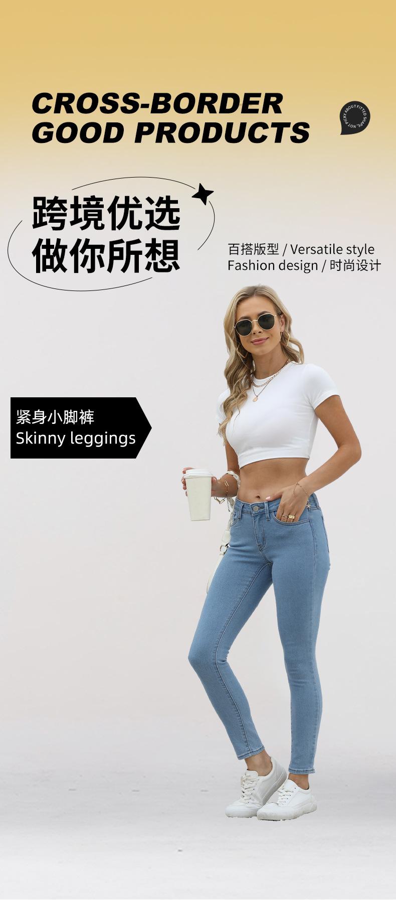 Jeans transfronterizos personalizados para mujer, corte entallado en color puro, jeans ajustados de cintura media de exportación europea y americana.