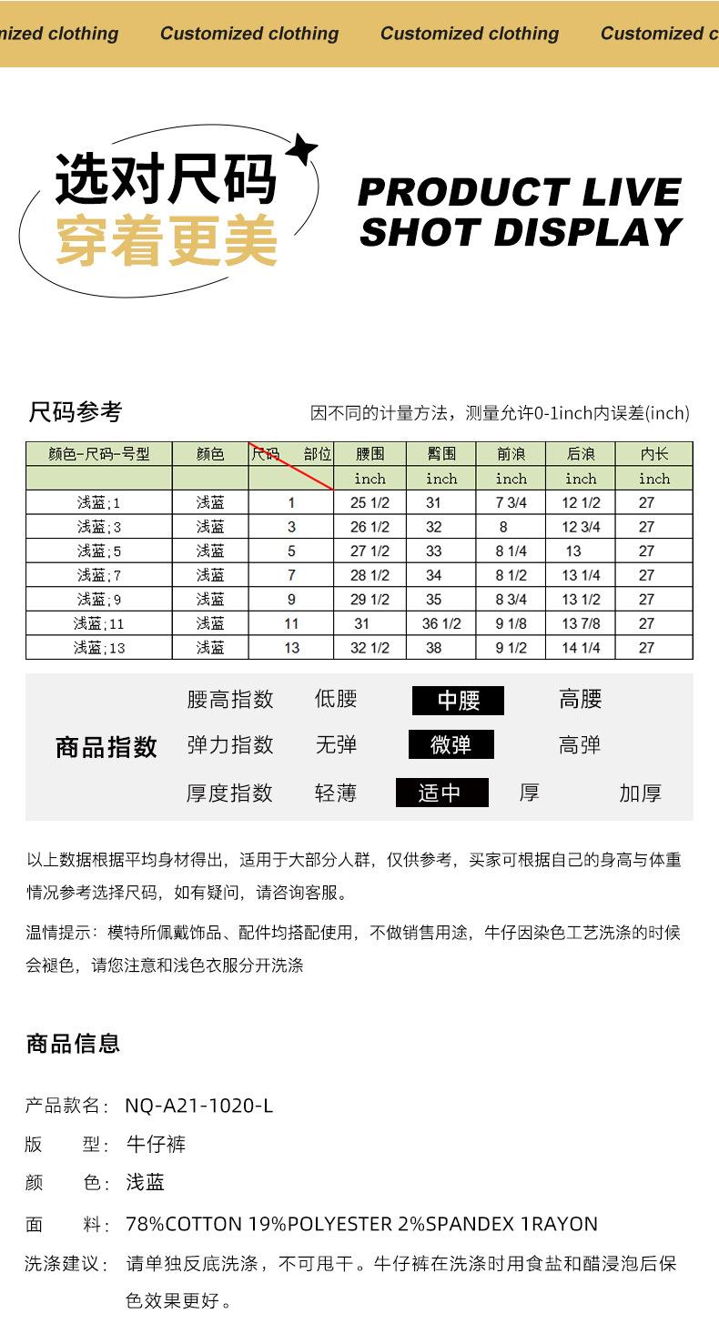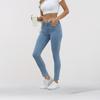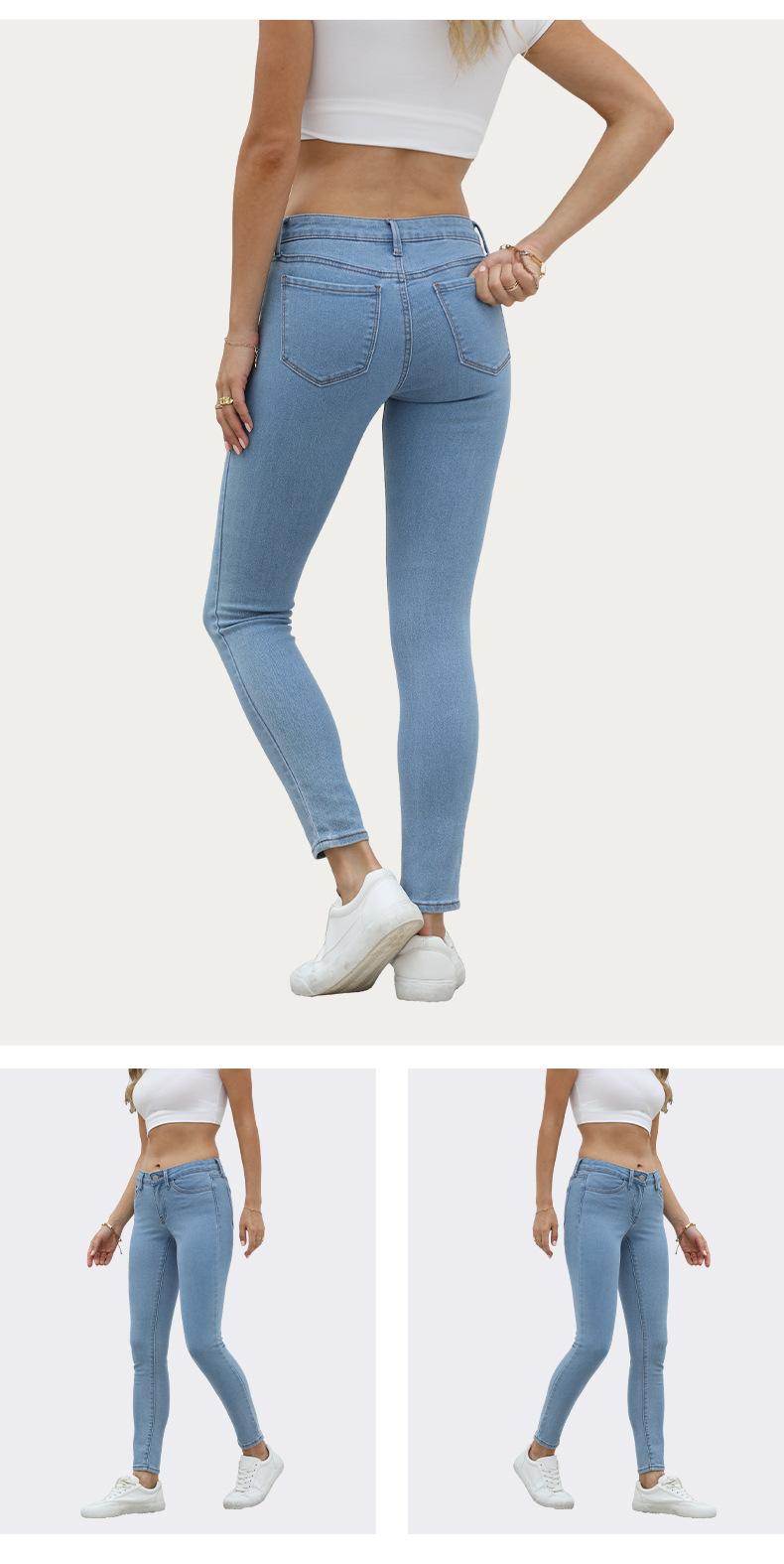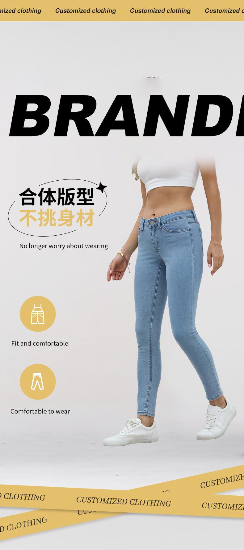 Jeans transfronterizos personalizados para mujer, corte entallado en color puro, jeans ajustados de cintura media de exportación europea y americana.