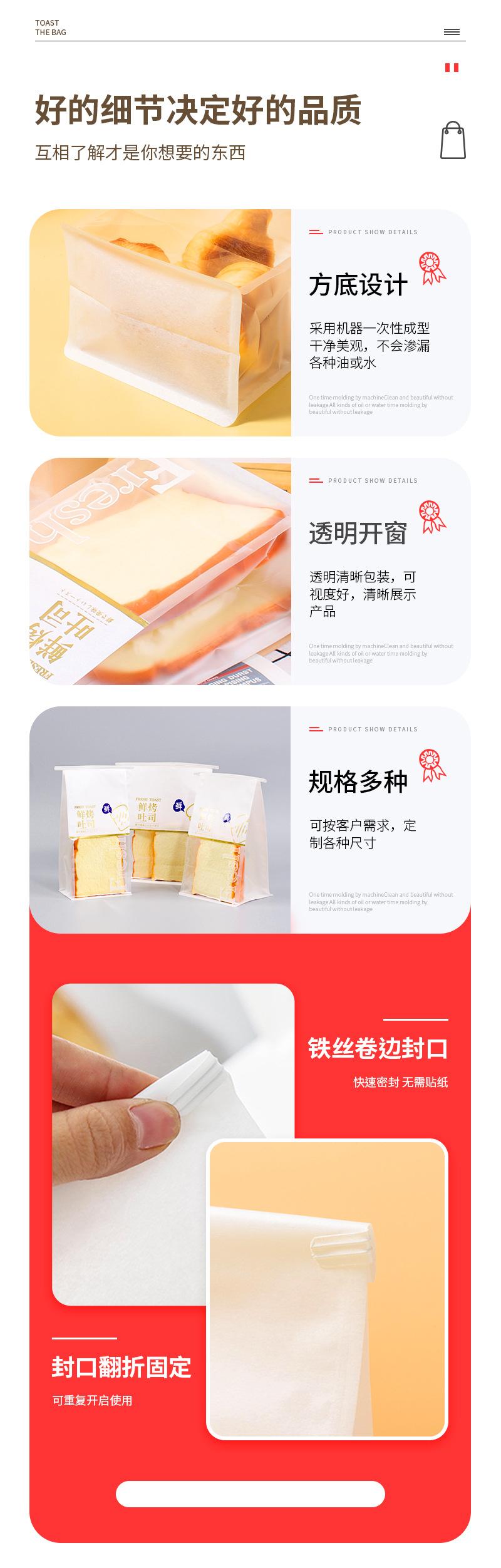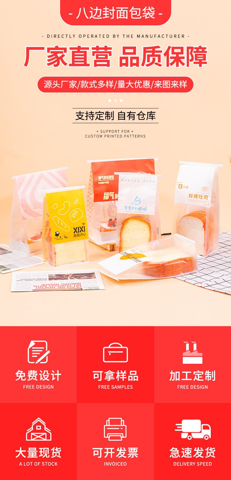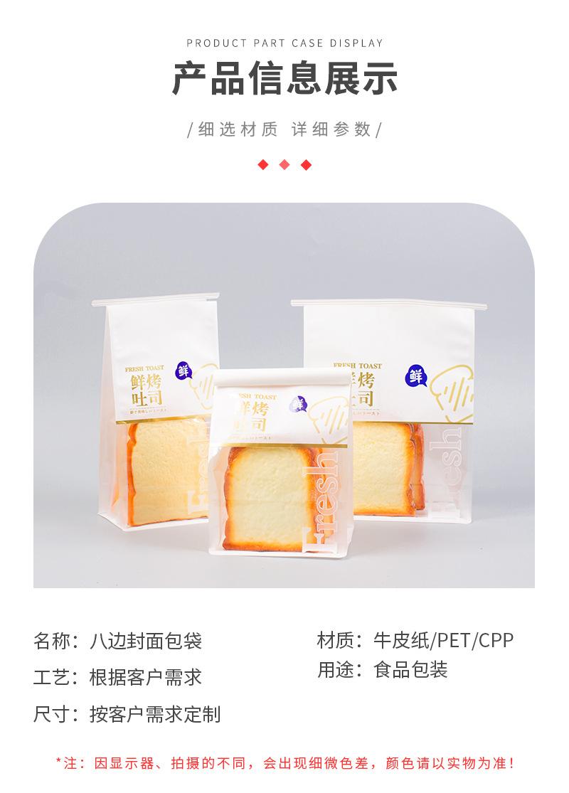 Bolsa de Embalaje Personalizada de Grado Alimenticio Pan Tostado Horneado Sellada por Ocho Lados Bolsa Autoestable Papel Kraft Papel Algodón a Prueba de Aceite Bolsa de Pastelería