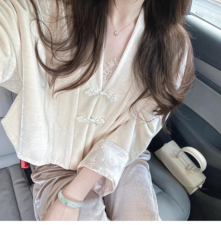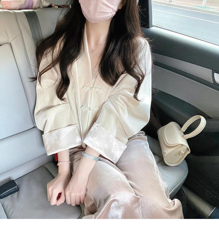 Pantalones rectos de terciopelo para mujer otoño e invierno engrosados sueltos drapeados casuales de pierna ancha