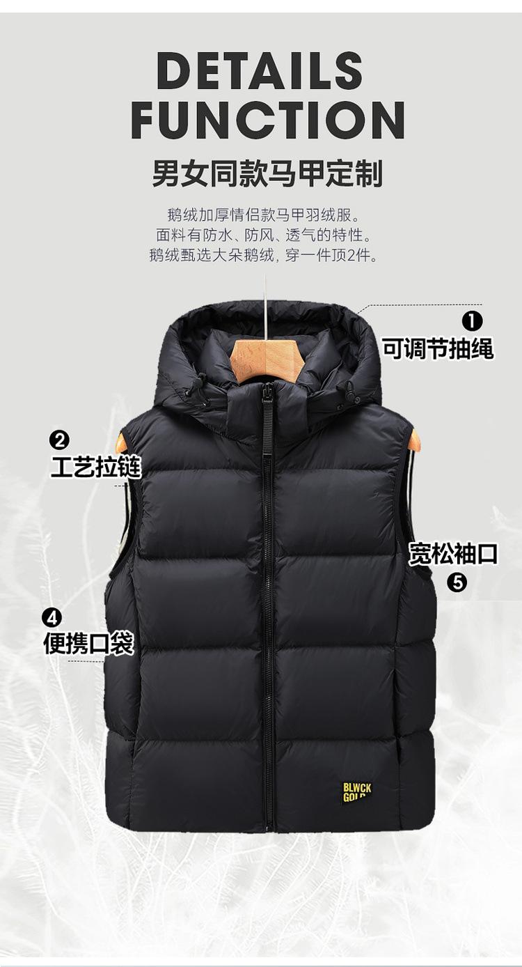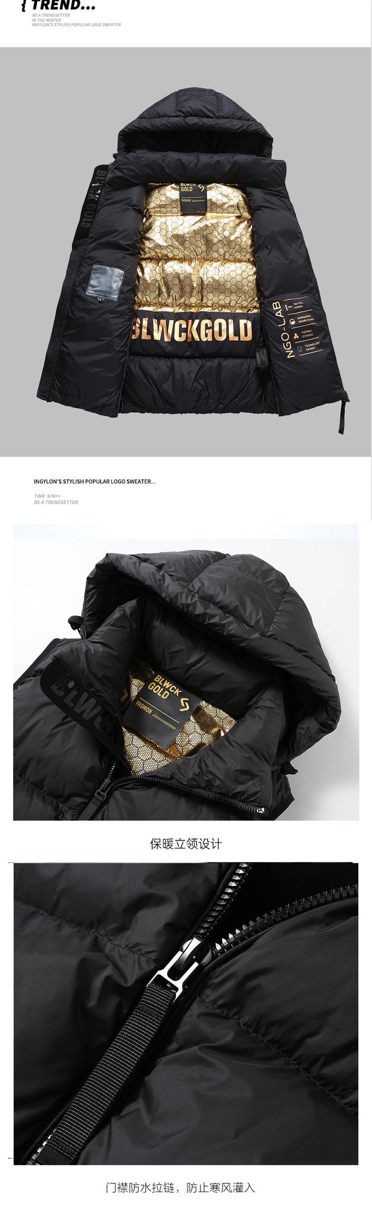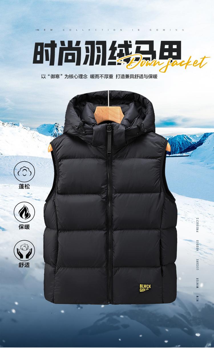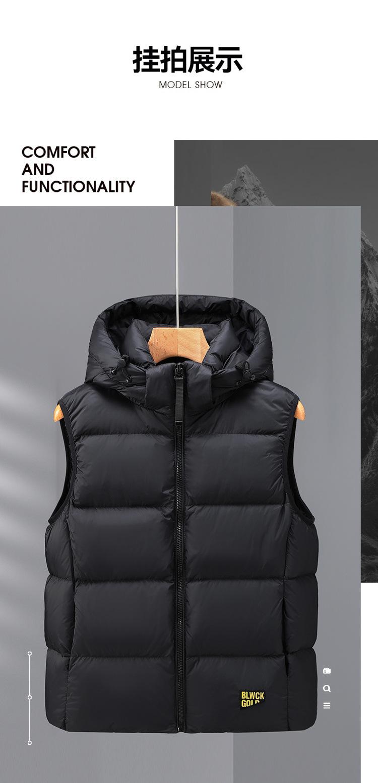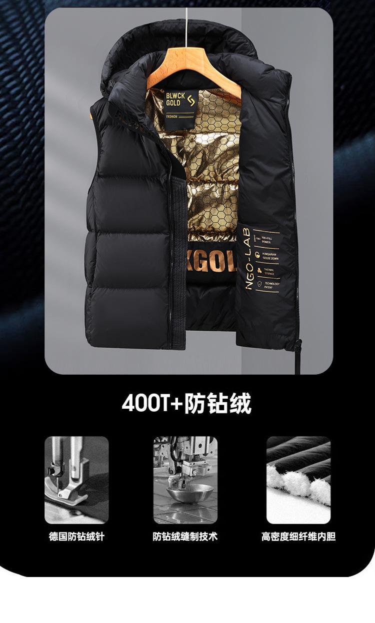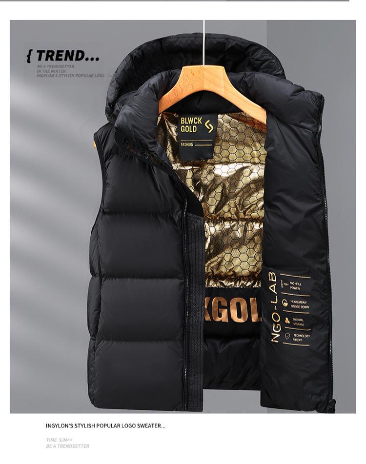 Chaqueta de Plumas Chaleco Negro Dorado Otoño e Invierno con Capucha sin Mangas Chaqueta de Plumas para Hombre Nueva Chaqueta de Plumas Estilo Coreano Chaleco Chaleco Ropa de Hombre
