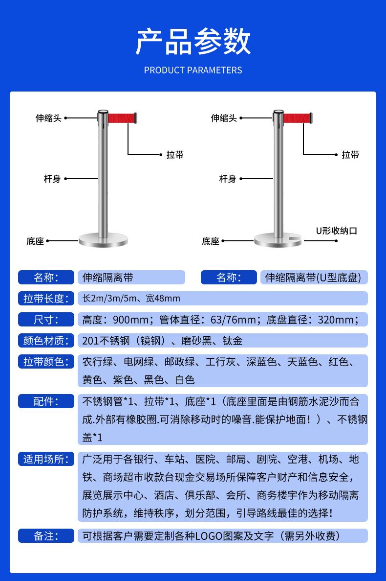 Cinturón de aislamiento de barandilla de línea de un metro, cinturón telescópico, cinturón de aislamiento de advertencia de seguridad de acero inoxidable, cinturón de advertencia, barandilla de cola de banco