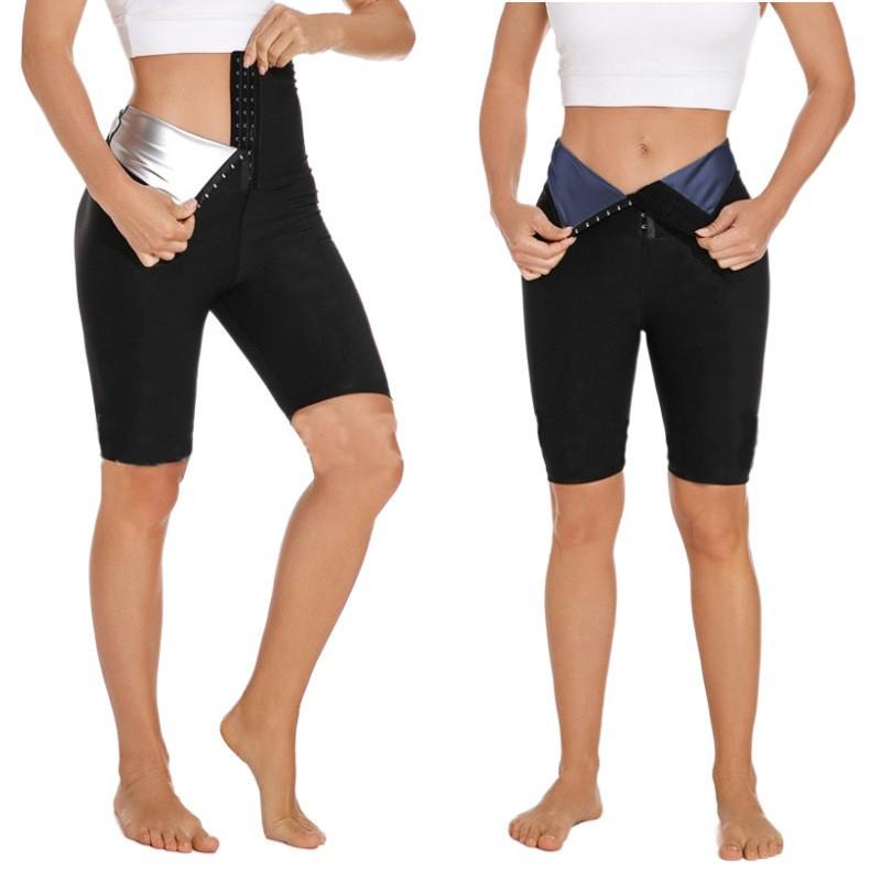 Pantalones deportivos de talla grande con revestimiento grueso de Amazon Fitness, traje adelgazante para mujer, pantalones de yoga de cinco puntos con movimiento abdominal para verano