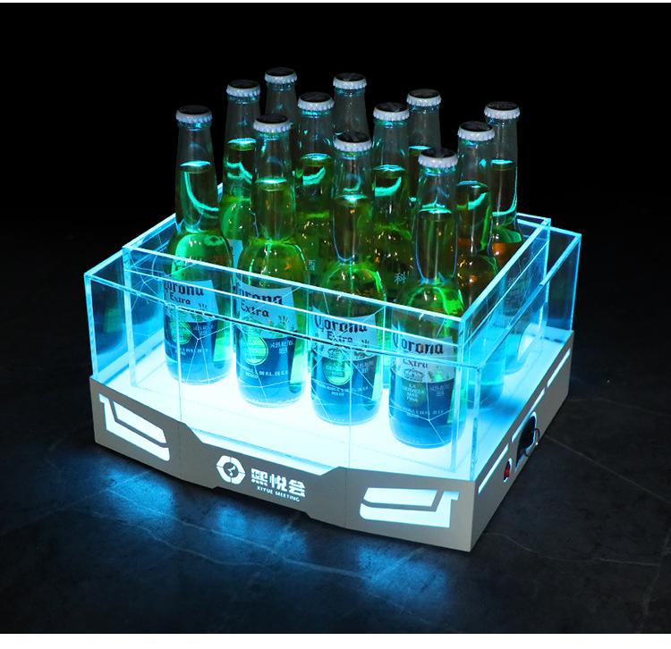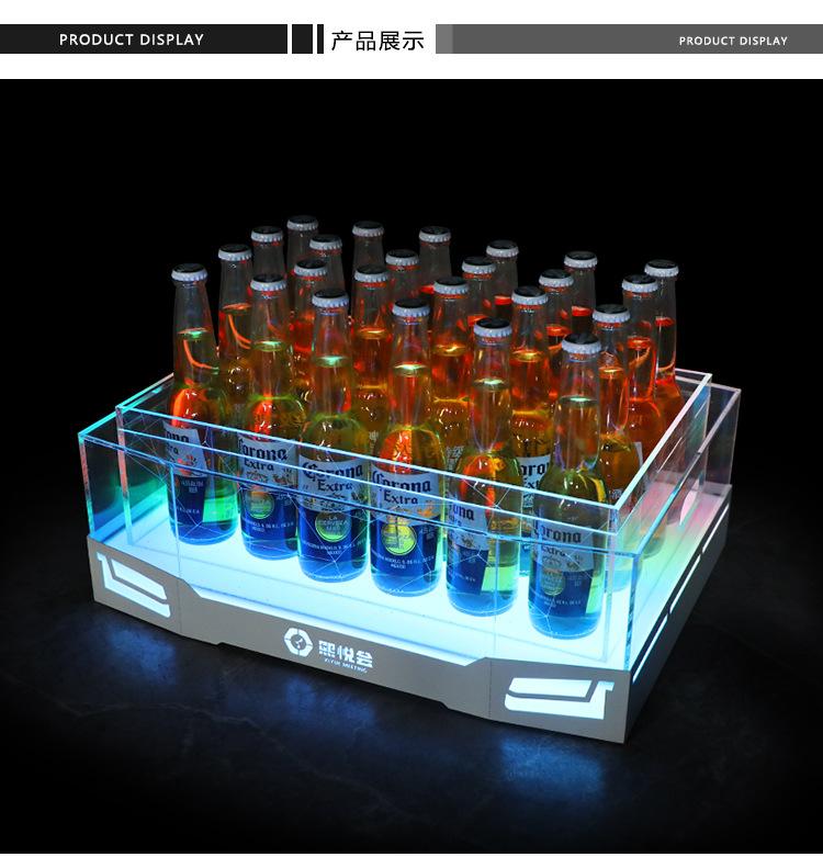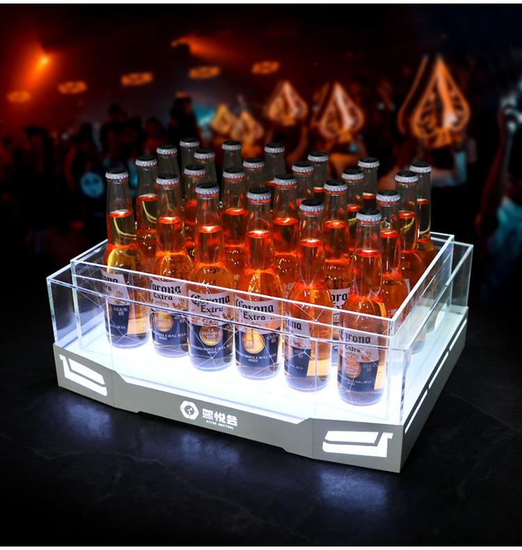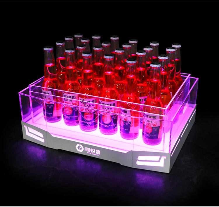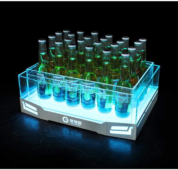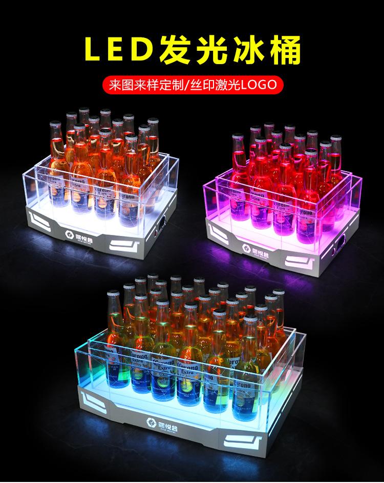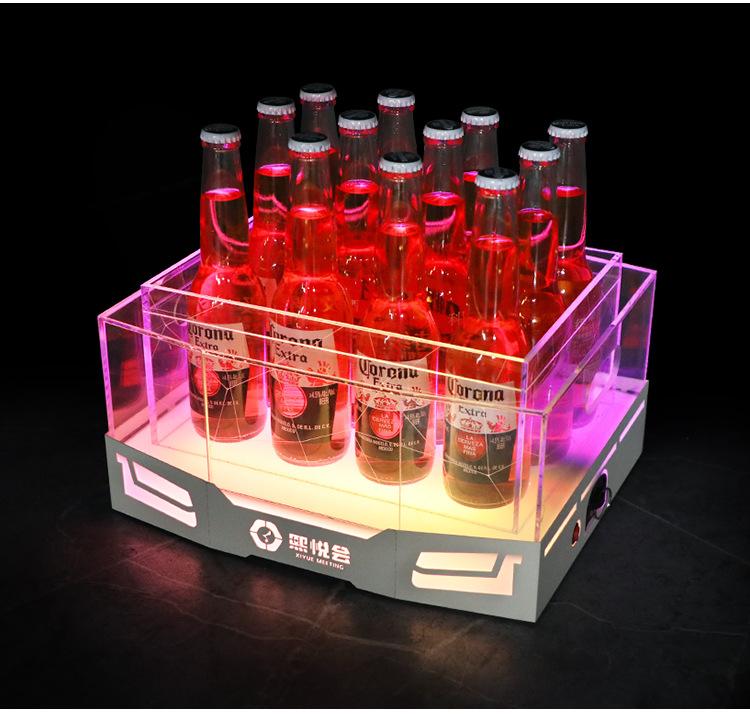 Cubo de cerveza acrílico con base blanca de metal LED para bar, cubo de hielo luminoso, cubo de hielo, cubo de champán KTV, caja de cerveza