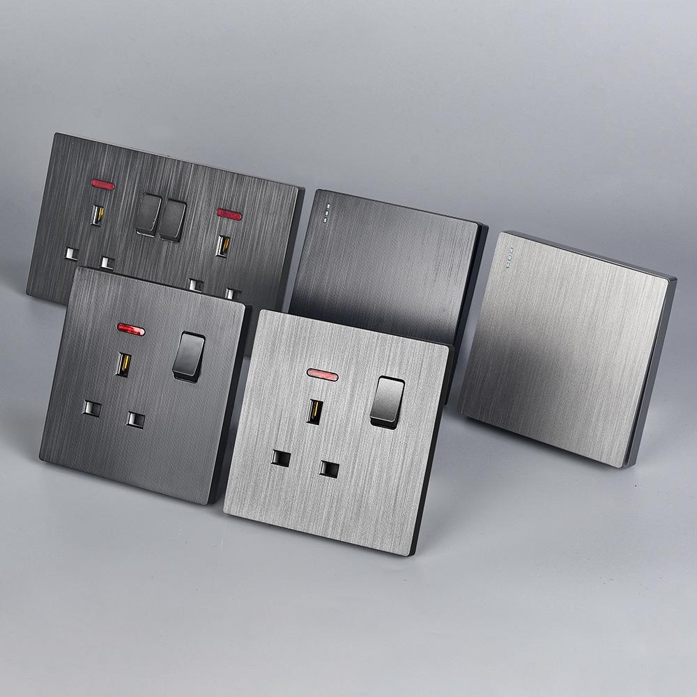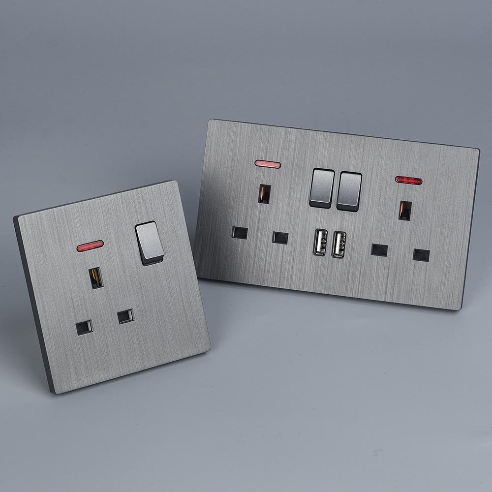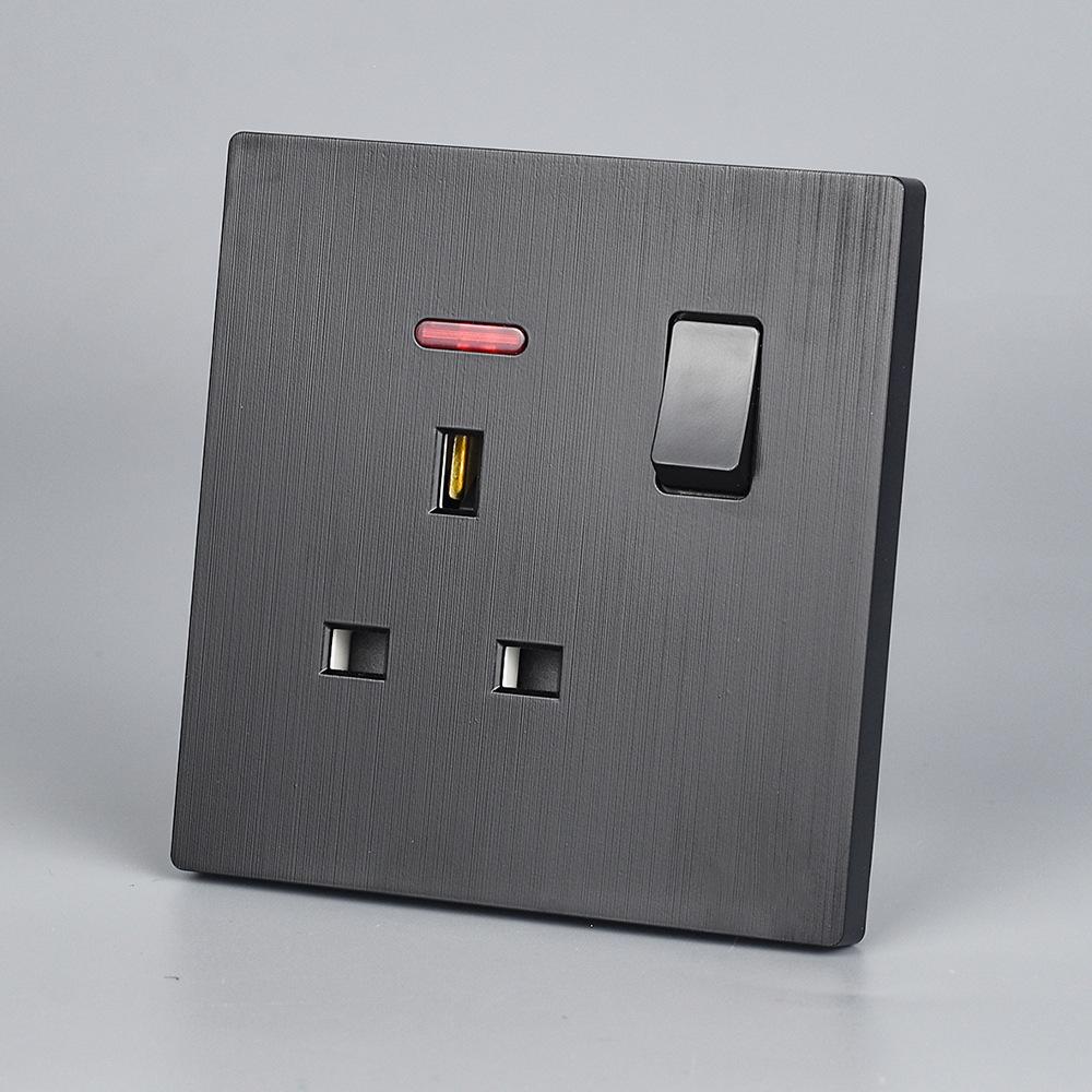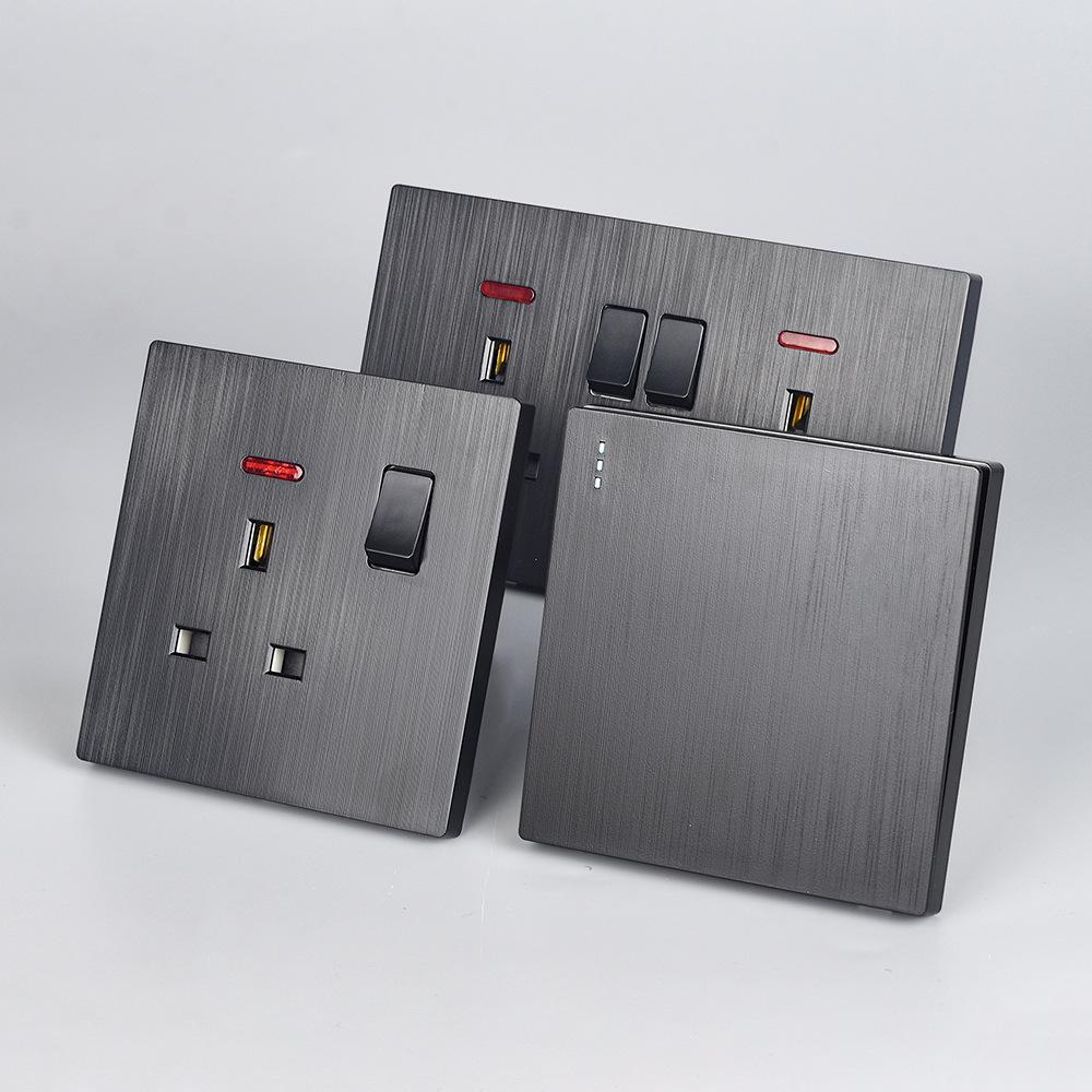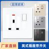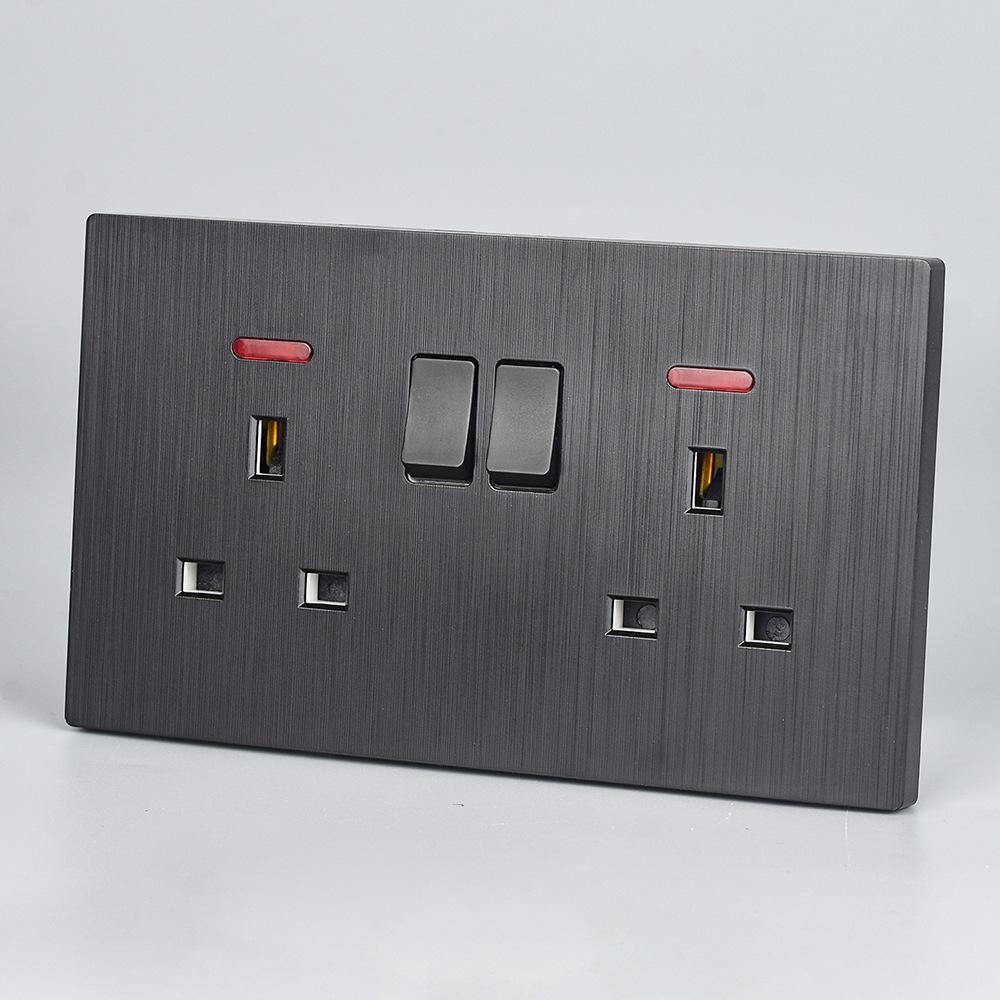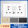 Panel de Enchufe de Interruptor Estándar Británico Transfronterizo de Hong Kong Oculto Negro de Pared con Carga USB Typec