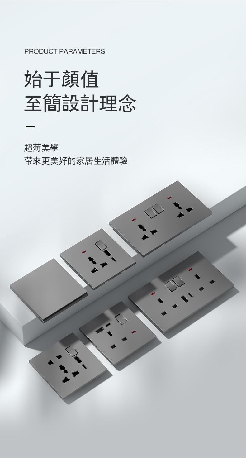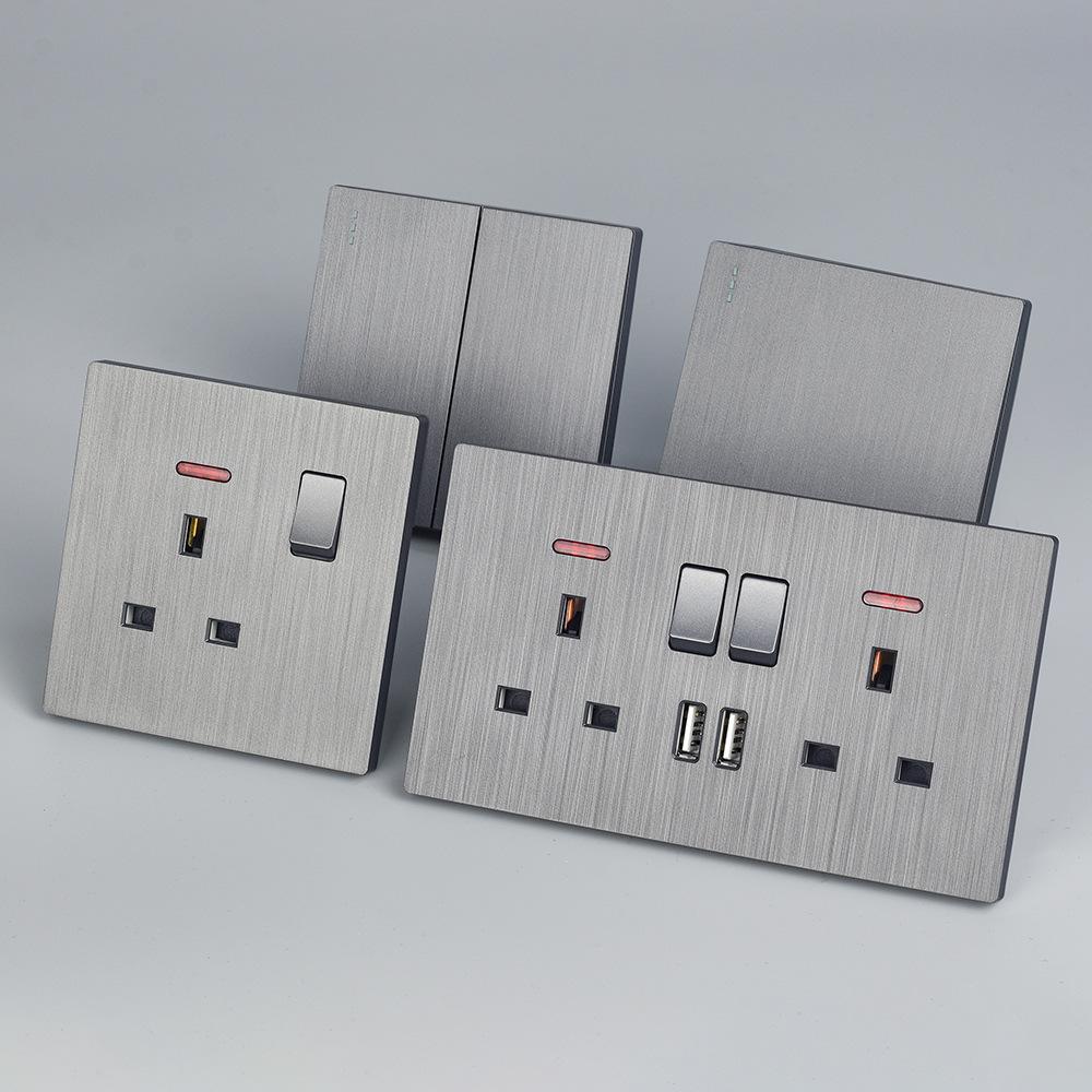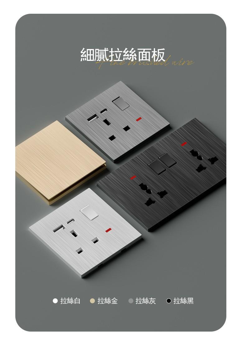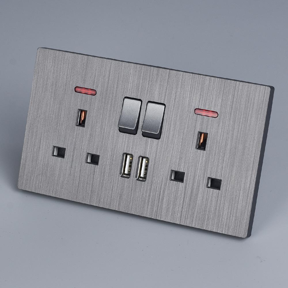 Panel de Enchufe de Interruptor Estándar Británico Transfronterizo de Hong Kong Oculto Negro de Pared con Carga USB Typec