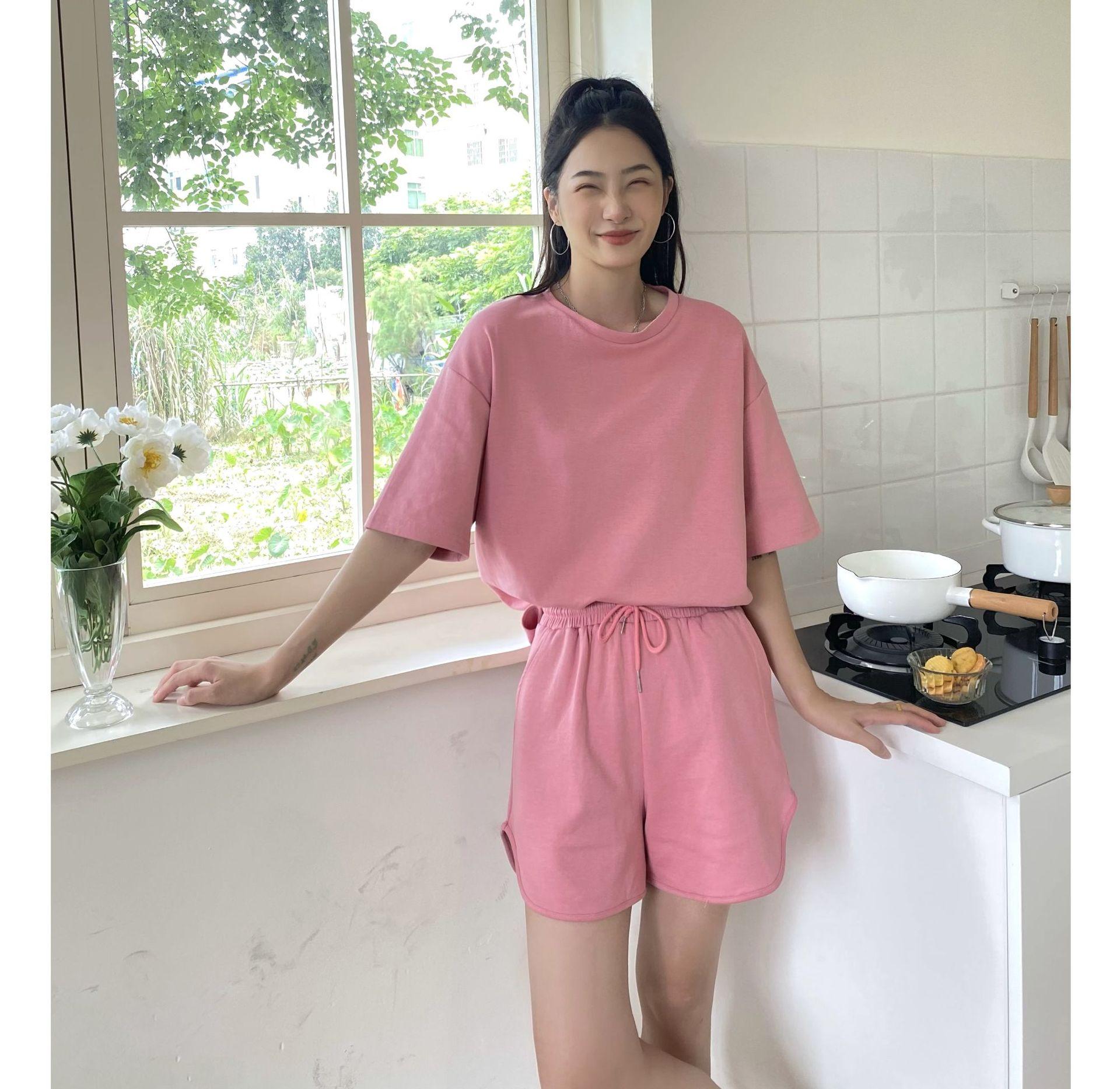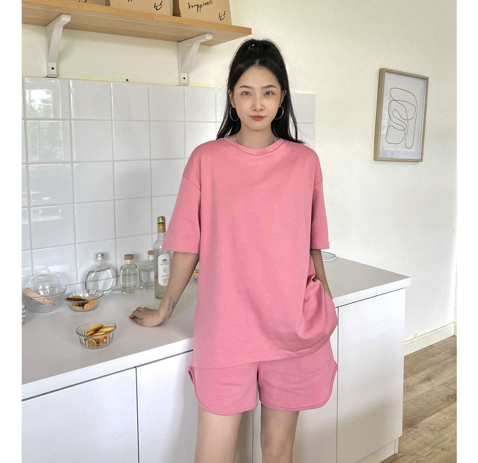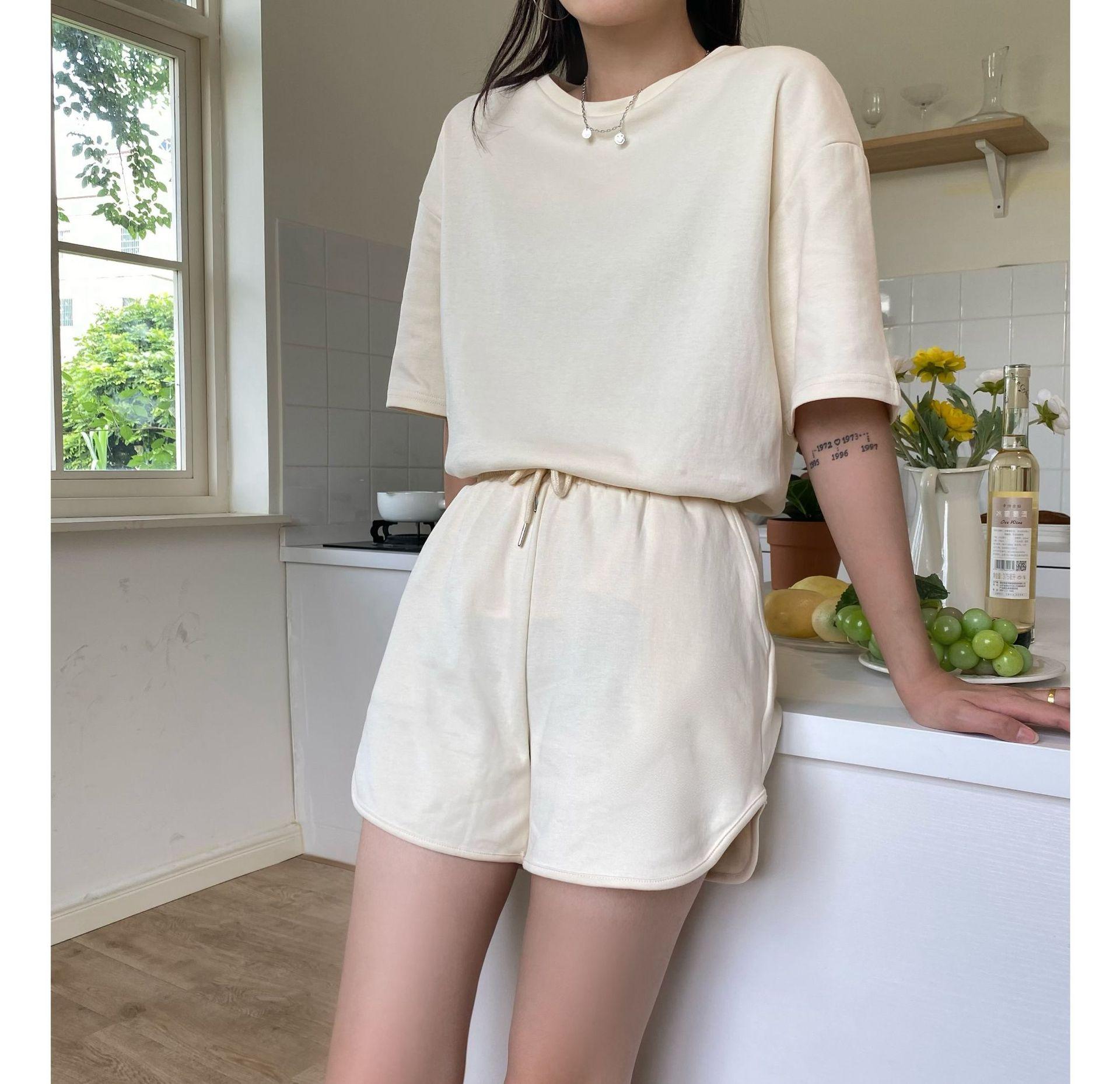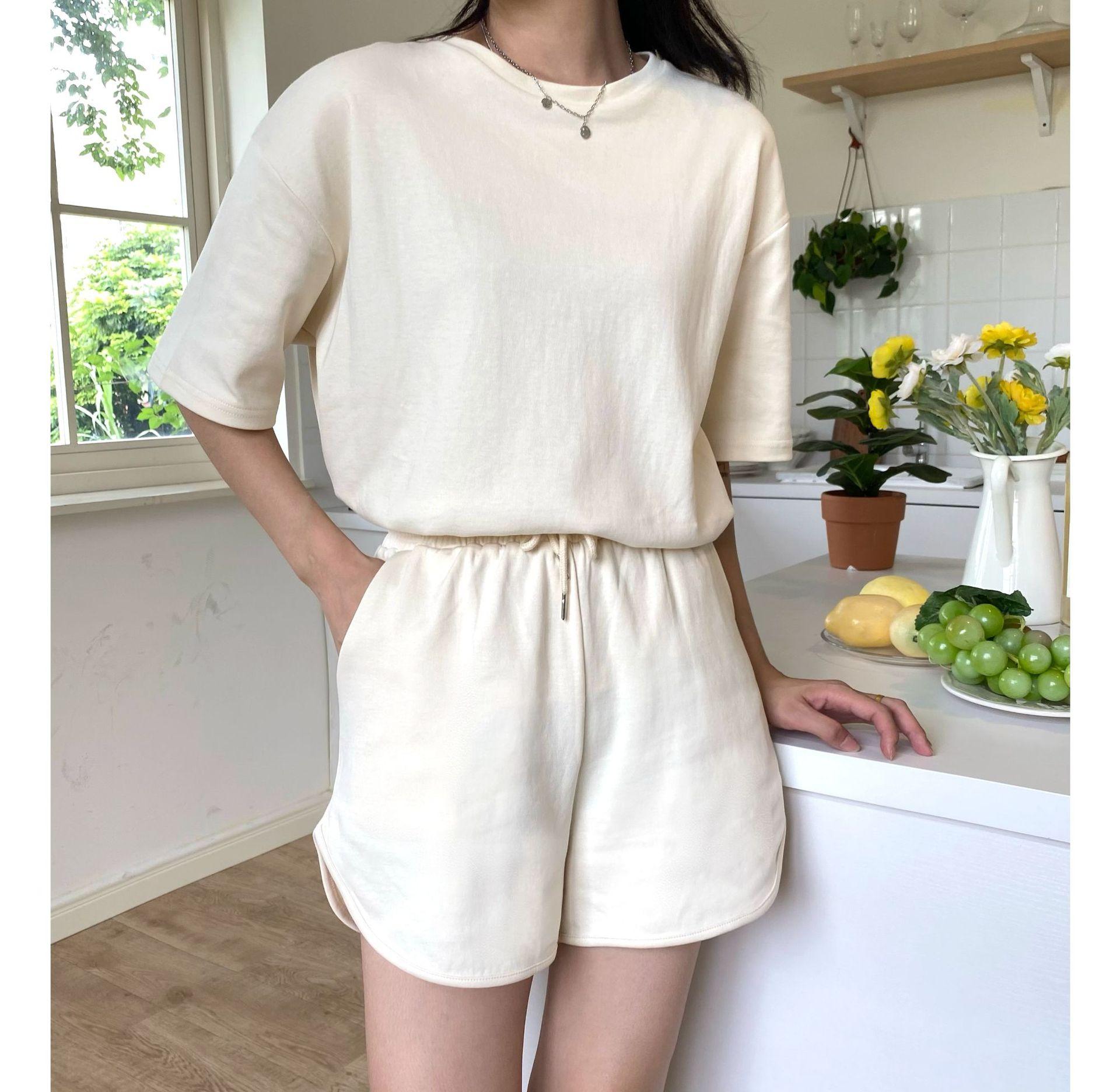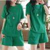 Traje deportivo informal para mujer, verano 2024, nuevo estilo, estilo holgado, manga corta, pantalones cortos, cuello redondo, traje de dos piezas.
