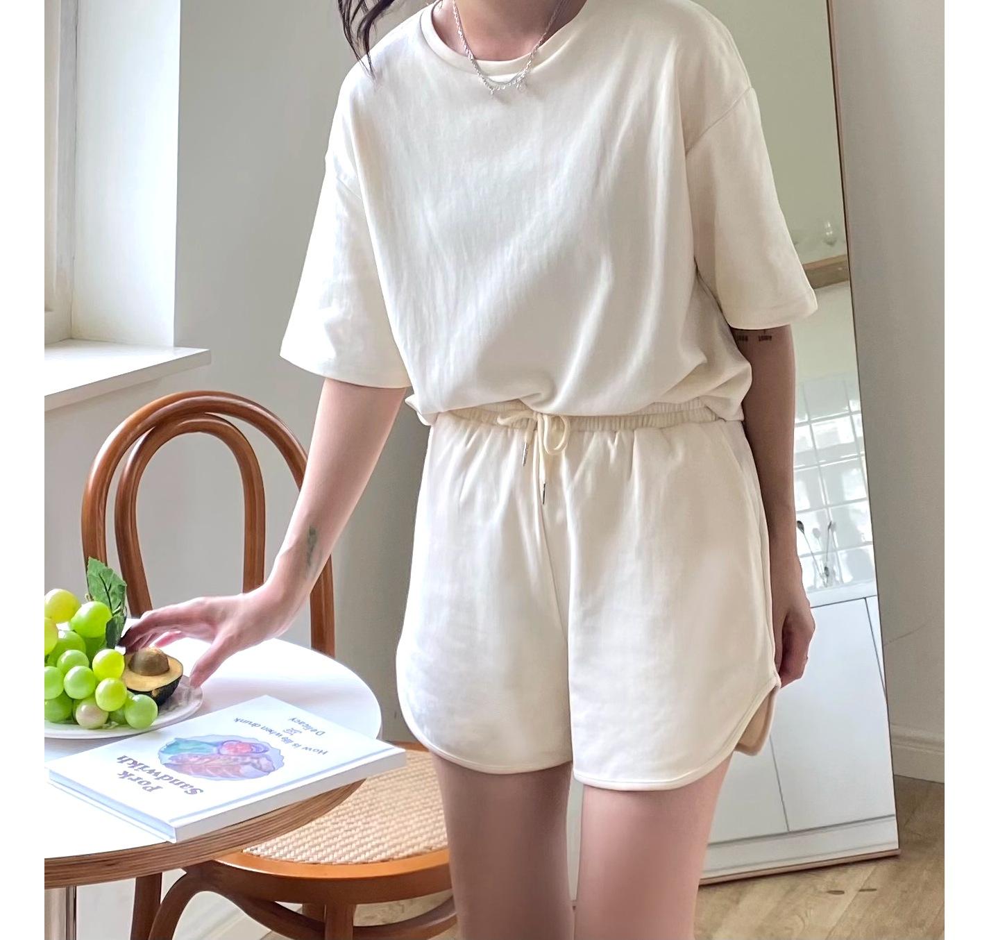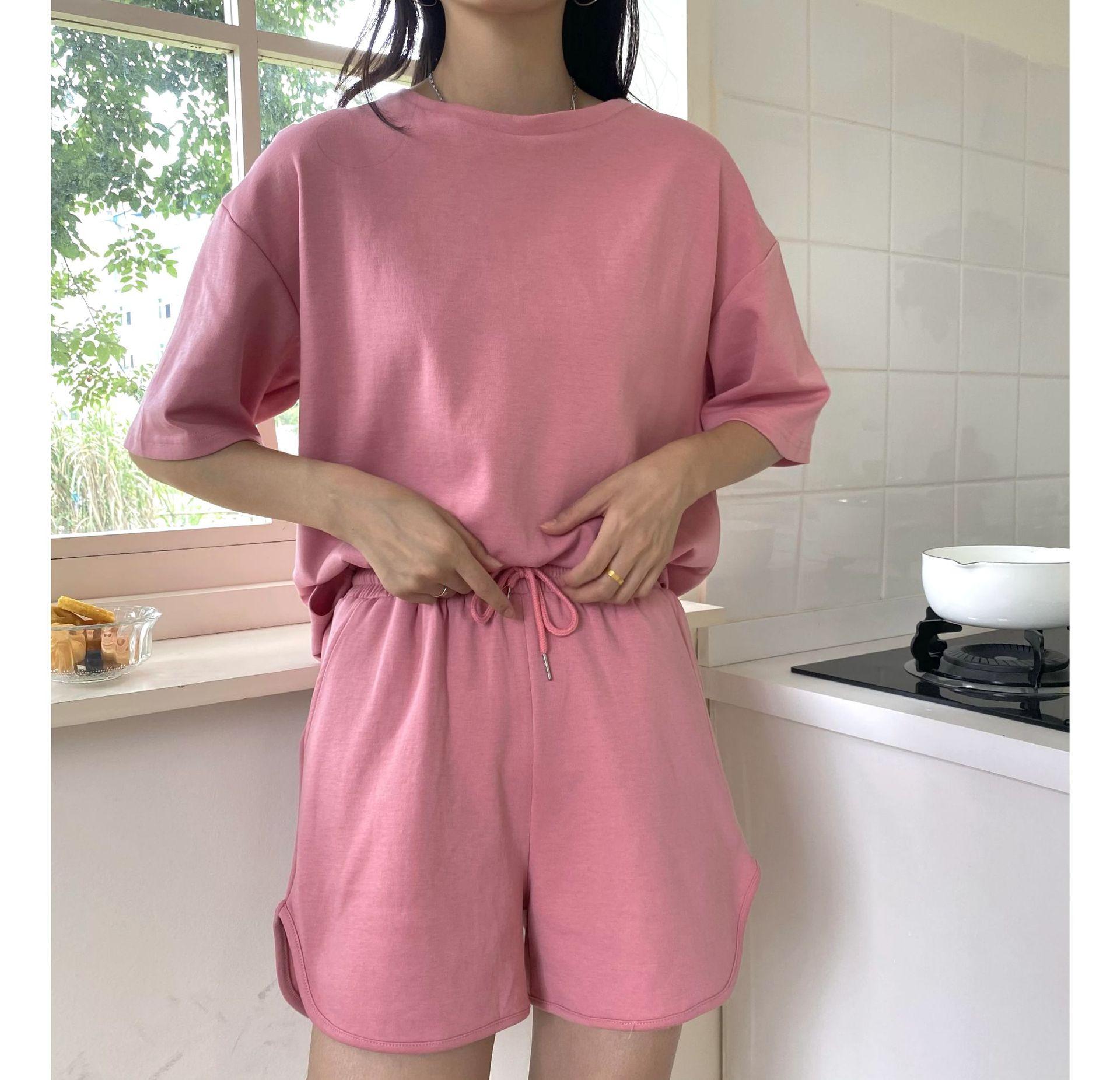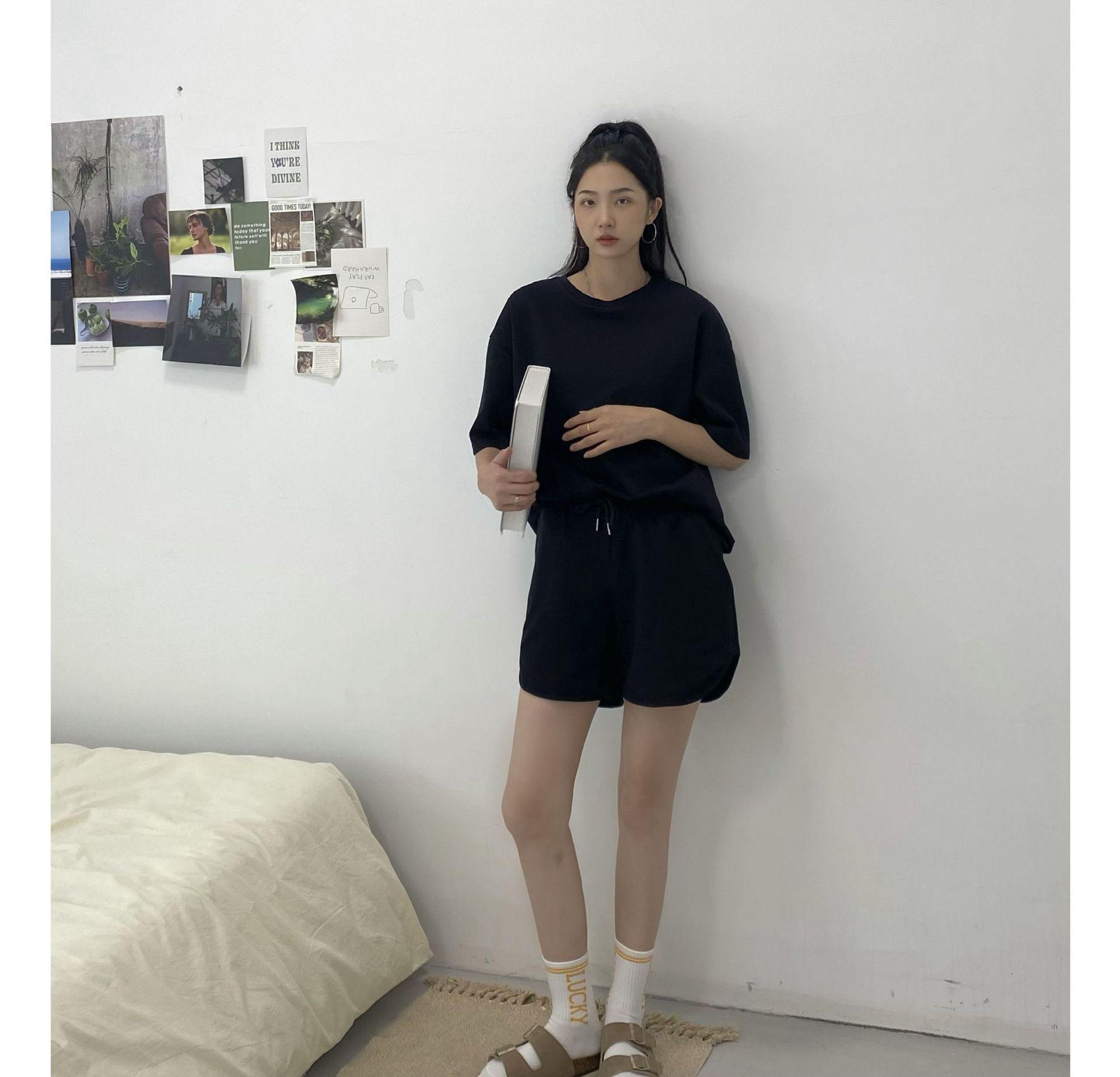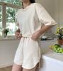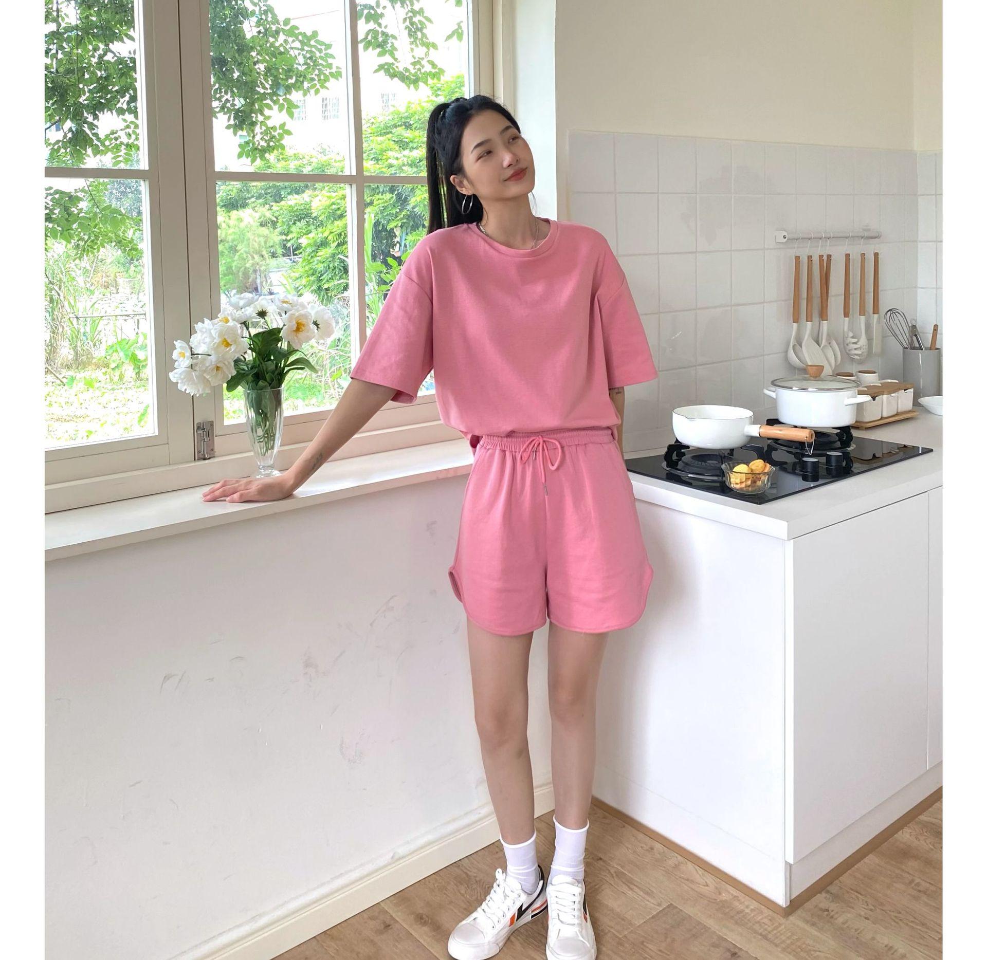 Traje deportivo informal para mujer, verano 2024, nuevo estilo, estilo holgado, manga corta, pantalones cortos, cuello redondo, traje de dos piezas.