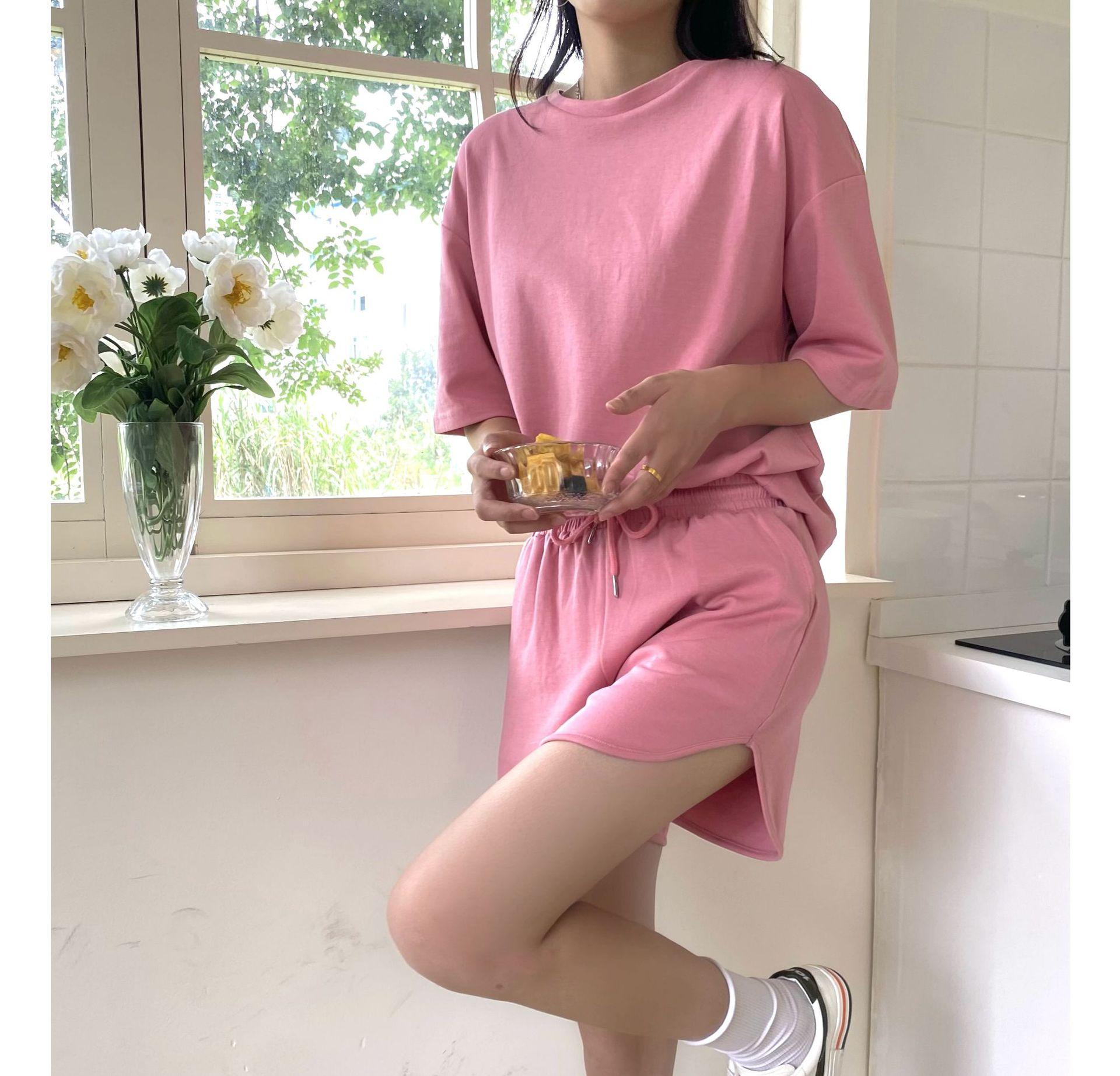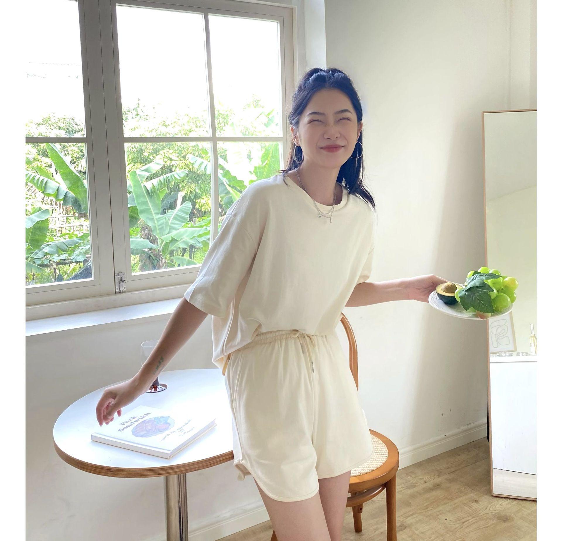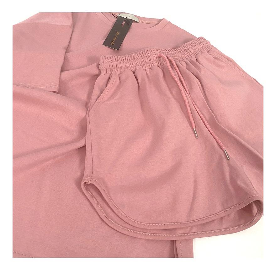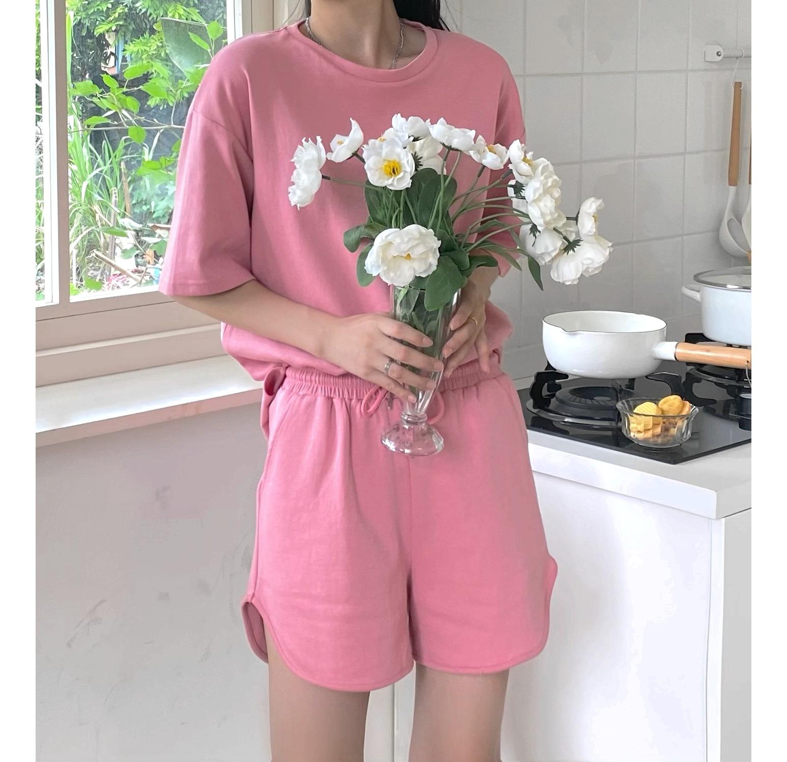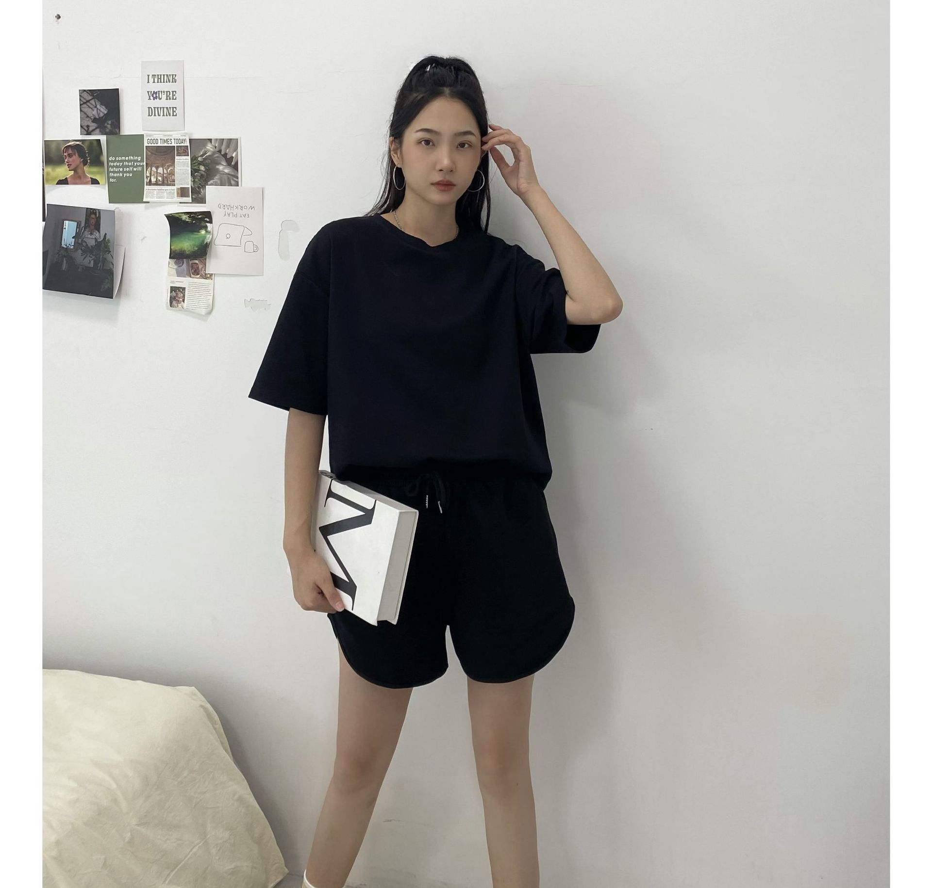Traje deportivo informal para mujer, verano 2024, nuevo estilo, estilo holgado, manga corta, pantalones cortos, cuello redondo, traje de dos piezas.