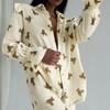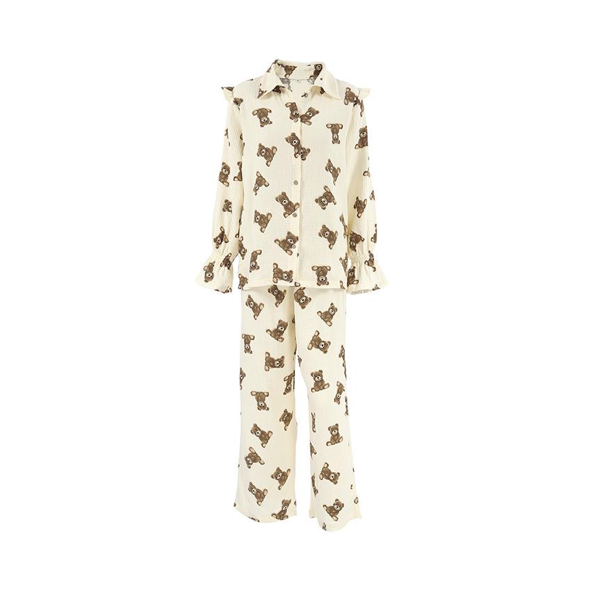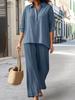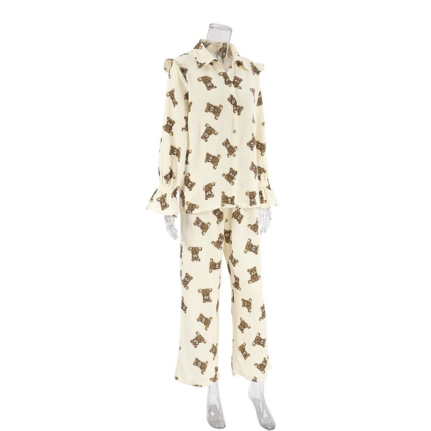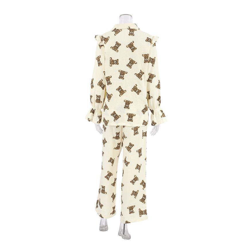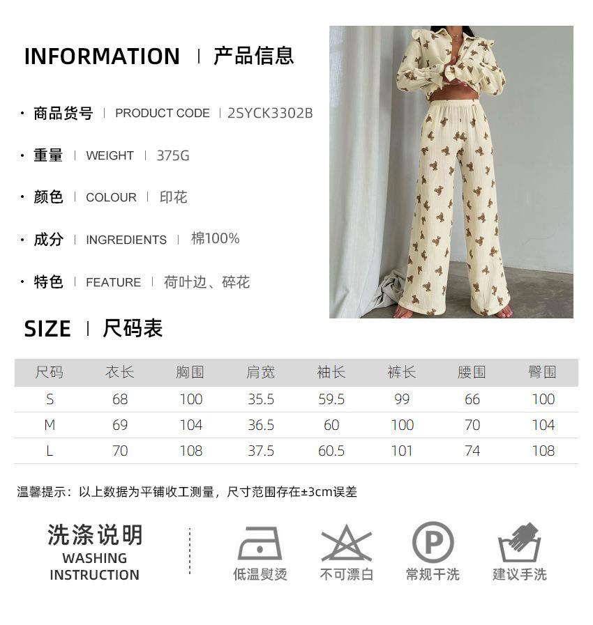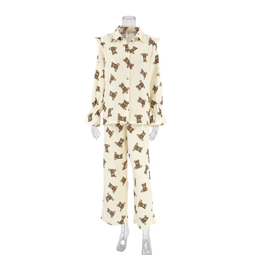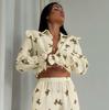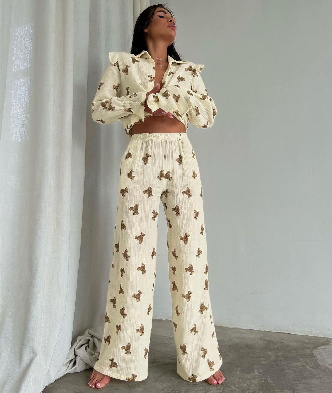 Conjunto de dos piezas de pantalones de manga larga de algodón y lino transfronterizos europeos y americanos, otoño e invierno de 2023, nuevo traje informal con estampado femenino para mujer