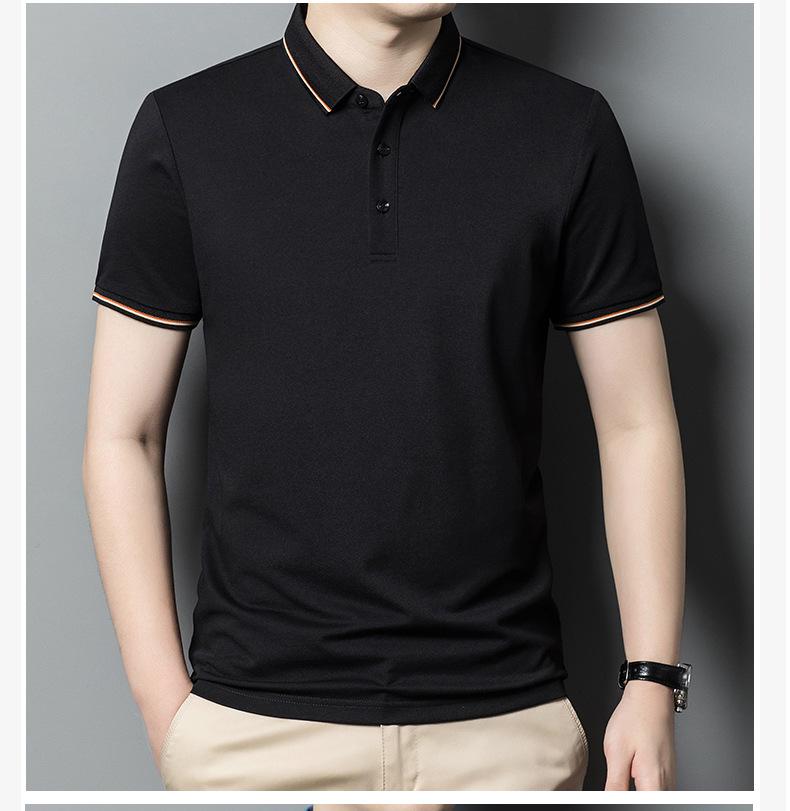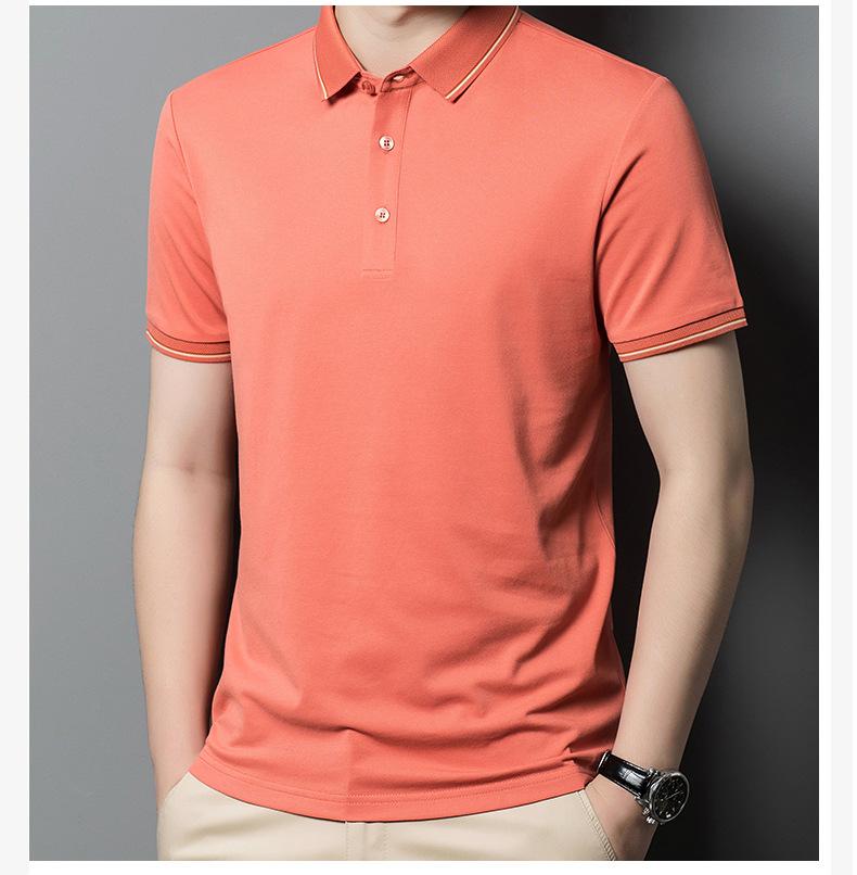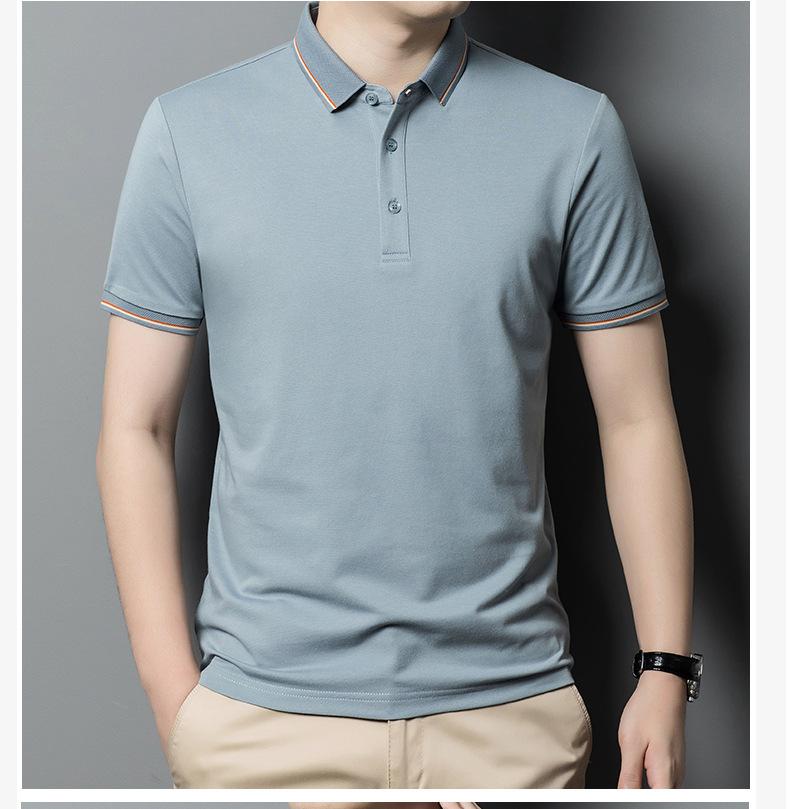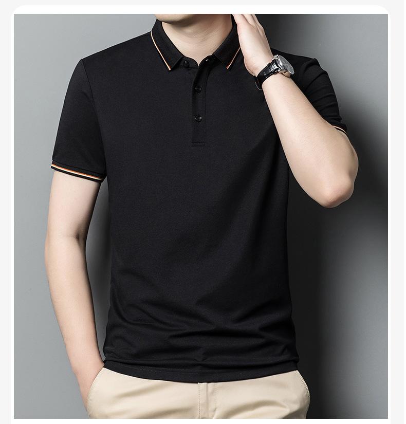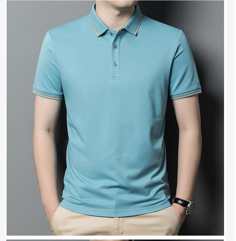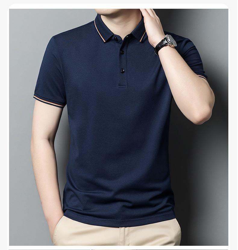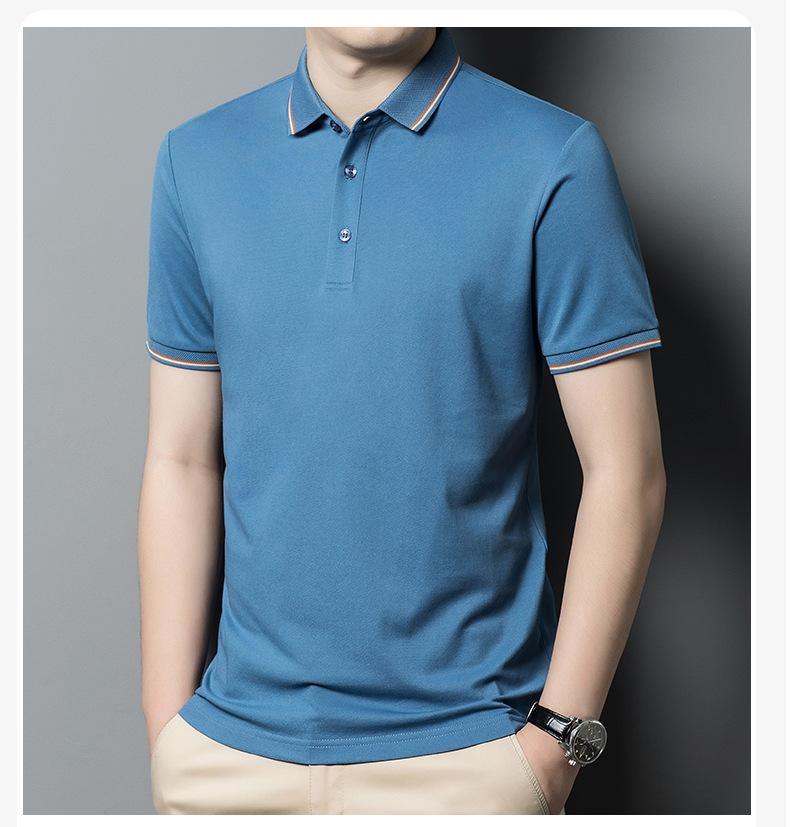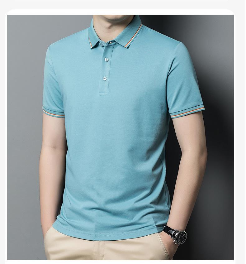 Polo de manga corta para hombre, color liso, verano 2024, fino algodón mercerizado, con solapa, transpirable, de seda helada.