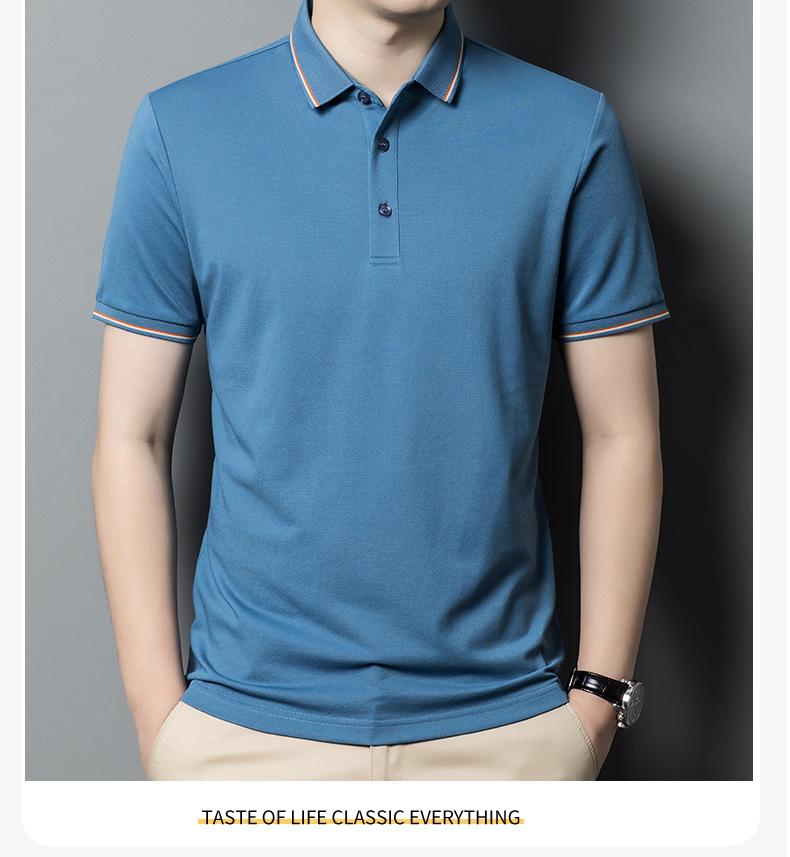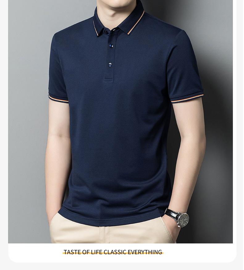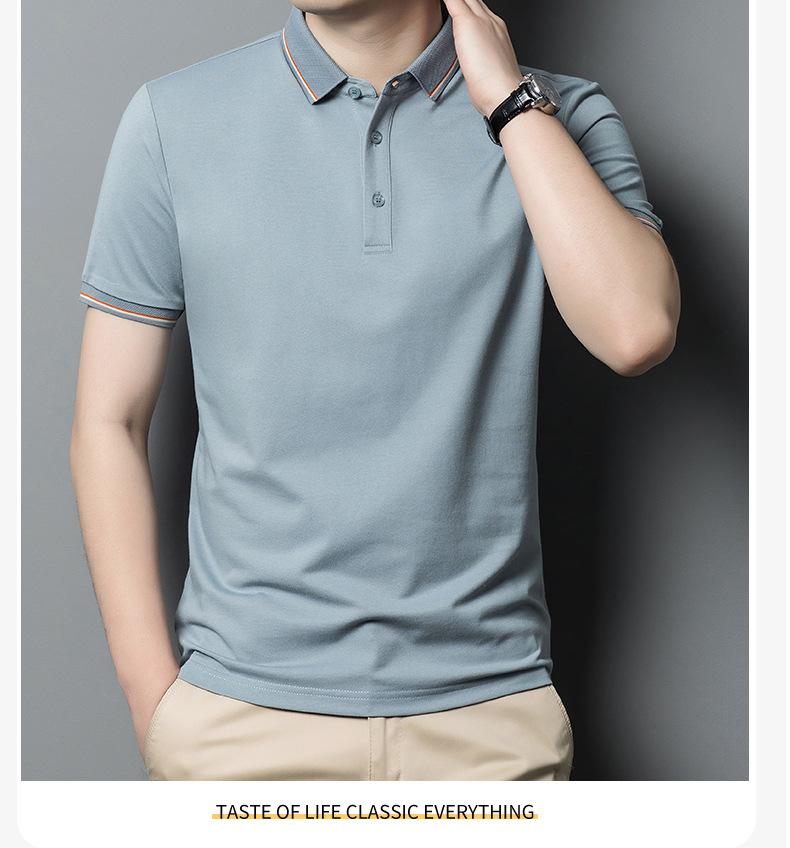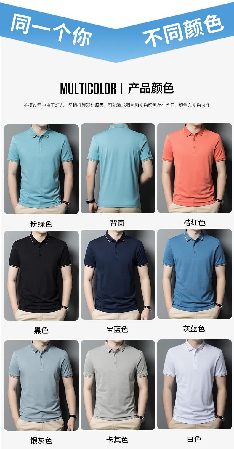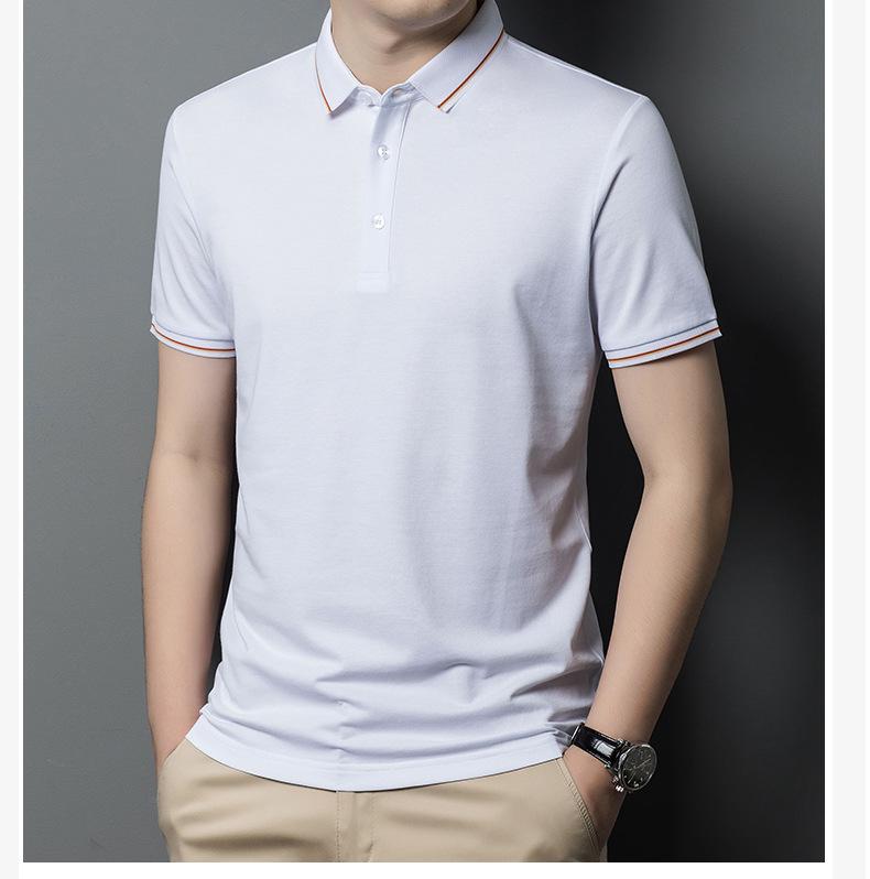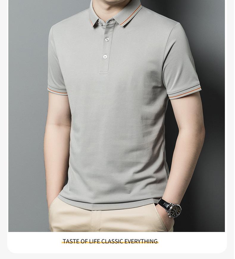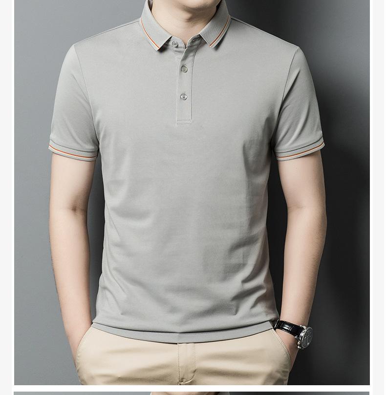 Polo de manga corta para hombre, color liso, verano 2024, fino algodón mercerizado, con solapa, transpirable, de seda helada.