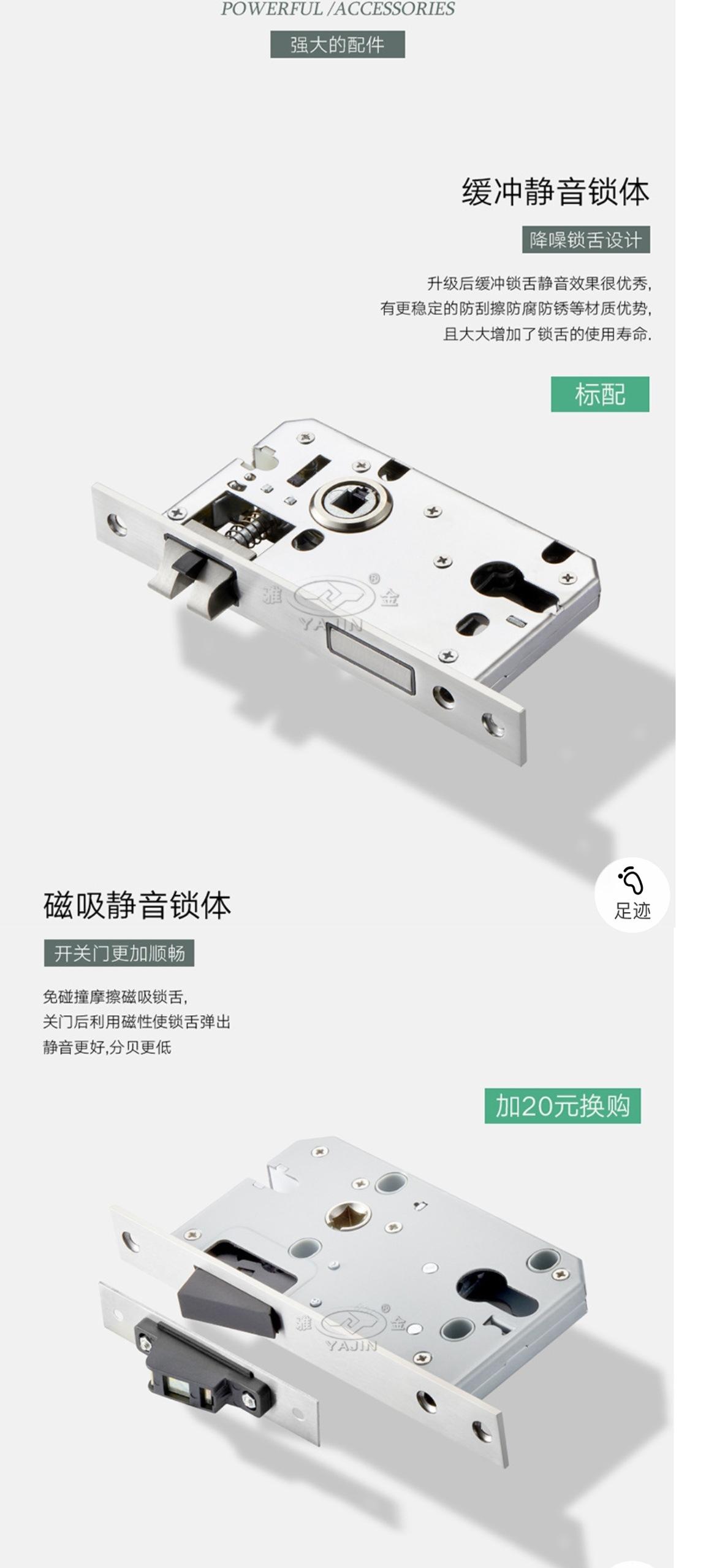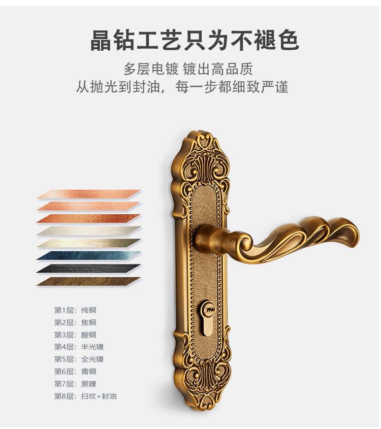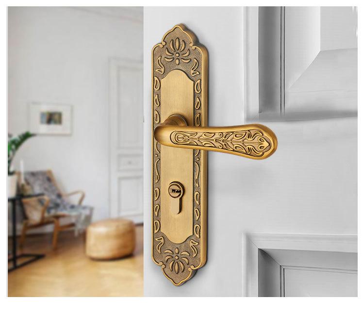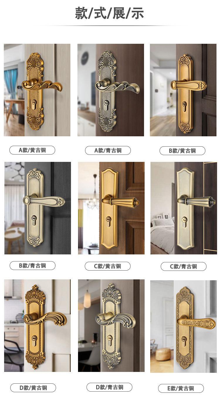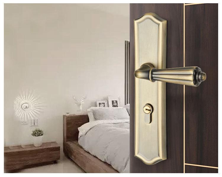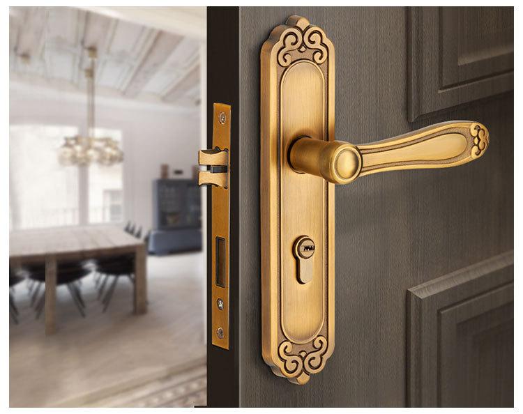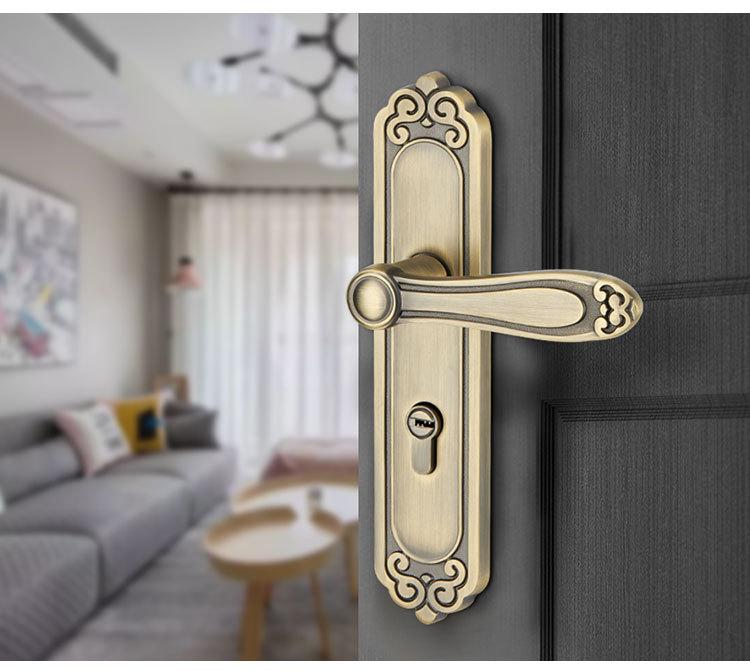 Cerradura de manija sólida silenciosa de bajo decibelio de estilo europeo, cerradura de puerta de dormitorio interior, cerradura de puerta de madera mecánica de aleación de zinc universal