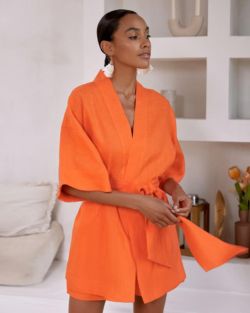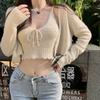 Conjunto de top con cuello en V y cintura alta con cordones, pantalones anchos, holgado, informal, elegante, estilo europeo y americano, novedad de verano de 2023.
