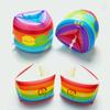Blue arm ring two, Orange arm ring two, Two pink arm rings, Pump