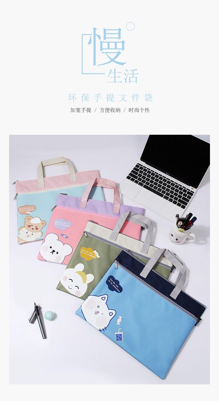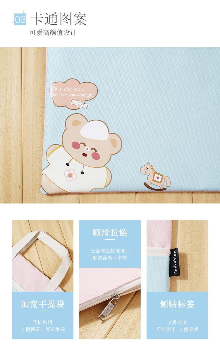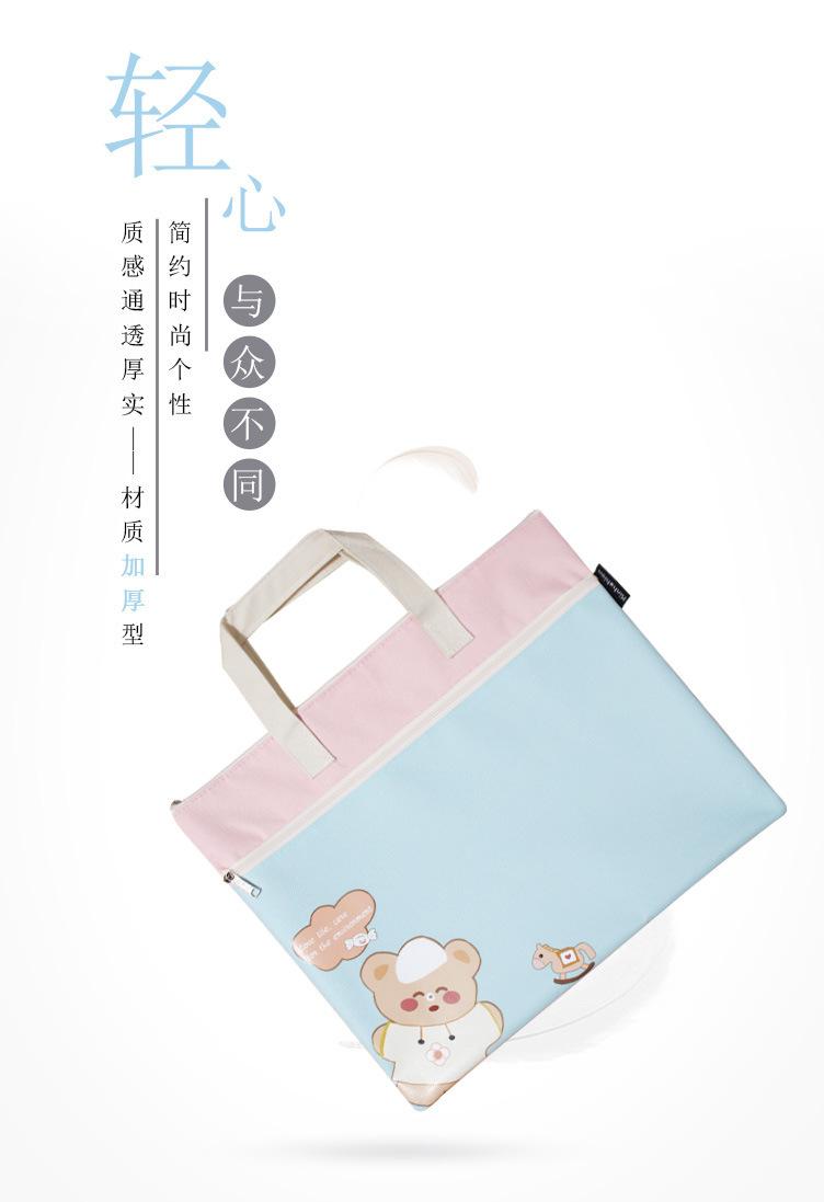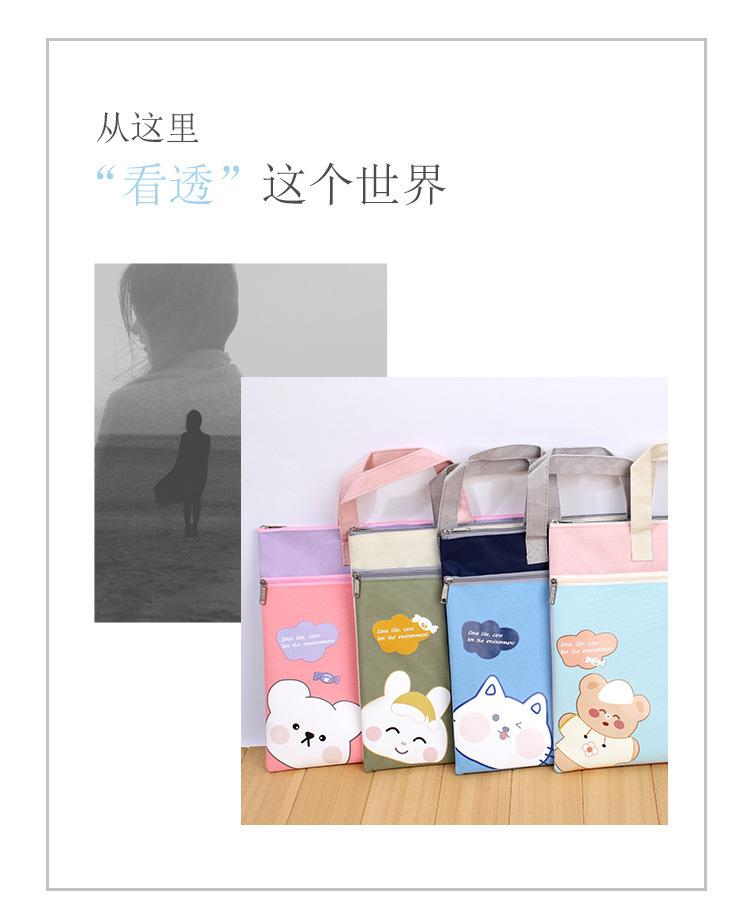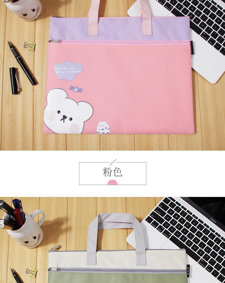 Bonita bolsa de archivo A4 portátil con dibujos animados para estudiantes, de gran capacidad, de doble capa, para tutoriales de arte, para tutoriales, para libros