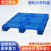 Almacén de palés de plástico con carretilla elevadora de rejilla Sichuan y estantería superior de tubos de acero para palés de plástico. Almacén estéreo.