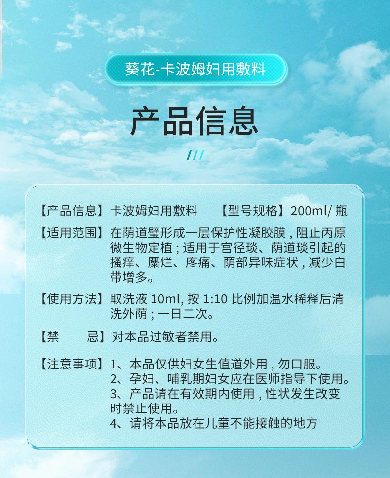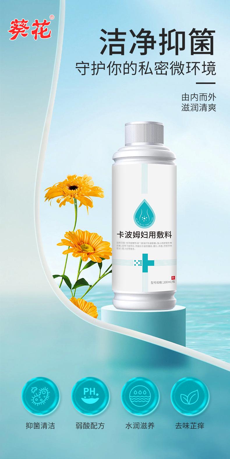 Apósito femenino de carbómero de girasol de 200 ml, loción bacteriostática ginecológica para la limpieza de partes íntimas femeninas, picazón y olor. Venta al por mayor.